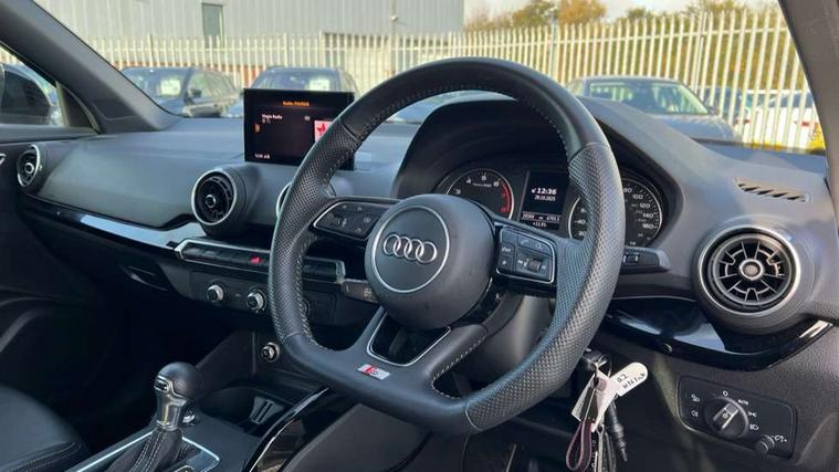 Audi drive select, Audi smartphone interface, Automatic start/stop system with recuperation, Bluetooth interface includes bluetooth audio streaming, Cruise control, MMI - Multi Media Interface control system, MMI SD card integrated nav with 3D map display, dynamic route guidance with TMC, MMI search, natural voice recognition and myAudi special destinations, Power operated tailgate, Progressive steering, Service interval indicator, Dynamic suspension, 2 x SDXC card reader, Audi music interface - apple iPod, apple iPhone, USB storage media, compatible MP3 players, 2 x USB charging points and 1 x Aux-in, CD Drive, DAB digital radio and AM/FM radio, MMI radio plus with 7" colour MMI screen and MMI controller, Black window trims, Bumper in full body colour paint finish, Chrome exhaust tailpipe, Electrically adjustable and heated door mirrors with integrated LED side indicators, Front and rear electric windows, Front underbody guard and rear diffuser trim in selenite silver, Front windscreen with grey tinted sunband, Headlight washers, Interior mirror, LED headlights with LED rear lights + dynamic rear indicators, LED indicator lights, Manual folding door mirrors, Privacy glass - dark tinted rear and rear side windows from B-pillar backwards, Rain and light sensors, Rear wiper, S Line body styling - front and rear bumpers, side skirts, radiator grille, rear diffuser insert and front air intakes, 3 spoke flat bottomed high multi-function leather sport steering wheel with gearshift paddles, 60/40 split folding rear seat bench, Black cloth headlining, Floor mats with contrast stitching, Front centre armrest, Front headrests, Front sport seats with S embossed logo, Height/reach adjust steering wheel, Illuminated door sill trims with S logo, ISOFIX child seat mounting for front passenger with airbag deactivation and outer rear seat including top tether attachment point for outer rear seats, Manual seat adjustment including seat height adjustment for front seats, Stainless steel pedals, Storage compartments - Glovebox, cupholder compartment in centre console, storage compartment in rear centre console, front and rear door pockets, Three rear headrests, Black styling pack - Q2, LED interior lighting pack - Q2, Non smoking pack - Q2, 3x3 point rear seatbelts, 6 airbags - Front, curtain and front side airbags, Electromechanical parking brake, Electronic stabilisation control including ABS, ASR and EDL, Extended and proactive pedestrian protection, Hill hold assist, Multi collision brake assist, Pre-sense front with pedestrian recognition, Seatbelt monitoring, Tyre pressure warning light, Warning triangle and first aid kit, Anti theft alarm, Anti theft wheel bolts, Central locking system with remote control key, Electronically operated child locks, Aluminium interior element, Black inlays - decorative trims in black for centre console and front and rear door pull handles,