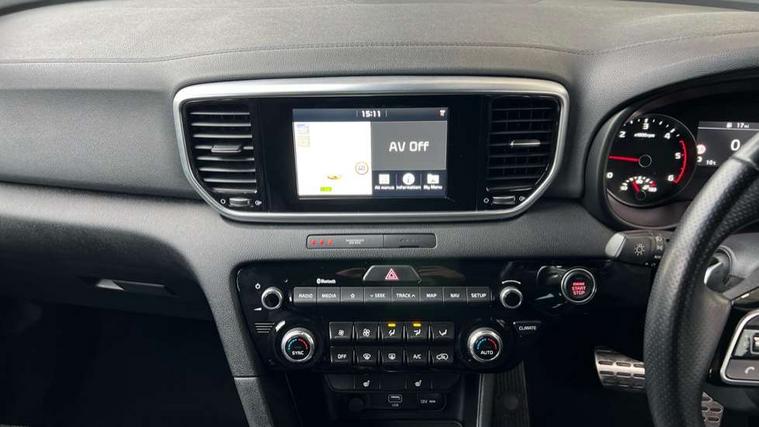 4.2" supervision colour cluster display, 7" touchscreen satellite navigation with European mapping and traffic messaging channel, Android auto with voice control, Apple car play with voice control, Bluetooth connectivity with voice control, Cruise control + speed limiter, Drive mode selector, Driver attention warning, Emergency stop signalling system, Front parking sensor, Kia connected services featuring TomTom live, Lane keep assist, Rear parking sensor, Reversing camera, Speed limit information, Speed sensitive power steering, Trip computer, Windscreen washer level indicator, Intelligent Stop and Go, 6 speaker audio system, Bluetooth audio streaming, DAB Radio with MP3, Rear USB port, Steering wheel mounted audio controls, USB/iPod/auxiliary input connections, All round electric windows with drivers auto up/down function, Auto dimming rear view mirror, Automatic headlights, Automatic lighting control, Black wheel arch body mouldings and side sills with dark chrome insert, Body colour door handles with chrome inserts, Body colour door mirrors, Chrome window surround, Dark chrome front bumper insert, Dark chrome grille surround, Dual exhaust pipes, Electrically adjustable/heated/folding door mirrors with LED indicators, Front wiper de-icer, High beam assist, High gloss black blade mesh radiator grille, LED Bi-Function headlights, LED daytime running lights, LED ice cube front fog lights, LED rear lights, Privacy glass (rear side windows and rear screen), Rain sensing front wipers, Rear spoiler, Rear wiper, Roof rails, Shark fin antenna, Silver painted front and rear skid plates, Speed sensitive front wipers, Tinted glass, Trailer stability assist, Welcome and follow-me home light functionality, Wide view drivers door mirror, Windscreen wiper de-icer, 12V power in front and rear centre console, 3 x passenger assist grips, 60/40 split folding rear seat, Air filter, All-round height adjustable headrests, Aluminium door scuff plates, Aluminium pedals, Black headlining, Centre cabin light, Centre console storage box, Chrome boot sill guard, D-Shaped sports leather steering wheel and perforated inserts with GT-Line logo, Door armrest in leather, Driver and front passenger side sunvisors with illuminated vanity mirrors, Driver's seat manual height adjust, Drivers seat power lumbar support, Dual zone automatic air conditioning, Front and rear door storage, Front cabin LED map light with sunglasses case, Front door courtesy reflectors, Front seat and rear pockets, Front/rear centre armrests, Gear shift indicator, Glovebox illumination, Heated front and outer rear seats, Interior door lock/unlock function, ISOFIX Child seat top tethers and anchor fixings, Leather trimmed gearshift, Leather upholstery, Luggage area light, Luggage area load cover, Luggage net with hooks, Paddle shift controls, Rear centre armrest with cupholder, Rear coat hooks, Satin chrome interior door handles, Tilt/telescopic adjustable steering wheel, Ventilation ducts to rear compartment, Active front headrests, All round 3-point seatbelts, Anti-lock braking system with electronic brakeforce distribution, Dual front side airbags, Electronic parking brake, Electronic stability control with downhill brake control, ESP + traction control, Front passenger airbag cut-off switch, Front seatbelt pretensioners + load limiters, Height adjustable front seatbelts, Hill start assist control (HAC), Impact sensing auto door unlocking, Rear door child safety locks, Twin curtain airbags with roll over sensor, Twin front airbags, Tyre pressure monitoring system, Advanced anti-theft system including immobiliser and alarm, Door deadlocks, Engine Start/Stop Button with Smart Entry System, Locking wheel nuts, Speed sensitive auto door locking, Visible vehicle identification number, High gloss black centre fascia, 19" alloy Wheels B-type, Tyre mobility kit,
