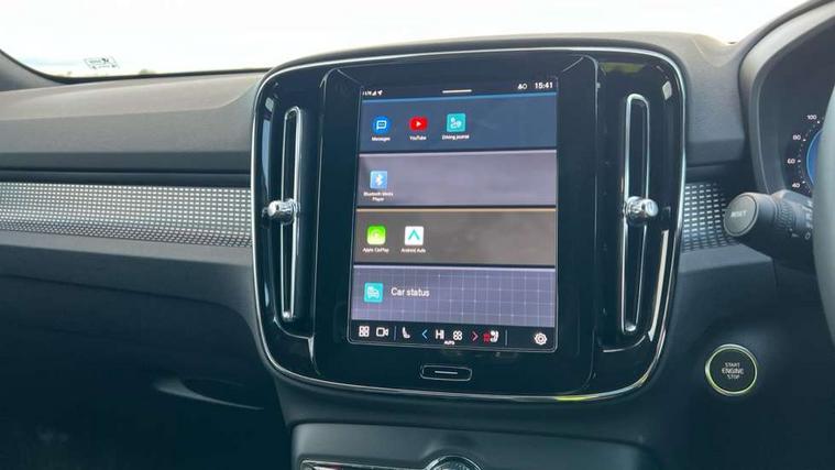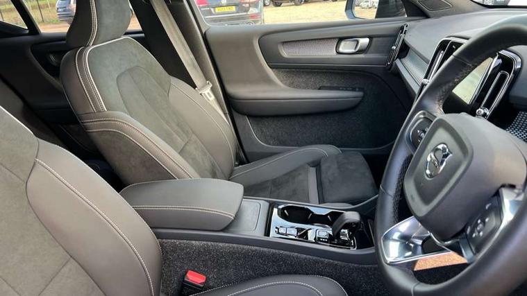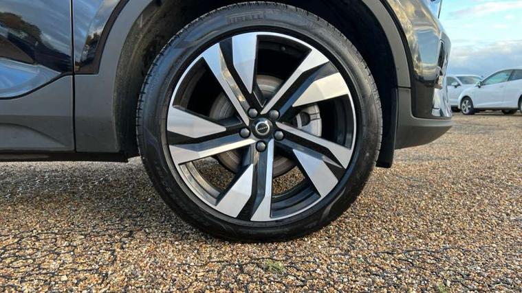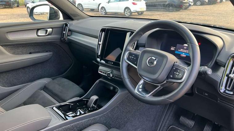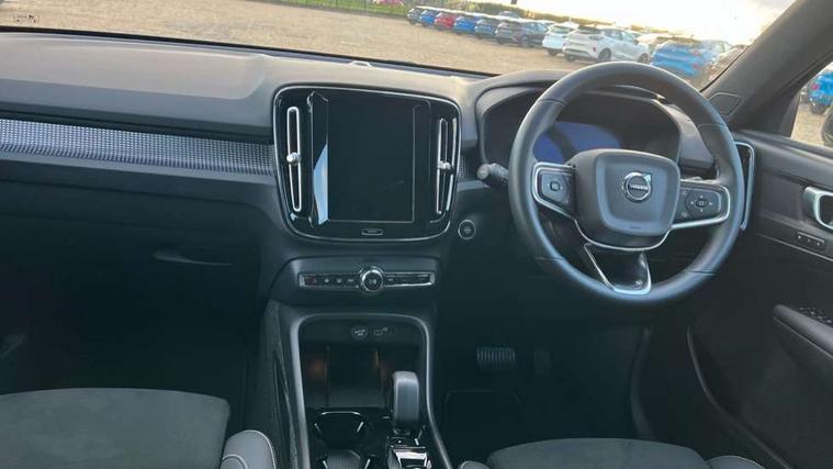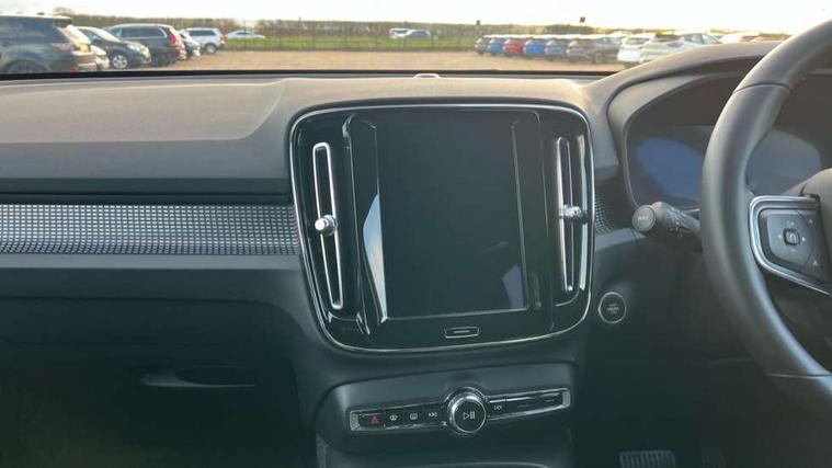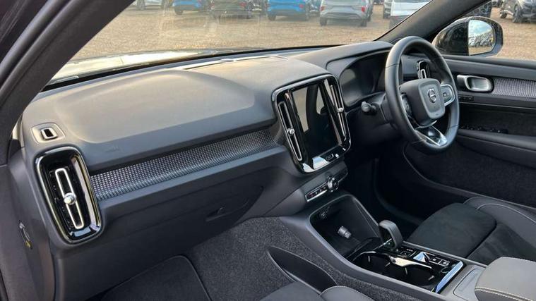 12.3" Progressive Driver Display, 9" centre console portrait touch screen, Adjustable steering wheel force, Android auto (Wired), Apple carplay (wired), Bluetooth handsfree system, Driver alert control, Driver assistance (pilot assist and adaptive cruise control), Driver awareness - Blind spot information system with steer assist, cross traffic alert with autobrake and rear collision warning and mitigation, E-call, Front park assist, Google automotive services - Enabled entertainment apps, navigation with google maps, voice recognition with google assistant, Hands free power tailgate, Intelligent speed assistance, Lane keeping aid, Oncoming Lane Mitigation, Rear park assist, Speed sensitive steering, Volvo cars services with app - Driving journal, emergency and breakdown call, engine remote start, remote door locking/unlocking and vehicle dashboard, Wireless/Inductive Mobile Phone Charging, Automatic transmission with start/stop and manual change functions, Dynamic chassis, DAB Digital radio, Steering wheel mounted remote controls, Adaptive brake lights with high level LED brake lights, Auto dimming feature for exterior door mirrors, Auto dimming interior mirror, Automatic headlamp levelling, Automatic LED Headlights + Active high beam incorporating daytime running lights, Front aluminium tread plates, Front and rear electric windows, High gloss black front and rear skid plate, High gloss black front bumper deco, High gloss black mesh front grille with high gloss black surround, High gloss black window trim, Home safe and approach lighting, Integrated roof rails in high gloss black, LED front fog lights, Puddle lights, Rain sensor with automatic windscreen wiper activation, Rear side wing doors, Rear wiper, Roof antenna, Roof spoiler, Visible VIN plate, 12V socket in front tunnel console and luggage compartment, 2-Zone electronic climate control with CleanZone air quality system and pollen filter, 3 seat bench in 2nd row, 3 Spoke tailored steering wheel with chrome trim, 60/40 versatile split folding rear seat, Centre console cupholders and storage, Charcoal headlining, Connect textile/microtech upholstery, Flexible load floor and grocery bag holder, Floor mats, Front cabin courtesy lights, Front door pocket, front cupholder, ambient front door, rear reading, rear courtesy, instrument panel and tailgate lighting, Front footwell illumination, Front headrests, Front reading lights, Front seat cushion extensions, Front side step illumination (under door), Glovebox bag hook, Heated front seats, Height adjustable passenger seat, Height/reach adjustable steering column, High gloss centre tunnel deco, Illuminated glovebox, Illuminated luggage compartment, Illuminated vanity mirrors + ticket holder, Integrated waste bin, Isofix attachments on outer rear seats, Load cover, Load protection net, Multi directional lumbar support for driver and passenger seat, Power driver seat with memory + exterior mirrors memory, Rear armrest with cupholders, Rear headrests, Single front passenger seat, Underfloor cargo storage, Climate pack without heated front seats - XC40, 3x3 point rear seatbelts, City safety with steering support with Pedestrian + cyclist + front collision warning with full auto brake and rear auto brake, Driver and passenger airbags, Drivers knee airbag, Electronic parking brake with auto hold, First aid kit, Front and outer rear seatbelt reminder and pretensioners, Front seats SIPS airbags, Hill descent control, Hill start assist, Inflatable curtain, Passenger airbag cut-off device, Power child locks on rear doors, Road sign information display, Run off Road Protection, SIPS (Side Impact Protection System), Slippery road and hazard light alert, Stability and Traction Control with Spin control, Engine Drag Control and Corner Traction Control, Tyre pressure monitoring system, Vehicle deceleration control with Anti-lock Brake System, Electronic Brake Distribution and Emergency Brake Assist, Warning triangle, WHIPS whiplash protection system - front, 2 x Key integrated remote control central locking including with deadlocking system and auto open/close windows, Anti-theft alarm including immobiliser/volume sensor + level sensor, Keyless drive includes keyless entry and keyless start, Locking wheel nuts,
