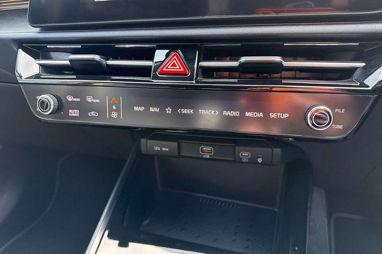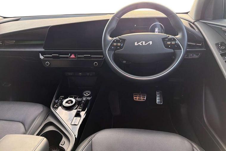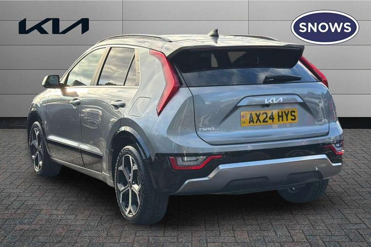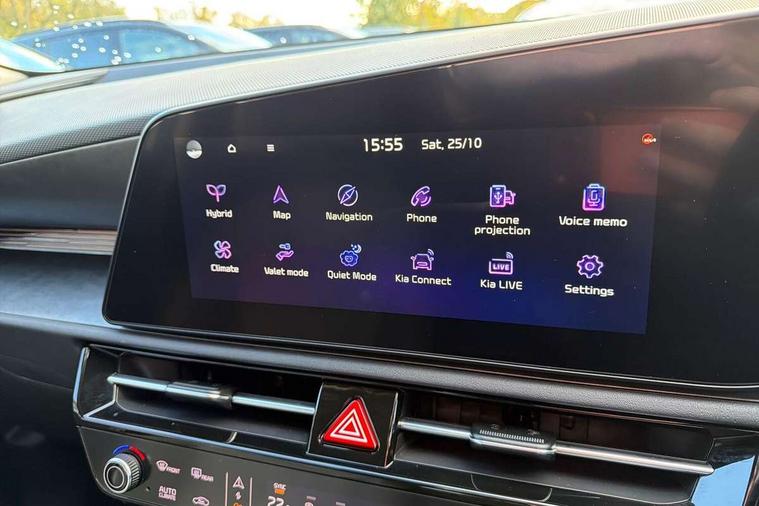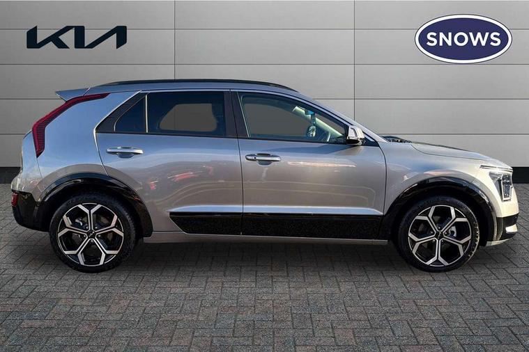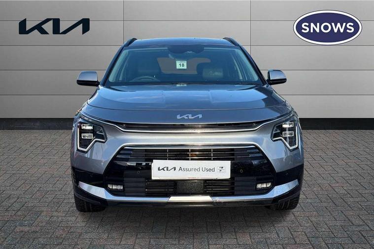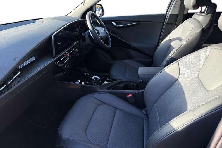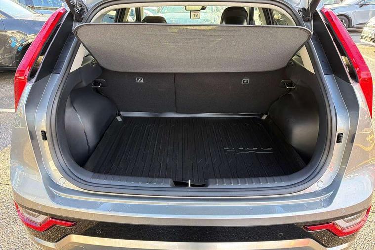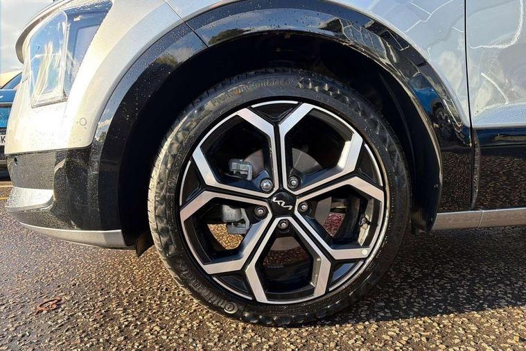 10.25" Supervision colour cluster display, 10.25" touchscreen satellite navigation, Apple car play/Android Auto with voice control, Blind spot collision avoidance assist, Customisable Head Up Display, Drive mode select (Eco, normal, sport, snow), E-call, Emergency stop signalling system, Forward Collision-Avoidance Assist (FCA) 1.5 - City/Pedestrian/Cyclist/Junction turning, Front parking sensors, Highway Driving Assist (HDA), Intelligent speed limit assist, Kia Connect (UVO), Lane Following Assist (LFA), Lane keep assist, Motor driven power steering, Parking collision avoidance assist (PCA), Rear cross traffic collision avoidance assist (RCCA), Rear parking sensors, Remote smart parking assist, Reversing camera system, Safe exit warning (SEW), Smart cruise control with stop and go functionality, Smart power tailgate, Trip computer with distance/fuel consumption/average speed, Wireless Smartphone charger, 220v AC Inverter, 'Shark fin' mobile antenna, 6 speakers, Bluetooth with music streaming, DAB Digital radio, Steering wheel mounted controls, USB port for connection of a media device, Acoustic windshield, All round electric windows with drivers and front passenger auto up/down and safety function, Auto dimming rear view mirror, Automatic defog system, Automatic headlight control system, Black grille with chrome surround, Black window surrounds, Body colour bumpers, Body colour door mirrors, Body colour exterior door handles, Deluxe door scuff plates, Dual LED headlights (low and high projection), Electrically adjustable and heated door mirrors with LED turn indicator, Electrically folding door mirrors, Front and rear chrome skid plates, Front fog lights, Gloss black wheel arches, Heated rear window, LED daytime running lights, LED High mounted brake light, LED rear combination lights, Privacy glass - Rear windows and tailgate, Rain sensing front wipers, Rear fog lights, Rear side wing doors, Rear spoiler, Rear wiper, Roof rails, Solar glass windscreen, Sunroof with tilting and sliding function, Welcome and follow-me home light functionality, Windscreen Washer Level Warning, 12v socket in front, 12V socket in luggage compartment, 3 seat bench in 2nd row, 60:40 split remote folding rear seats, All-round height adjustable headrests, Aluminium pedals, Artificial leather centre console storage box, Artificial leather steering wheel, Artificial leather upholstery, Centre console cupholder, Chrome coating interior door handles, Driver power adjusted memory seat, Driver/passenger sunvisors with illuminated vanity mirrors, Drivers seat power lumbar support, Dual zone automatic air conditioning, Front and rear door storage, Front passenger 1 x USB-C charging port, Front passenger power adjusted seat, Front passenger relaxation seat, Glove box, Heated front seats, Heated outer rear seats, Heated steering wheel, ISOFIX Child seat top tethers and anchor fixings, LED Front cabin, rear & luggage compartment lights, Luggage area load cover, Luggage board, Paddle shifts, Power adjustable lumbar support on front passenger seat, Rear centre armrest with cupholder, Rear passenger 2 x USB-C charging ports, Seatback pocket - driver, Seatback pocket - front passenger, Shift by wire SBW, Single front passenger seat, Tilt/telescopic adjustable steering wheel, Ventilated front seats, Ventiliation ducts to rear compartment, Towing pack - Niro, 3 point seatbelts on all seats, ABS, Automatic unlocking of doors in case of impact, Curtain and side airbags, Dual shell horn, Electric parking brake with auto hold function, Electronic stability control, Front airbags, Front passenger airbag cut-off switch, Height adjustable front seatbelts, Hill start assist control (HAC), Knee airbags, Seatbelt reminder warning, Traction control, Tyre pressure monitoring system, Customisable automatic door locking, Customisable automatic door unlocking, Deadlocks, Engine Start/Stop Button with Smart Entry System, Locking wheel nuts, Manual child locks, Rear occupant alert, Smart key with motion sensor, Thatcham category 2 security alarm and immobiliser, Visible vehicle identification number, Warranty - 7 Years/ 100, 000 miles, Centre fascia chopped carbon, 18" Alloy wheels, Tyre mobility kit,