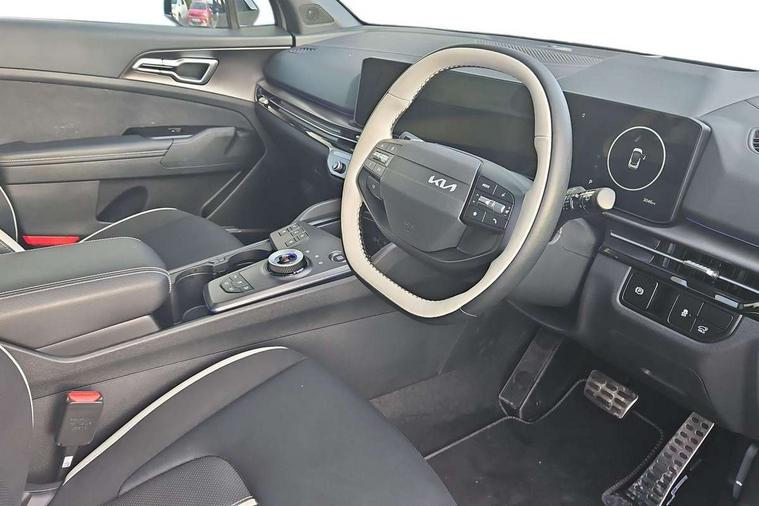 12.3" Driver display screen, 12.3" Touchscreen navigation system, 360 degree around view monitor, Blind spot collision avoidance assist, Blind spot view monitor, Bluetooth connection, Customisable head-up display, Digital key 2.0, Drive mode selector, Driver attention warning, E-call, Emergency stop signalling system, Forward collision avoidance assist 2.0, Front and rear parking sensors, Highway Driving Assist (HDA 2.0), Intelligent speed limit assist, Kia Connect (UVO), Lane Following Assist (LFA), Lane keep assist, Low washer fluid warning, Motor driven power steering, Over the air (OTA) functionality, Parking collision avoidance assist (PCA), Rear cross traffic collision avoidance assist (RCCA), Reversing camera, Safe exit warning (SEW), Smart cruise control with stop and go functionality, Smart power tailgate, Speed limiter, Trip computer, Windscreen washer level indicator, Wireless apple car play/android Auto, Wireless Smartphone charger, DAB Radio with MP3, Front passenger 1x USB-C port, Harman Kardon premium sound system with 8 speakers, Rear passenger 2x USB-C port, Steering wheel mounted audio controls, USB-C port for connection of a media device, Auto dimming rear view mirror, Automatic defog system, Automatic headlight control system, Black and body coloured bumpers, Body colour exterior door handles, Body colour radiator upper garnish and door garnish, Dual LED headlights with adaptive driving beam, Electric front and rear windows with front one touch function, Electrically adjustable/heated/folding door mirrors with LED indicators, Front and rear body colour skid plates, Gloss black door mirrors, Gloss black radiator grille, Gloss black wheel arches, Glossy black roof rails, GT-Line exterior styling, Heated rear window, High beam assist, LED daytime running lights, LED front fog lamps, LED High mounted stop light, LED rear lights, Panoramic sunroof with tilting and sliding function with electric blind, Privacy glass in rear windows and tailgate, Rain sensing wipers, Rear fog lamp, Rear roof spoiler, Rear side wing doors, Rear wiper, Satin finished beltline, Silver window surround, Trailer stability assist, 12V power socket in front and luggage compartment, 3 seat bench in 2nd row, 3 x passenger assist grips, 40/20/40 split folding rear seat, All-round height adjustable headrests, Alloy pedals, Automatic air conditioning, Black headlining, Centre console storage box, Cupholders in rear armrest, Customisable ambient lighting, Door courtesy lamps, Driver and front passenger sunvisors with illuminated vanity mirrors, Drivers seat power lumbar support, Electric adjustable driver seat with memory function, Electric adjustable front passenger seat, Front and rear door storage, Front seat and rear pockets, Gear shift indicator, Glovebox, GT-Line Interior Styling, Heated front and outer rear seats, Heated steering wheel, ISOFIX Child seat top tethers and anchor fixings outer rear seats, Leather steering wheel, Leather/suede upholstery, LED front cabin light, LED interior personal lamp, LED lighting in overhead console, LED rear reading lights, Luggage area LED light, Luggage area load cover, Luggage area parcel shelf, Luggage board, Luggage compartment under floor storage, Luggage net hooks, Manual adjust steering wheel, Metal paint interior door handles, Paddle shift controls, Rear air conditioning, Rear cabin light, Rear coat hooks, Single front passenger seat, Ventilated front seats, Ventilation ducts to rear compartment, Active front headrests, All round 3-point seatbelts, Anti-lock braking system (ABS), Dual front side airbags, Dual horn, Dynamic brake control, Electronic parking brake with auto hold function, Electronic stability control with downhill brake control, Front passenger airbag cut-off switch, Front seatbelt pretensioners + load limiters, Height adjustable front seatbelts, Hill start assist control (HAC), Impact sensing auto door unlocking, Multi collision brake assist, Rear airbags, Rear door child safety locks, Rear seat alert system, Seatbelt reminder warning, Traction control, Twin curtain airbags, Twin front airbags, Tyre pressure monitoring system, Vehicle stability management, Customisable automatic door locking, Customisable automatic door unlocking, Door deadlocks, Engine Start/Stop Button with Smart Entry System, Locking wheel nuts, Smart key with motion sensor, Speed sensitive auto door locking, Thatcham category 2 security alarm and immobiliser, Visible vehicle identification number, 18" GT-Line alloy wheels, Tyre mobility kit,