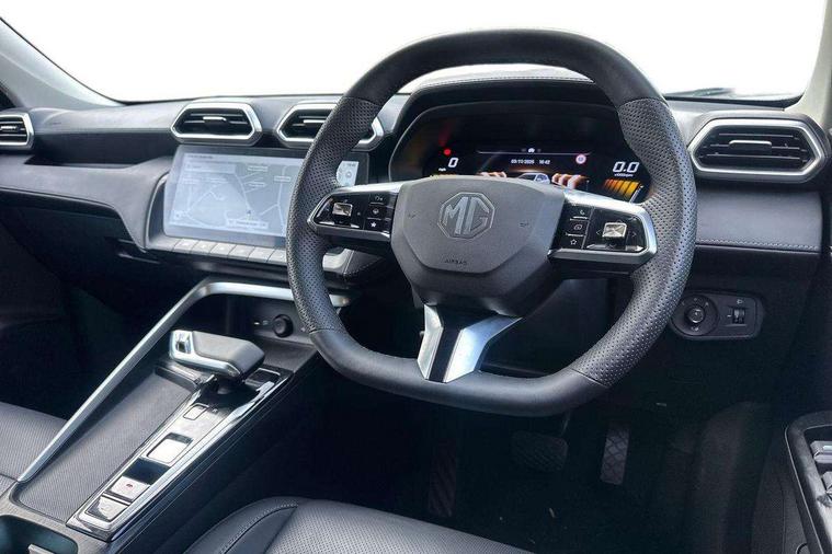 'Lights On' Reminder warning buzzer, 12.3" colour touchscreen, 3 driving modes Normal, Eco, Sport, 3 Energy regeneration modes (1, 2, 3), 360 degree camera with rear sensor, 7" Driver display, Adaptive cruise control, Android Auto, Apple CarPlay, Blind zone detection with lane change assist, Bluetooth connectivity, eCall emergency call system, Forward collision warning, Intelligent speed limit assist, iSmartphone connectivity, Lane keep assist with lane departure warning system, PAS, Rear cross traffic alert, Rear parking sensors, Satellite navigation with speed limit recognition, Traffic jam assist, Trip computer, Unsteady driving warning, 1x USB port at rear (power only) type A, 2x USB ports at Front (1x data and power type A, x1 power only type C) and 1x rearview mirror USB power only - type A, 6 speaker audio system, DAB audio, Radio/MP3 player, USB/aux input socket, Auto headlights, Body colour bumpers, Body colour door handles, Body colour electric adjustable folding heated door mirrors, Chrome side window trim, Follow me home headlights, Front and rear aero wiper, Front and rear electric windows with driver's one-touch up/down, Heated rear window, Intelligent headlamp control, LED centre brake light, LED daytime running lights, LED projector headlights, LED rear lights, Rain sensing wipers, Rear privacy glass, Rear side wing doors, Rear spoiler, Rear wiper, Silver roof rails, 12V power sockets, 2nd row 60/40 split/fold, 3 rear headrests, 3 seat bench in 2nd row, 4 way manually adjustable passenger seat, 6 way electric adjustable drivers seat, Adjustable dual height boot floor, Adjustable rear headrests, Automatic air conditioning, Boot light, Driver's footrest, Front centre armrest with storage, Front cupholders, Front grab handles, Front headrests, Front interior courtesy light with time delay and reading lights, Front reading lights, Front seat back map pockets, Front sun visors with driver and passenger mirrors, Glovebox, Heated front seats, Heated steering wheel, Illuminated switches and controls, Internal chrome door handles, Leather style upholstery, Manual lumbar support on driver seat, Multifunctional steering wheel, Rear grab handle, Single front passenger seat, Tilt adjustable steering column, 3x3 point rear seatbelts, ABS/EBD, Active emergency braking with pedestrian/Bicycle detection, Anti rolling protection, Automatic unlocking of doors in case of impact, Dual front airbags, EBA, Electric parking brake with auto hold function, ESP, Front passenger airbag deactivation switch, Front seatbelts (3-point + pretensioner + load limiter), Front side airbags, Fuel cut off safety device, Hill start assist, Rear door child safety locks, Rear isofix x2, Rear passenger seatbelt alert, Seatbelt reminder for driver and front passenger, Side curtain airbags, Tyre pressure monitoring system, Alarm system and engine immobiliser, Automatic latching door, Keyless entry, Remote Central Locking with Fold-away Key, Speed sensing door locks, 18" Sabre alloy wheels, Tyre repair kit,