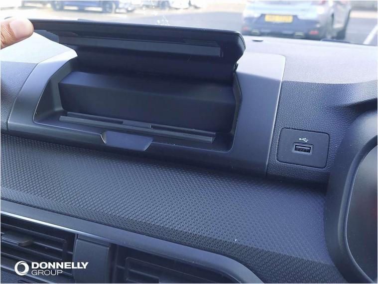 3.5" TFT instrument panel with on-board computer, Cruise control with speed limiter, eCall emergency call system, Eco mode, Electric power assisted steering, Rev counter, Stop/start system, Media Control - DAB Radio with display on instrument panel, Bluetooth, 2 Speakers, Pre-wiring for radio and speakers, USB connection for data transfer and charging, USB socket, 3 speed windscreen wipers, Auto lighting, Black door handles, Black door mirrors, Black radiator grille, Body coloured bumpers, Front electric windows, Heated rear window, High level third brake light, LED automatic daytime running lights, LED Y shape Dacia signature lighting, Manually adjustable door mirrors, Rain sensor, Rear manual windows, Rear side wing doors, Rear wash/wipe, Tinted windows, 1/3 to 2/3 split folding rear seats, 12 volt front socket, 3 height adjustable rear headrests, 3 seat rear bench, Black interior door handles, Fabric upholstery, Fixed smartphone holder on dashboard, Front armrest, Gear shift indicator, Height adjustable driver seat, Height adjustable front headrests, Height/depth adjustable steering wheel, Isofix points for child seats in both outer rear seats, Manual air conditioning, Satin chrome air vents, Single front passenger seat, Steering wheel controls, 3x3 point rear seatbelts, ABS and Emergency brake assist, Automatic emergency braking system, Child locks on rear doors, Door open warning, Driver airbag, ESC (Electronic Stability Control), ESP (Electronic Stability Program) + Hill Start Assist, Front curtain airbags, Front seatbelt pretensioners, Front side airbags, Height adjustable front seatbelts, Passenger airbag, Seatbelt reminder for driver and front passenger, Tyre pressure monitor, Automatic central locking, Immobiliser, Remote central locking, 15" Steel wheels with full wheel cap, Tyre inflation kit,