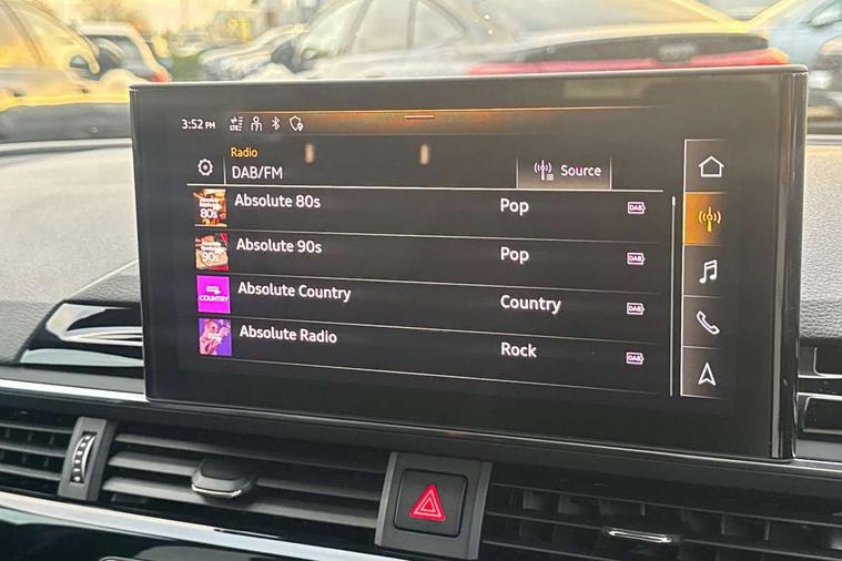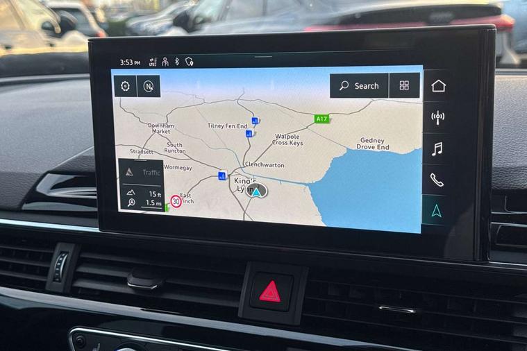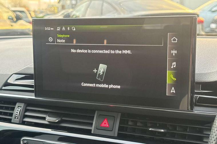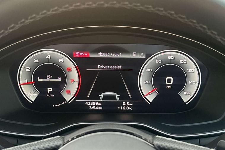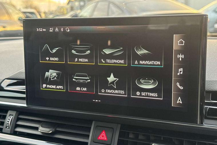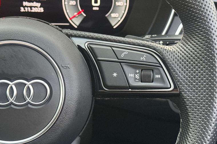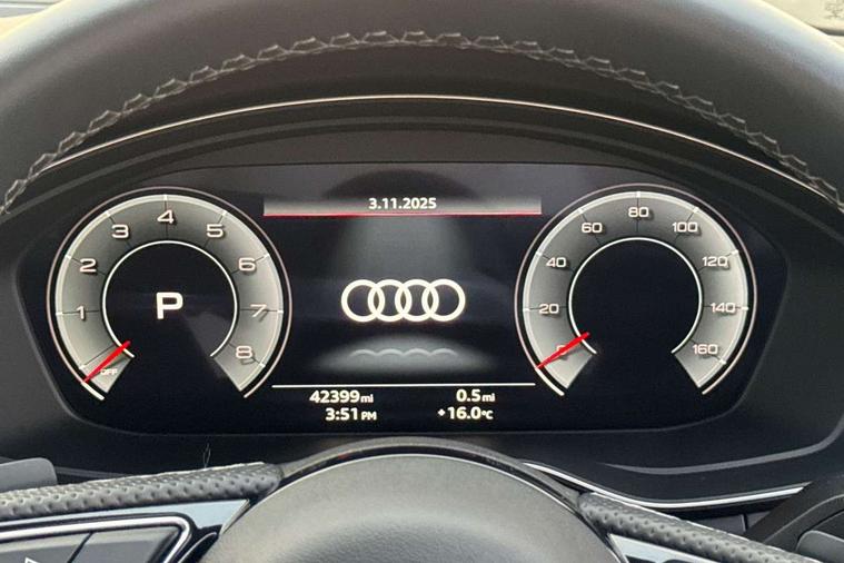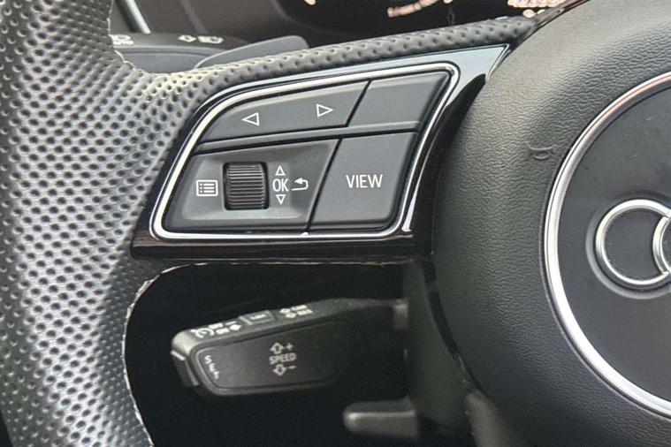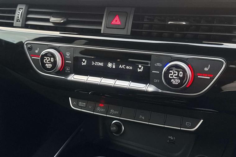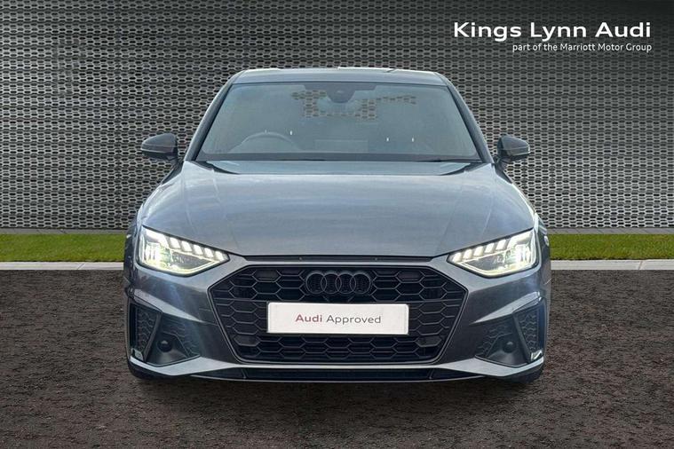 Piano black finish inlay, Black styling pack - A4 Saloon, LED Interior light pack - A4/S4, Tyre repair kit, Anti theft alarm, Anti theft wheel bolts, Central locking, Keyless Go, 2 USB charging ports, 8 passive loudspeakers, DAB digital radio reception, 3 rear seatbelts, 6 airbags - Driver, front passenger, curtain and side windows, Electronic Stabilisation Control (ESC) including ABS, ASR and EDL, Hill hold assist, Multi collision brake assist, Pop-up bonnet for pedestrian protection, Pre sense city, Seatbelt monitoring, Warning triangle and first aid kit, Auto dimming rear view mirror, Black Audi rings and black badging (model name in black badging, no engine badging), Black audi rings decal above rear sills, Body colour door handles, Body colour front spoiler lip, Body colour side sill trim, Electrically folding auto dimming/adjustable/heated door mirrors with LED side indicators and kerb view function for passenger side, Front and rear bumpers with side skirts, Front wing badges, Grained matt black side air inlets with matt aluminium silver inlay, High beam assistant, High gloss black B pillar trims and triangular rear door trim, LED headlights with LED rear lights + dynamic rear indicators + headlight adjustment and high beam, turning light + LED daytime running lights, LED third brake light, Matt aluminium silver tailpipe trim, Privacy glass, Rain and light sensors, Rear diffuser in matt titanium black with trim strip in matt aluminium silver, Rear side wing doors, Variable intermittent front wash/wipe, Windscreen with acoustic glazing, 4 way electric lumbar support for driver and front passenger, 40/20/40 split folding 3 rear seat bench in 3 parts with rear centre armrest, Black cloth headlining, Black perforated leather gearknob, Contrast stitching on seats, steering wheel and gear lever gaiter, Deluxe 3 zone electronic climate control, Door sill trims with aluminium inlay, Front and rear head restraints, Front centre armrest, Heated front seats, Illuminated door sill trims with S logo, ISOFIX child seat mounting and top tether, Manual seat adjustment, Single front passenger seat, Stainless steel pedals and foot rest, Tool kit, Audi connect safety and service (e-call), Audi connect with Amazon Alexa Integration, Audi drive select, Audi parking system plus with front and rear sensors, Audi smartphone interface, Audi virtual cockpit, Automatic start-stop system with coasting functionality and efficiency programme, Bluetooth interface, Electric boot lid release, Electromechanical power steering, Email, calendar and text messages displayed via MMI, MMI Navigation plus with MMI touch includes 10.1" high resolution colour MMI display, 3D map, Rear view camera, Voice control system, 54 litre fuel tank, Sports suspension lowered by 23mm,