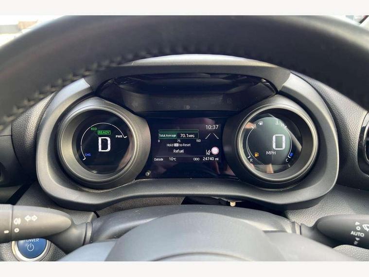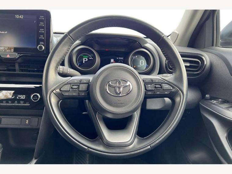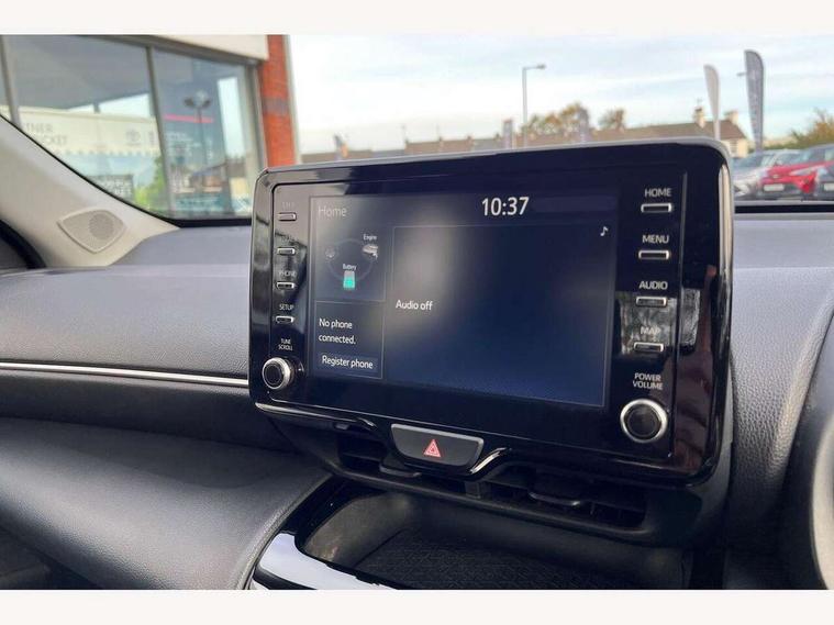 4.2" multi information display, 8" Toyota touch 2 multimedia system with Smartphone integration with Apple CarPlay and Android auto, Adjustable speed limiter, Bluetooth connectivity, Digital speedometer, Driver attention alert system, eCall emergency system, Electric power steering, Full range intelligent adaptive cruise control, Hybrid system indicator, Key reminder warning, Lane trace assist, Multimedia, audio, telephone and voice recognition switches on steering wheel, My T Connected services, Pre-collision system enhanced with emergency steering assist, Reversing camera, Road sign assist - RSA, Steering assisted vehicle stability control, 6 speakers, DAB Digital radio, USB connection, 3rd brake light, Acoustic windscreen glass, Anti-jam protection on power windows, Auto high beam [AHB] with on/off switch, Automatic headlights, Black lower front grille, Black Shark-fin antenna, Black upper front grille, Black wheel arch mouldings, Body colour door handles, Body colour front bumper, Body colour rear bumper, Electric adjustable heated door mirrors, Follow me home headlights, Front and rear electric windows with auto up/down function, Halogen projector headlights, Headlight cut off reminder, Indicators integrated on door mirrors, Intermittent rear wiper, LED daytime running lights, LED Indicators, Manual headlight levelling, Manually retractable door mirrors, Noise reduction layer on windscreen, Rain sensor, Rear side wing doors, Rear spoiler, Rear window defogger, 12v power outlet - front, 2x Rear coat hooks, 3 seat bench in 2nd row, 3 spoke leather steering wheel, 60/40 split folding rear seat, Adjustable speed limiter switch on steering wheel, Auto air conditioning, Boot light, Central armrest, Driver and front passenger personal lights, Fabric door trim, Fabric upholstery, Front console box, Front cup holders, Front head restraints, Glovebox, Grey roof lining, Height adjustable driver's seat, Height adjustable front passenger seat, ISOFIX child restraint system, Lane departure alert switch on steering control, Leather gearshift, Manual telescopic and tilting steering wheel, Mirror on driver and passenger sun visor, Pollen air filter, Rear head restraints, Single front passenger seat, Soft tonneau cover, 3x3 point rear seat belts, ABS+EBD+Brake assist, Driver and passenger central airbags, Driver and passenger front airbags, Driver and passenger side airbags, Electronic parking brake, Emergency brake light system (EBS), Front seat belt reminder, Hill start assist control (HAC), Passenger airbag on/off switch, Pre-collision system with pedestrian and cyclist detection, Rear door child safety locks, Rear passenger side airbags, Rear seat belt reminder, Traction control, Tyre pressure warning system, Immobiliser, Intrusion alarm, Keyless smart entry with push button start, Power door locks, Power passenger window lock, Remote door lock, 16" 10 spoke alloy wheels, Tyre repair kit,
