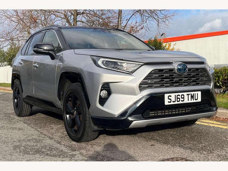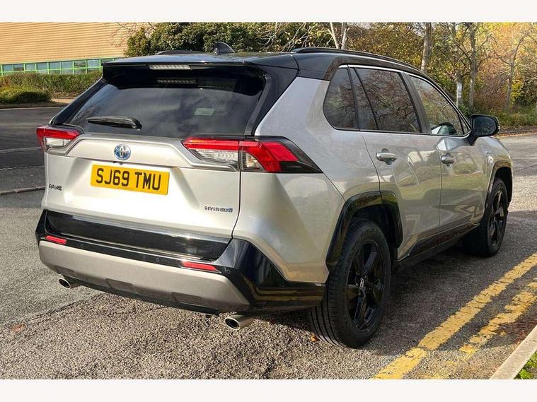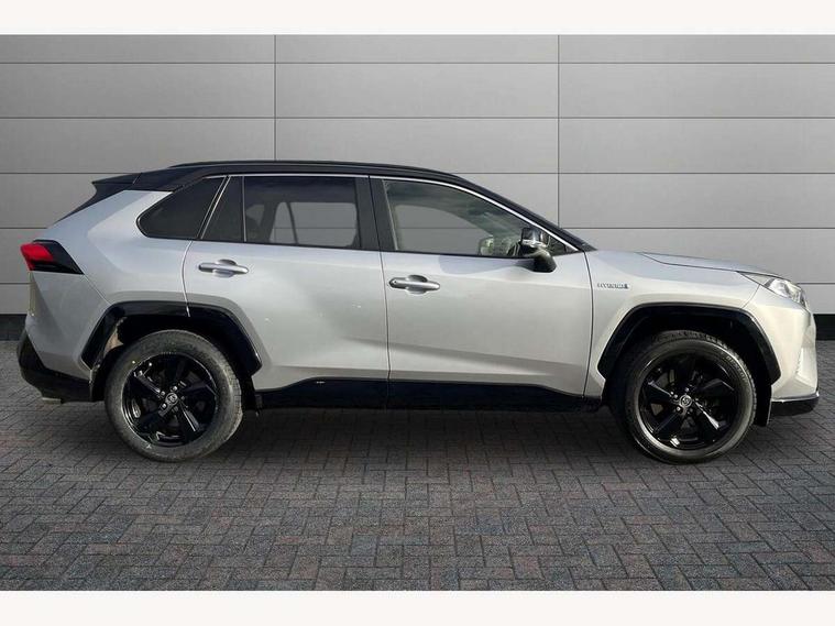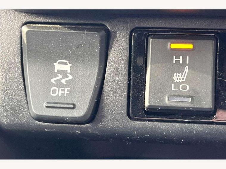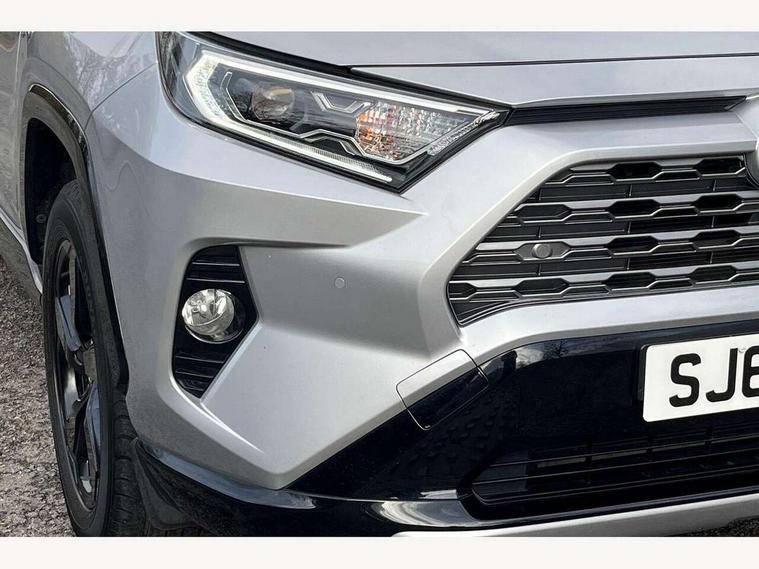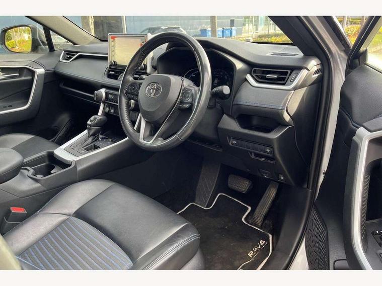 7" colour TFT display, Adaptive cruise control with lane trace assist, Adjustable speed limiter, Blind spot monitoring with rear cross traffic alert, Bluetooth system, Cyclist Detection, Drive mode selector, eCall emergency call system, ECO-driving indicator, Electric power steering, Hybrid system indicator, Lane departure warning system, Lights on warning, Night Time Pedestrian Detection, Pedestrial detection, Power boot opening and closing, Rear parking camera, Rear parking sensors, Remote boot door release in cabin, Tachometer, Touch 2 Go navigation system including 3D maps and voice control, Traffic sign recognition, Trip computer, Voice control system, Vehicle Stability Control (VSC), 6 speakers, 8" Multimedia display touch screen, Auxiliary socket for external MP3 player, DAB audio, Steering wheel mounted audio controls, Toyota touch media system, USB connection, Auto dimming interior mirror, Auto high beam, Automatic headlamp levelling, Automatic headlights, Automatically retractable door mirrors, Bi-tone black roof, Black door mirrors, Black rear spoiler, Black roof rails, Black Shark-fin antenna, Body colour door handles, Body coloured bumpers, Door mirror puddle lights, Electric adjustable door mirrors, Emergency brake-light signal (EBS), Follow me home headlights, Front fog lights, Gloss black front bumper insert, Gloss black rear bumper insert, Headlight cleaners, Heated door mirrors, LED daytime running lights, LED High mounted stop lamp, LED rear lights, Meshed upper front grille, Power front windows, Power rear windows, Privacy glass, Projector LED headlights, Rear screen wiper - intermittent, Rear windscreen defogger, Silver front under-run, Silver rear under-run, Trailer Sway Control, Turning signal integrated indicators in door mirrors, 3 rear headrests, 60/40 split fold rear seat back, Black roof lining, Boot light, Clean air filter, Driver and front passenger personal light, Driver and front passenger Whiplash Injury Lessening seats, Driver and passenger sunvisors with illuminated vanity mirrors, Dual sided deck board in boot, Dual zone automatic air conditioning, Floor mats, Folding rear centre armrest, Front and rear bottle holders, Front centre armrest, Front footwell lights, Front headrests, Front seat and rear pockets, Front sport seats, Front/rear roof mounted assist grips, Heated driver and front passenger seats, Isofix child seat preparation, Leather gear shift with chrome surround, Light blue ambient lighting on front cupholders and open tray, Manual telescopic and tilt 3-spoke leather steering wheel with Chrome insert, Manually reclining and sliding front passenger seat, Pollen filter, Power height-adjustable sliding reclining and lumbar support for driver seat, Rear coat hooks, Rear door armrests, Rear passenger air vents, Reclining rear seats, Satin chrome interior door handles, Sunglasses holder, Synthetic leather upholstery, Parking pack - Rav4, 3x3 point rear seatbelts, ABS/EBD, Adjustable front driver and passenger seat belt extender, Brake assist function, Child proof door locks, Collision mitigation braking system, Driver/Front Passenger airbags, Driver/front passenger side airbags, Drivers knee airbag, Electronic parking brake, Electronic Stability Programme (ESP), Emergency brake light system (EBS), Front and rear curtain airbags, Front and rear seatbelt reminder, Hill start assist, Passenger airbag cut-off device, Seatbelt pretensioners with load limiters, Traction control, Tyre pressure warning, Alarm/immobiliser, Glass-breaking alarm sensors, Light - on and Key in reminder, Remote central locking, Smart entry + Smart start, Speed sensitive auto door locking, Tilt detection sensors, Piano black centre console with silver insert, Soft-touch black lower dashboard, Soft-touch black upper dashboard with silver insert, Full size spare wheel,