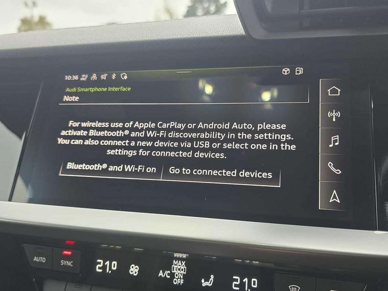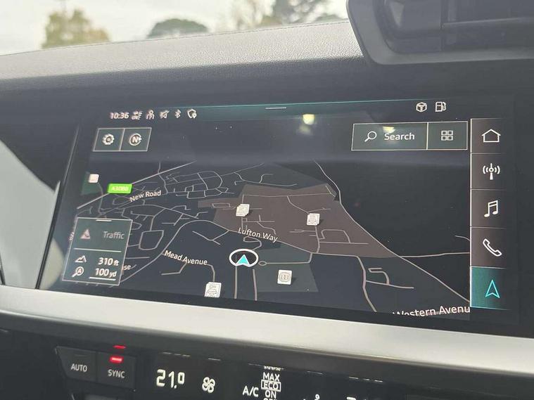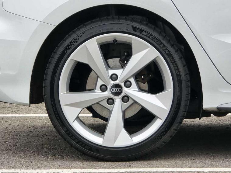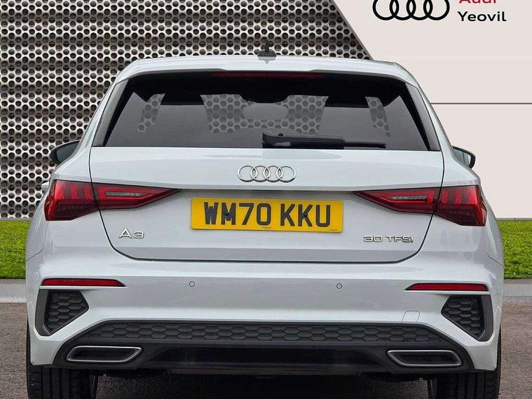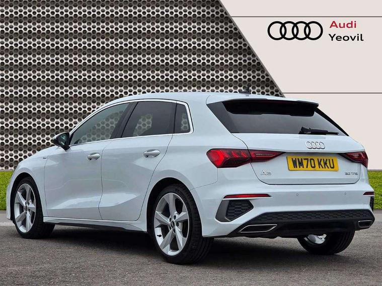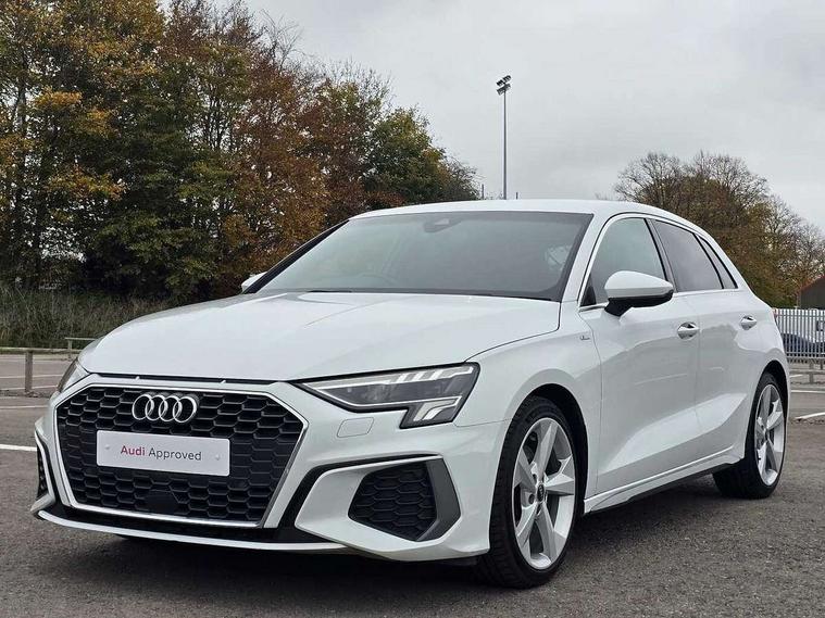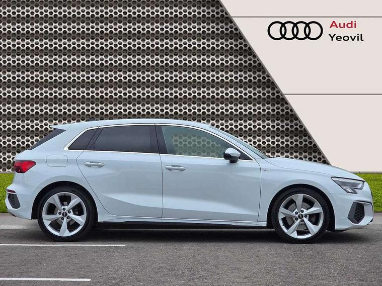 Audi connect emergency call and service, Audi drive select (Auto, Comfort, Dynamic and Individual), Audi smartphone interface, Audi Virtual Cockpit - 10.25" digital and colour instrument cluster, Automatic start/stop system with recuperation, Bluetooth interface, Collision avoidance assistant, Cruise control, Electromechanical power speed sensitive steering, Lane departure warning system, MMI Navigation Plus with high resolution 10.1" colour touch screen display, Rear parking sensors, Service indicator, Trip computer, Voice control system with natural language interaction, 2xUSB-C connection with data and charging functions, 6 passive loudspeakers, DAB Digital radio, Acoustic glass windscreen, Aluminium window trim, Auto dimming frameless rear view mirror, Electrically adjustable/heated/folding/dimming door mirrors with kerb view includes integrated LED indications + kerb view function for passenger side, Front electric windows, Illuminated aluminium inserts front door sills with S logo, LED daytime running lights, Light and rain sensors, Privacy glass - dark tinted rear window, rear door and side windows, Rear electric windows, Rear side air outlets in grained matt black, Rear wiper, S line bumpers, S roof spoiler, 12V socket and storage compartment in front centre console, 40/20/40 split folding rear seat bench with cupholder, Black cloth headlining, Dual zone electronic climate control, Front and rear centre armrest in leather, Front and rear headrests, Front/rear floor mats, Height and reach adjustable steering wheel, Interior lighting - glove compartment light and right hand side, Luggage compartment floor covering, Manual boot compartment lid, Manually adjustable front seats, Seat side bolsters, Stainless steel pedals and front footrest, Twin leather upholstery with front sports seats S embossed logo, Aluminium interior elements pack - A3 Sportback, S line styling pack - A3 Sportback, 3x3 point rear seat belts, Driver and front passenger airbag with passenger airbag deactivation, Electronic Stabilisation Control (ESC) including ABS, ASR and EDL, First aid kit with warning triangle and 2 safety vests, Front side airbags with head airbags and interaction airbag, Hill hold assist, Pre-sense front with pedestrian and cyclist detection, Seatbelt monitoring, Tyre pressure loss indicator, Anti theft alarm, Anti-theft wheel bolts, Electronically operated child lock, Immobiliser, Remote control central locking, Accent surfaces in the dashboard and centre console in platinum grey silk effect paint finish, Dark spectrum aluminium inlays,