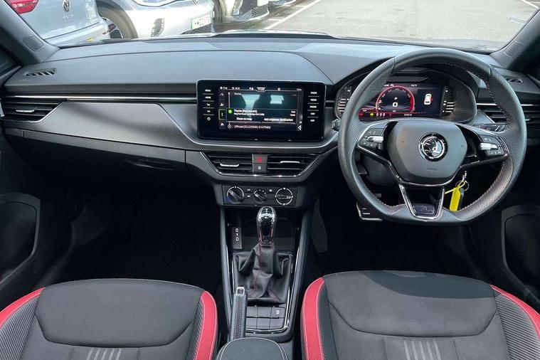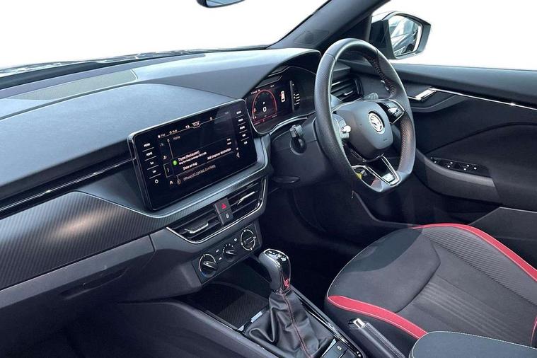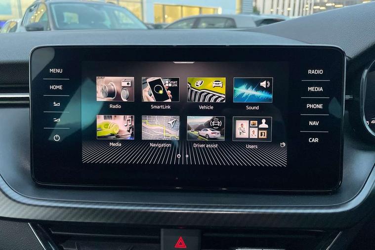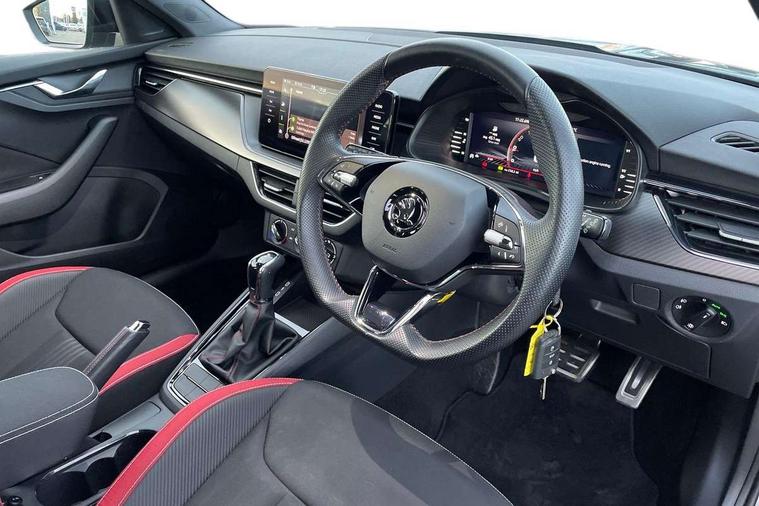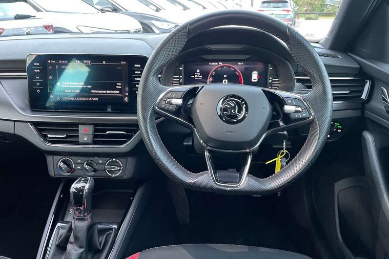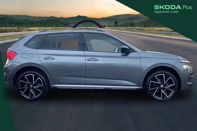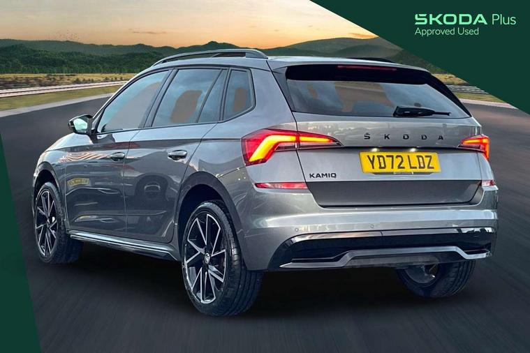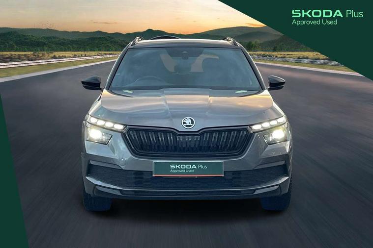Amundsen satellite navigation with 9.2" glass colour touchscreen display, voice control, virtual cockpit, web radio and traffic sign recognition, Bluetooth system, E-call, Front assist system, Gesture control, PAS, Service indicator, Speed limiter, Virtual cockpit with 10.25"display, Wireless SmartLink for apple car play, android auto and mirrorlink, 8 speakers, Auxiliary input socket, DAB Digital radio, Black door mirrors, Black radiator grille, Black rear diffuser, Body colour bumpers, Body colour door handles, Body colour roof spoiler, Boot lettering in black, Chrome grille surround, Dimming rear view mirror with black surround, Electrically adjustable and heated door mirrors, Front and rear electric windows, Front sport bumper, Full LED headlights with adaptive front light system and front cornering fog lights, Headlight range control, Heated rear window, High functionality rear led lights with dynamic indicators, KAMIQ Door sills, LED daytime running lights, Light sensors, Monte carlo plaque, Panoramic sunroof with black roof rails, Privacy glass, Rear fog lights, Rear side wing doors, Rear wiper, 12V Accessory socket in centre console, 3 seat bench in 2nd row, Aluminium pedals, Black ceiling for black/beige interior, Black roof lining, Chrome inner door handles, Cloth upholstery, Front head restraints, Glove compartment with illumination, Ice scraper, Isofix child seat fittings on outer rear seats, ISOFIX on front passenger seat, Leather gear lever, Manual lumbar support for front seats, Rake/reach adjustable steering wheel, Reading lights, Single front passenger seat, Sports seats, Sun visors with illumination on front passenger, Textile floor mats, Third rear headrest, Top tether for front passenger seat, Umbrella in driver's door, 3x3 point rear seatbelts, Airbags - driver and front passenger, ESP, Front passenger airbag deactivation switch, Front side airbags with curtain airbags, Hill hold control, Manual parking brake, Manual rear child locks, One tone horn, Rear disc brakes, Seatbelt reminder for driver an co-driver, Traction control, Tyre pressure monitor, Anti-theft alarm system with interior monitoring, backup horn, towing protection and remote central locking with SAFE system, Anti-theft wheel bolts, Electronic engine immobilizer, Chrome air vent surrounds, 18" Vega alloy wheels in black,