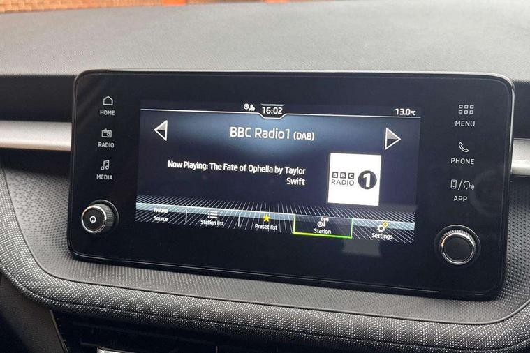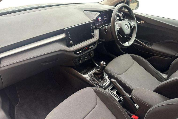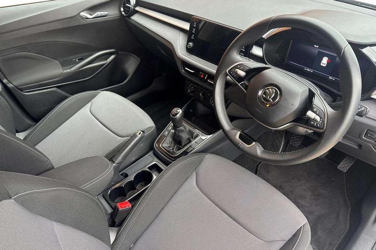 Advanced driver attention and drowsiness monitor, Bluetooth connection, Electromechanical power steering, Exterior temperature gauge, Service interval indicator, Traffic sign recognition, Virtual cockpit with 10.25" colour display, Wireless SmartLink for Apple CarPlay and Android Auto, 6 Speakers (4 in front and 2 in rear), Auxiliary socket for external MP3 player, DAB digital radio reception, Body coloured bumpers, Dimming rear view mirror with black frame, Door mirror integrated indicators, Front and rear electric windows, Front window wiper intermittent control, Headlight range control - Automatic, Ice scraper in fuel cap, LED daytime running lights with coming and leaving home feature, LED rear lights, Privacy glass, Rear LED fog light, Rear side wing doors, Rear window wiper with washing nozzles, Roof mounted spoiler, SKODA tailgate lettering in chrome, Third brake light, 2 reading lights in front and 2 reading lights in rear, 3 rear headrests, Backrest split and folding, Central console with removable cup holder and storage box, Chrome handbrake release button, Fabric upholstery, Front centre armrest, Gearshift knob/handle in leather, Grain satin black interior door handles, Hand brake lever handle in leather, Height adjustable front headrests, Height adjustable front seats, Height adjustable steering wheel, ISOFIX and TopTether anchorage points to the outer rear seats, ISOFIX and TopTether on the front passenger seat, Luggage compartment lighting, Manually adjustable lumbar support in front seats, Pollen filter, Rear seat bench unsplit, Single front passenger seat, Storm grey headlining, Sun visors with mirror and airbag label on passenger side, Textile floor mats, Ticket holder, Umbrella in drivers door, 3-point height adjustable front seats belts with pretensioner and force limiter, Automatic warning lights in case of crash, Driver and passengers airbag with switch off function, e-Call+, ESC including ABS, MSR, ASR, EDS, HBA and XDS, Front and rear seat belt warning, FRONT ASSIST (AEB City and AEB Inter Urban), Front side airbags, Head airbags, One tone horn, Pedestrian protection, Three rear 3-points safety seat belts with pretensioner and force limiter including stop function for outer rear seat belts, Tyre pressure monitoring system, Anti-theft alarm system including immobiliser, interior monitoring, backup horn, and towing protection, Central locking with radio remote control, interior controls, SAFE function and 2 foldable keys, Colour Edition air vents, Grain satin black central console cover, Metallic grey upper decorative trim, Satin black door and side trim panel in front, Textile Kota grey lower decorative inserts, Anti-theft wheel bolts protection, Super-low rolling resistance tyres,