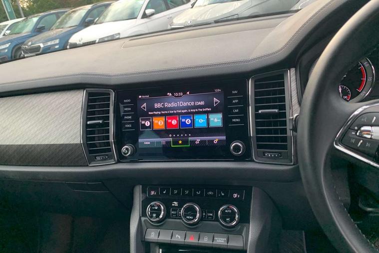 Bluetooth system, Digital voice enhancement, E-call, ECO Stop/start function, Exterior temperature indicator, Rear view camera, Smartlink wireless for apple carplay and wired for android auto, Speed limiter, USB C Port x 2 in front centre console, Wireless charging, 8 speakers, DAB Digital radio, Aero front windscreen wipers with intermittent function, Aero rear window wiper, Auto dimming rear view mirror, Black wheel arch surrounds, Body colour bumpers, Body colour door mirrors and handles, Chrome front grille, Chrome roof rails with chrome window surround, Daytime running lights, Electric adjustable/heated/folding door mirrors, driver side auto dimming with boarding sports and memory function, Electric front and rear windows, Extended rear spoiler with finlets in gloss black, Front fog lights, Full LED matrix headlights with AFS (adaptive front light system), cornering function and AWL (all weather lighting system), Headlight washers, Heated rear window, Invisible tailpipe, LED rear fog light, LED third brake light in rear spoiler, Light assistant (coming/leaving home/tunnel light), Off-road style lower front bumper element, Privacy glass, Rain and light sensors, Rear LED lights (high functionality) with welcome effect and dynamic indicators, Rear side wing doors, Safety reflectors on front and rear doors, Window control switches with black trim, 12V socket in boot, 2 rails with 2 hooks, 2 seat bench in 3rd row, 3 seat bench in 2nd row, 4 foldable roof handles with rear coat hooks, 60:40 foldable rear seat with sliding adjustment and backrest angle adjustment, Bottle holders in door panel in the 1.5 litre front and 1 litre rear, Cargo storage compartments, Chrome headlight control button, Chrome interior door handles, Coat hooks on B pillar, Covered storage compartment on driver side, Front centre armrest with storage compartment, cup holder and 12V socket, Front courtesy lights, Gear shift lever with chrome frame and black gloss insert, Grey stitching in front and rear armrests and door armrests + door inserts, Height adjustable front headrests, Illuminated and cooled glovebox, Illuminated luggage compartment, Isofix child seat fittings in outer rear seats with top tether, Manually adjustable steering column, Net programme in boot (1x horizontal Net, 2x vertical Nets), Overhead glasses storage compartment, Pollen filter, Rear centre armrest with cupholders, Single front passenger seat, Sliding trunk cover, Small Bags on the inner sides of the front backrests, Sunvisors with illuminated vanity mirrors, Three rear height adjustable headrests, Ticket holder on A Pillar, Umbrella in door panel, Variable boot floor, Auto door release and activation of warning lights, Child locks on rear doors, Driver and front passenger airbag with knee airbag and front passenger airbag deactivation, Electronic parking brake with hill start assist, Emergency rear braking signal, ESC (incl. ABS+MSR+ASR+EDS+HBA+DSR+RBS+MKB), Front assist with autonomous emergency braking, Front side airbags with curtain airbags, Fuel cut off safety device, Height adjustable front 3 point seatbelts + pretensioners, Hill hold control, Rear disc brakes, Safety vest holder in door, Seat belt reminder for all seats, Tailgate unlocking from outside, Three point rear seat belts, Two tone horn, Tyre pressure monitor, Alarm with interior monitoring and tilt sensor with safe function, Anti-theft wheel bolts, Immobiliser, Keyless entry and start system (KESSY), Remote central locking with 2 keys, Grey stitching in dashboard, Linear diamonds decorative inserts, Temporary spare wheel (space saver),