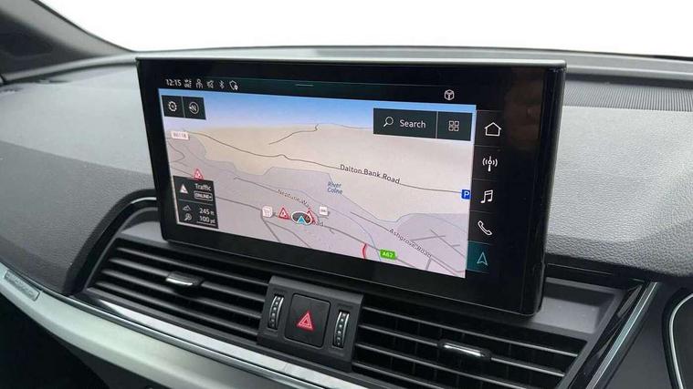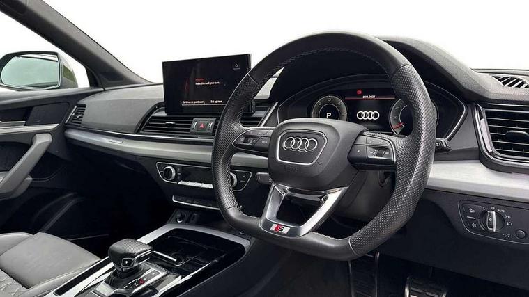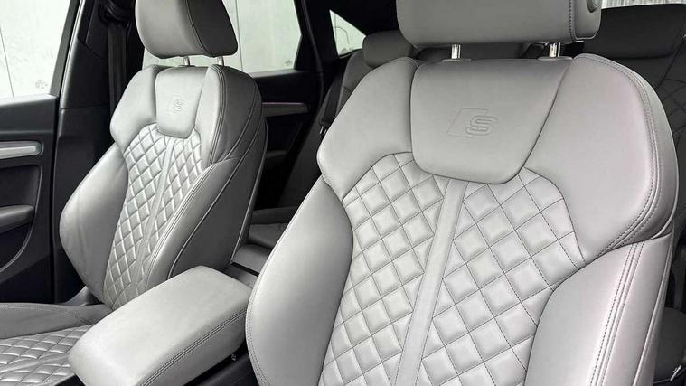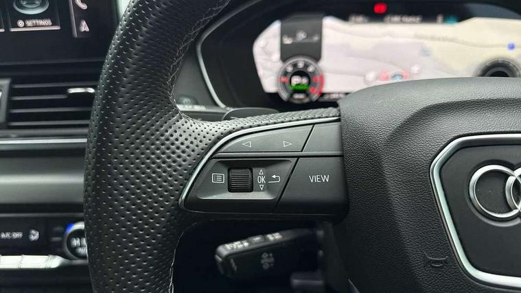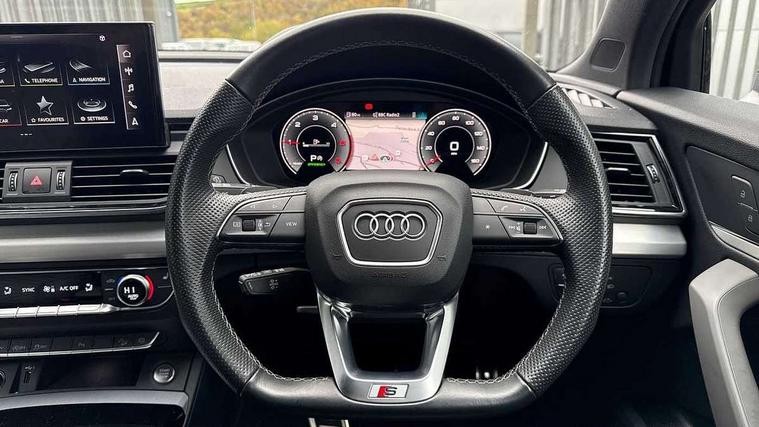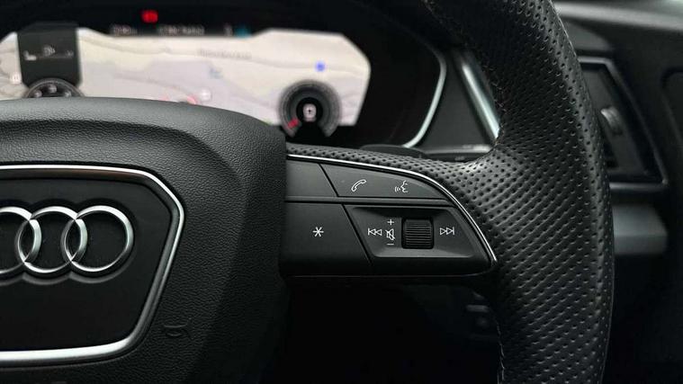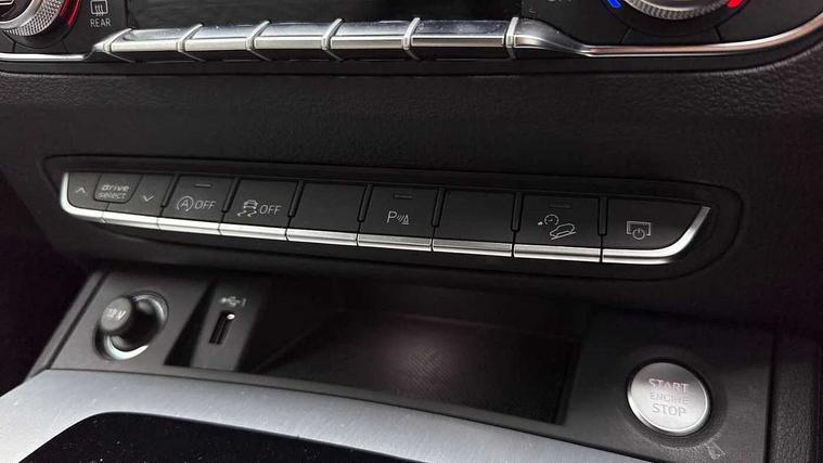 Audi connect safety and service (e-call), Audi connect with Amazon Alexa Integration, Audi drive select, Audi virtual cockpit plus with 12.3" screen and three different layout designs, Audi wireless smartphone interface, Automatic start-stop system with coasting functionality and efficiency programme, Bluetooth interface, Electro - mechanical power assisted steering, MMI navigation plus with 10.1" touch screen, Power tailgate, Reversing camera, Service interval indicator, Voice control system with Audi hotword activation "Hey Audi", Diesel particulate filter, Quattro on demand, S line sports suspension, 2 x USB charging port with aux input socket, DAB Digital radio, Acoustic windscreen, Aluminium roof rails, Audi matrix LED headlights with dynamic front and rear indicators, Auto dimming door mirrors, Auto dimming rear view mirror, Automatic headlight adjustment, Automatic headlights and windscreen wipers, Body colour door mirrors, Body colour rear diffuser with matt aluminium silver surrounds, Body colour underbody protection, Chrome plated exhaust trims, Daytime running lights, Door sills in Selenite silver, Electric adjustable/heated/folding door mirrors, Front air inlet surrounds in aluminium, Front and rear electric windows, Front radiator grille in honeycomb design, Headlight washers, High level LED brake light, Lower bumpers painted in contrast Manhattan grey, Rear chrome trim strip below lights, Rear privacy glass and rear side windows, Rear side wing doors, Rear wiper, Roof bars, S Line badges on the front wings, S Line front and rear bumpers, S Line rear spoiler, S Line side skirts, 3 rear headrests, 40:20:40 split folding 3 rear bench seat in 2nd row with rear centre armrest, Black cloth headlining, Comfort front centre armrest, Contrast stitching on seats, steering wheel and gear lever gaiter, Deluxe 3 zone electronic climate control, Front head restraints, Front/rear floor mats, Gear lever in black leather, Heated front seats, Height/reach adjustable steering column, Illuminated door sill trims with S logo, ISOFIX child seat mounting and top tether, Manual seat adjustment with 4-way electric lumbar support, Removable luggage compartment floor, Single front passenger seat, Stainless steel pedals, Sunvisors with vanity mirrors, Trunk roller cover, High gloss pack - Q5, LED interior light pack - Q5, 3 point seatbelts on all seats, 6 airbags - Driver, front passenger, curtain and side airbags, Electrically operated child locks on rear doors, Electromechanical parking brake, Electronic stabilisation control including ABS, ASR and EDL, Front passenger airbag deactivation, Hill descent control, Hill hold assist, Multi collision brake assist, Pop-up bonnet for pedestrian protection, Pre sense city, Seat belt force limiter, Seatbelt monitoring, Tyre pressure warning, Warning triangle and first aid kit, Anti theft alarm, Anti-theft wheel bolts, Keyless Go access/ignition system, Remote central locking, Matt brushed aluminium inlays,