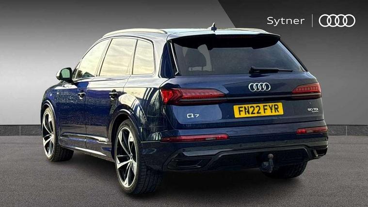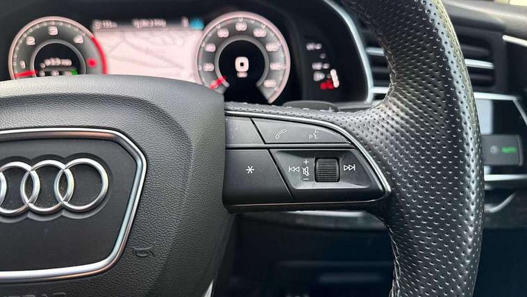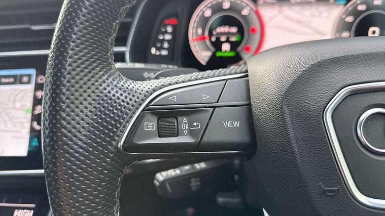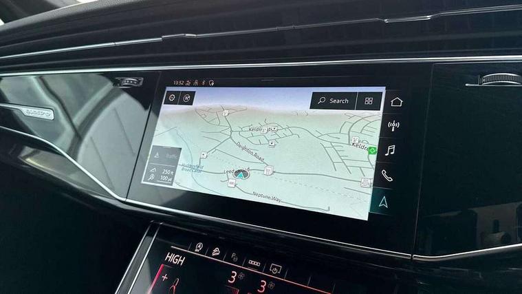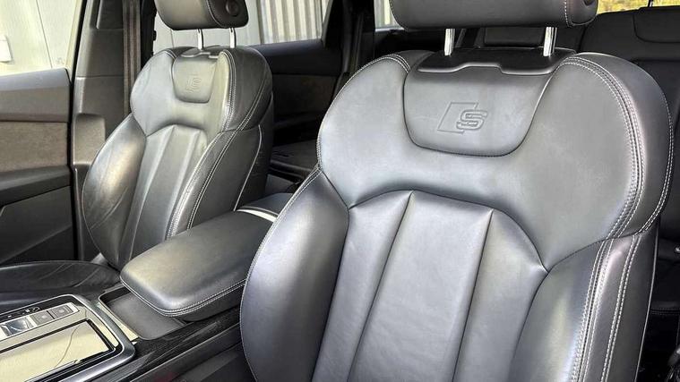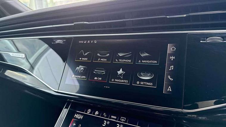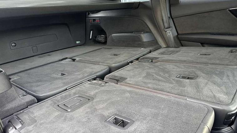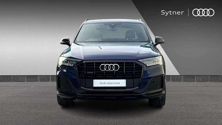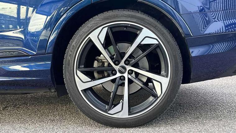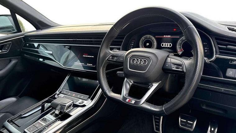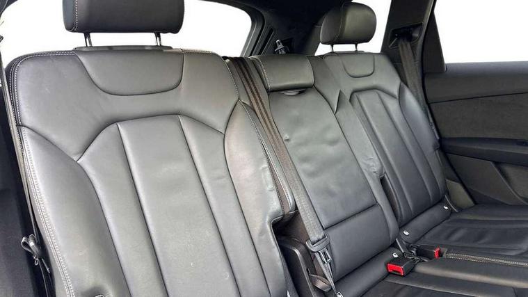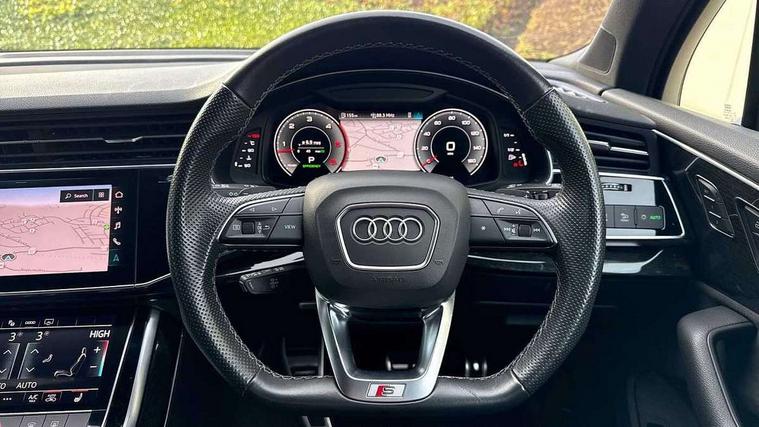 Audi connect safety and service (e-call), Audi connect with Amazon Alexa Integration, Audi drive select (Auto, Comfort, Dynamic, Efficiency, Individual, Off-road and All road), Audi smartphone interface includes wireless Apple carplay/Android Auto, Bluetooth interface, Camera based traffic sign recognition, Electromechanical steering, MMI navigation plus with MMI touch screens includes 10.1" and 8.6" screens with haptic feedback, Natural voice recognition, Parking system plus with 360 degree display (front, rear and side sensors) - acoustic and visual park assist system, Power operated tailgate, Rear view camera, Start/stop system, 48V Mild hybrid technology, Adaptive air sports suspension, Quattro all wheel drive with self locking centre differential, Audi music interface - front 2 USB-C ports with charger and data functions, Audi sound system with 6 channel amplifier, 180 watt amplifying capacity and 10 loudspeakers including subwoofer, DAB digital radio module, 3rd brake light, Auto dimming frameless rear view mirror, Black roof rails, Bumpers in contrast paint scandium grey finish includes door trim and wheel arch trim strips, inlays in door strip contain quattro embossing, Electrically adj heated/folding + automatically dimming exterior mirrors with memory + automatic kerb side function for passenger side exterior mirror, Heat insulating glass in windshield, Integrated LED indications in door mirrors, LED daytime running lights, LED headlights and high beam assist, LED rear tail lights, Privacy glass - dark tinted rear and rear side windows from B-pillar backwards, Rear side wing doors, Rear wiper, 2 seat bench in 3rd row, 3 seat bench in 2nd row, 4 zone deluxe automatic climate control, 7 seat layout with ISOFIX points for the front passenger seat and rear passenger seat, Black cloth headlining, Comfort front centre armrest, Electric adjustable front seat with 4 way lumbar support, driver memory functionality, Folding rear seats, Front head restraints, Front/rear floor mats, Heated front seats, Illuminated door sill trims with S logo, LED interior ambient lighting, Luggage compartment cover, Luggage compartment sill protection in stainless steel, Rear head restraints, Single front passenger seat, Stainless steel pedals, Sunvisors with illuminated vanity mirrors, Tool kit, Titanium black styling pack - Q7/SQ7, 3 point seatbelts on all rear seats, Audi pre sense front, Child locks on rear doors, Driver and front passenger, front side and curtain airbags, Electromechanical parking brake, Electronic Stabilisation Control (ESC) including ABS, ASR and EDL, Extended pedestrian protection measures, Hill hold assist, Seatbelt monitoring, Tyre pressure loss indicator, Warning triangle and first aid kit, Anti theft alarm, Anti-theft wheel bolts and wheel loosening detection, Keyless Go, Remote central locking, Polished oak trim with grey finished, Tyre repair kit,