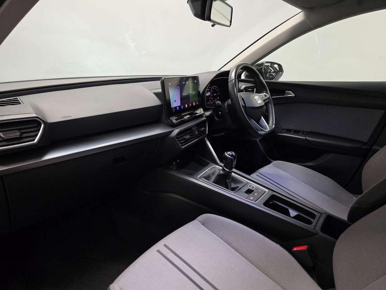 Cruise control with speed limiter, Digital cockpit, Front assist with forward collision warning braking reaction to vehicles, pedestrians and cyclists, Full link smartphone integration with Mirror Link, wireless Apple CarPlay and wired Google Android Auto, Lane keeping system, Lockable tailgate, Park assist (inc front/rear parking sensors), Power assisted speed sensitive electro-mechanical steering, RPM, trip computer, outside temp gauge, instrument light brightness, low fuel warning light, lights on reminder, gearshift indicator, Service interval indicator, Start/stop system with regenerative braking, Standard suspension, XDS electronic differential lock and dynamic traction support, Auxiliary input socket, Body colour door handles, Body coloured bumpers, Body coloured exterior mirrors with integrated LED indicators, Dark tinted rear windows, Electric front/rear windows, Electrically adjustable and heated door mirrors, LED front fog lamps with cornering function, LED headlights and LED tail lights, LED rear fog lamp, Manual dimming rear view mirror, Rear wash/wipe, Separate daytime running light with automatic headlight control, 12v power point in centre console, 60/40 split rear bench seat, Air conditioning, Cloth upholstery, Driver seat lumbar adjustment, Driver/passenger manual seat height adjustment, Dust/pollen filter, Folding boot cover, Front and rear height adjustable headrests, Front and rear reading lights X 4, Front seatback storage pockets, Height/reach adjust steering wheel, Interior lighting with LED lighting in sunvisor, glovebox and rear headlining, ISOFIX points in outer rear seats with top tether anchorage points, Leather flat bottomed, perforated steering wheel and leather gearstick, Luggage tie-down hooks, Sunvisors with covered illuminated mirror, Tool kit, Media system plus with navigation - Leon SE, 3 point seatbelts on all rear seats, ABS, Brake control system - ESC and brake booster, Child proof door locks, Driver and front passenger airbags with front passenger airbag de-activation, front side and curtain airbags, Electronic parking brake, Extended safety system - seat belt tensioner, window closure and hazard lights, Hill hold control, Rear disc brakes, Seat belt reminder for front and rear seats, Tiredness recognition system, driver alert system, Tyre pressure monitoring system, Anti theft alarm system with interior monitoring in cab, backup horn and towing protection, KESSY Go (Keyless start), Locking wheel bolts, Chrome interior detailing, 17" Dynamic tri-spoke alloy wheels with 91W tyres,