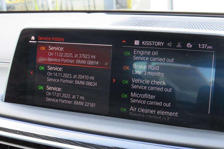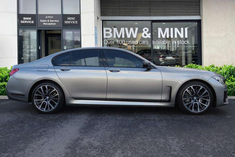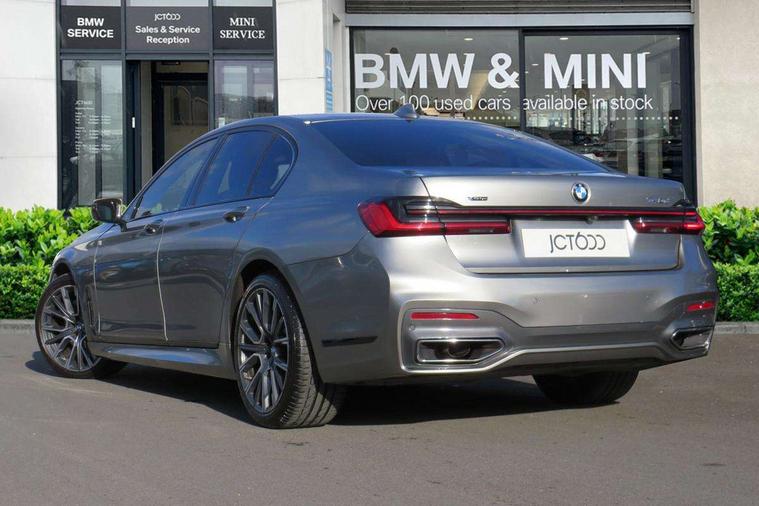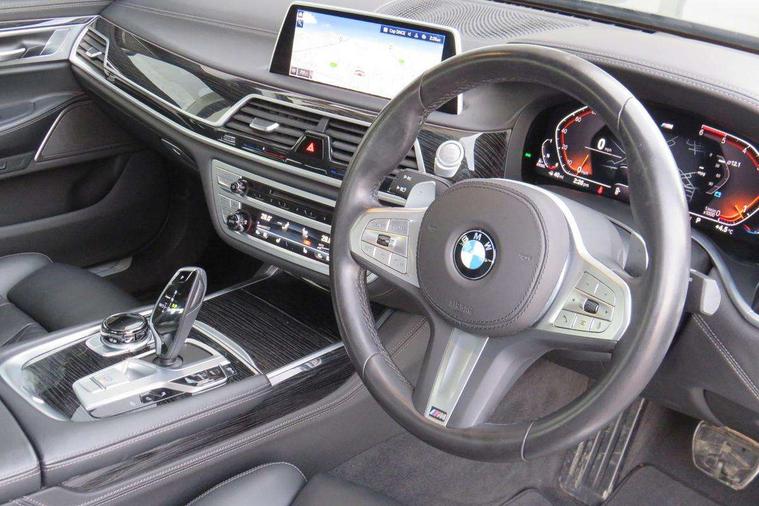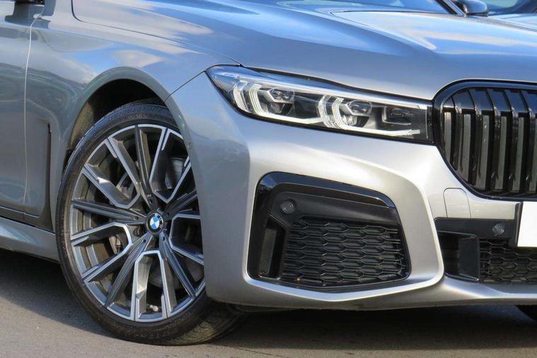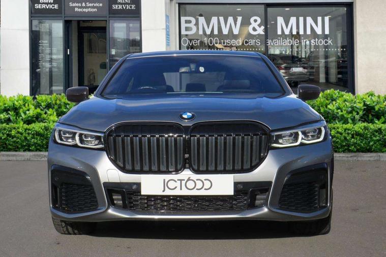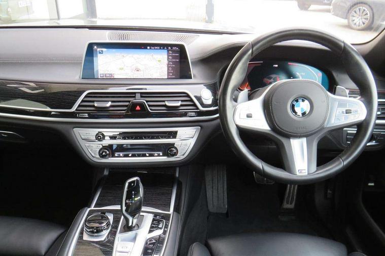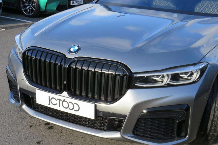 20GB hard disc drive (HDD) memory, Active Guard incl approach control warning with city brake function and person warning with city brake function, Average speed gauge, BMW apps interface, BMW ConnectedDrive - Online, BMW Drive recorder, BMW gesture control, BMW information plus, BMW legal emergency call, BMW Live Cockpit Professional with 12.3" instrument display + 12.3" high resolution centre display nav function and Intelligent Voice Assistant, BMW Teleservices, Brake force display, Brake pad wear indicator warning light, Colour information display, Condition based service, Driving experience control with adaptive mode, Electric boot lid - electrically opening/closing rear tailgate, Engine start/stop button, Enhanced bluetooth with wireless charging, Fuel consumption and range, iDrive touch controller with shortcut buttons, Integrated owner's handbook, Lights on warning, Multifunctional instrument panel, Oil sensor for level and grade, On board computer, On-board diagnosis - OBD, Outside temperature gauge, Park distance control (PDC), Personal Profile, Powered bootlid operation, Run flat indicator, Service indicator, Smartphone wireless charging plate, Speed limit display, Speed limiter, Trip computer, Wifi hotspot preparation, Anti roll bar front and rear, Diesel particulate filter, Double wishbone front axle, Dynamic Damper Control, Front and rear air suspension, Integral rear axle, Sport automatic transmission with gearshift paddles, CD player, DAB Digital radio, Favourite buttons, All round anti-corrosion system, Auto dimming rear view mirror, Automatic headlights, Automatic windscreen wipers, Body colour bumpers, Body colour door mirrors, Carbon core - innovative lightweight construction with highly rigid and light carbon elements, Chrome kidney grill struts in front and side, Dynamic brake lights, Electric front and rear windows with fingertip open/close + anti-trap all round and comfort closing function, Electric heated door mirrors, Exterior mirrors - electrically folding with anti-dazzle, Follow me home headlights, Heated windscreen washer jets, High beam assistant, High gloss shadow line exterior trim, LED daytime driving lights with front and rear active, LED front and rear fog lights, LED rear lights, Model logo, Outer door handle illumination, Rear decorative bumper moulding tailpipe in chrome, Rear side wing doors, Third brake light, Variable front intermittent wipers, Welcome lighting, 12V power sockets, 3 seat bench in 2nd row, Ambient interior lighting, Battery in luggage compartment, Centre console with armrest, Door sill finishers with BMW designation, Driver + front passenger electric lumbar support, Electric seat adjustment with memory, Footwell courtesy lights front and rear, Four zone automatic air conditioning, Front and rear cupholders x 2, Front and rear reading lights, Front and rear seat heating, Front comfort seats, Glove compartment, Grab handles, Isofix child seat mounting, Lashing eyelets in boot, Lockable glovebox, M specific key, Microfilter and active carbon filter, Reach and rake adjustable steering column, Rear centre console, Rear headrests, Soft close doors, Storage options, Sun visors, Velour floormats, Connected Package Professional - 7 Series, M Aerodynamic pack - 7 Series, Non smokers pack - 7 Series, Parking Assistant Plus - 7 Series, Active front seat headrests, Active protection, Anti-lock braking system (ABS), Anti-whiplash front headrests, Automatic Stability Control (ASC), Brake assist function, Brake energy regeneration, Comfort exit stepless door brake, Cornering brake control, Crash Sensor - activates hazard/interior lighting + unlocks doors, Deformation zones - front and rear with door reinforcements and bumpers up to 2.5 mph, Driver and front passenger airbag with front passenger airbag deactivation, Driver/front passenger side airbags, DSC - Dynamic Stability Control, Dynamic brake control, Dynamic safety, Dynamic Traction Control - DTC, EBD - Electronic brakeforce distribution, Electromechanical parking brake + auto hold function, Engine drag torque control, Front and rear brake discs with interior ventilation, Front seatbelt pretensioners with force limiters, Head airbags for first and second row seats, Mechanical child proof lock on rear doors, Rear airbags, Side impact protection, Three inertia reel rear seatbelts, Three point rear seat belts, Two tone horn, Tyre pressure monitoring system, Tyre pressure sensors, Warning triangle and first aid kit, Comfort access system with smart opener, Electronic vehicle immobiliser, Locking wheel bolts, Remote central locking, Thatcham Cat.1 alarm, Ceramic finish for controls, Leather instrument panel,