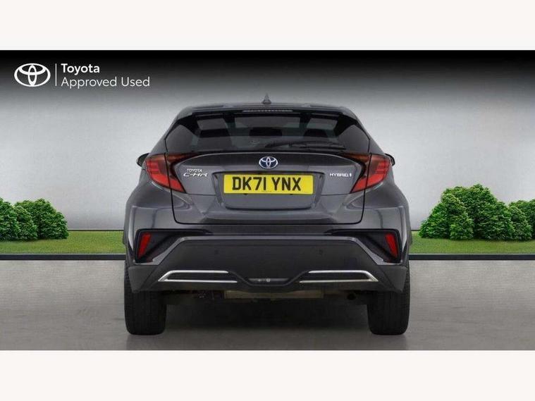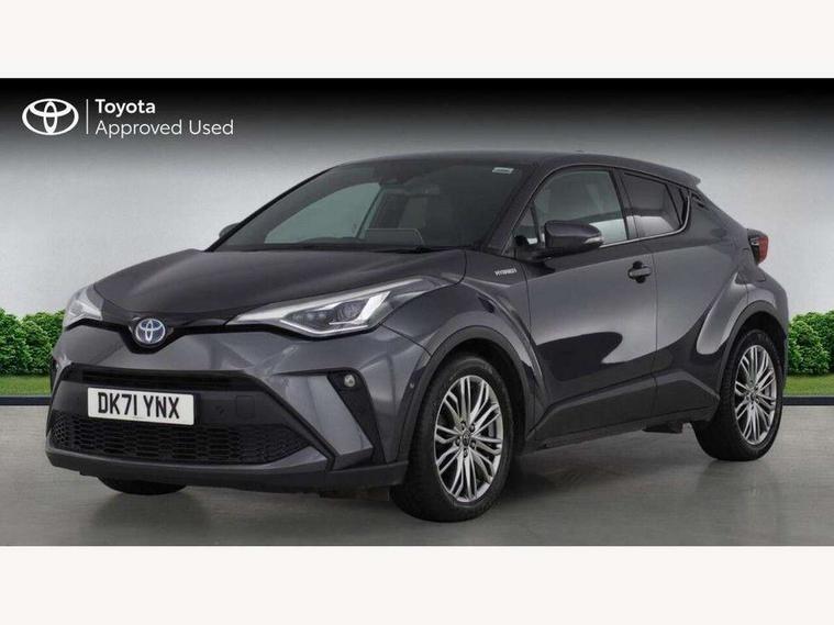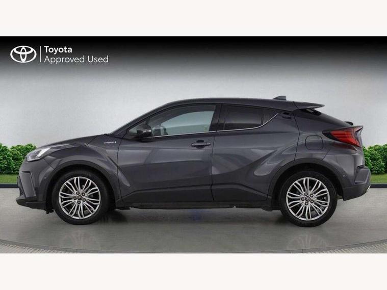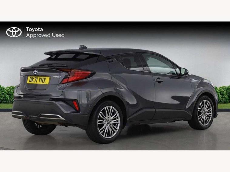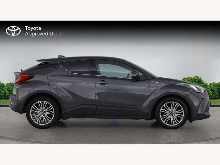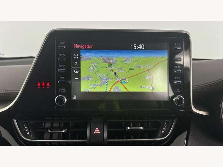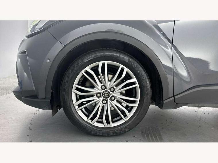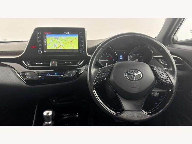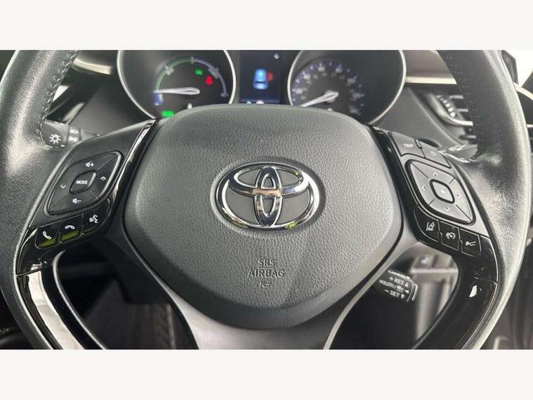 4.2" coloured TFT screen for multi-information display, Adaptive cruise control, Bluetooth connectivity, Electric power steering, Hybrid system indicator, Lane departure alert with steering control, Remote boot door release in cabin, Remote boot door release in key, Reversing camera, Road sign assist - RSA, Simple Intelligent parking assist, Touch 2 Go navigation system, Trip computer, Voice recognition, Vehicle Stability Control (VSC), 6 speakers, AM/FM radio, DAB Radio (Digital Audio Broadcasting), Toyota touch 2 multimedia system with 8" display, USB connector, Wi-fi connectivity, Adaptive front light system, Adaptive LED Headlights, Anti-jam protection on power windows, Auto high beam, Auto up and down function on all power windows, Automatic headlight levelling, Automatic headlights, Automatic headlights cut-off, Black and body coloured rear bumper, Black upper front grille, Body colour door handles, Body colour door mirrors, Body colour front spoiler lip, Body coloured front bumper, Boot door release with push button, Electric heated door mirrors, Follow me home headlights, Front and rear power windows, Honeycomb lower front grille, LED daytime running lights, LED fog lights, LED front light guide, LED High mounted stop light, LED rear brake lights, LED rear combination lights, Noise reduction layer on front windows and windscreen, Power adjustable door mirrors, Privacy glass, Rear sequential indicators, Rear spoiler, Rear tailgate, Rear window defogger, Rear window wiper, Shark fin antenna, UV-filter on driver and passenger windows, UV-filter on rear windows, 12v power outlet - front, 3 rear headrests, 3 spoke leather steering wheel, 60/40 split folding rear seat, Adjustable rear headrests, Adjustable speed limiter switch on steering wheel, Assist grips front and centre pillar, Audio and telephone switches on steering wheel, Black front door assist grips, Blue ambient lighting on front cup holders, Blue ambient lighting on front doors, Boot light, Chrome interior door handles, Driver and front passenger personal light, Driver and front passenger Whiplash Injury Lessening seats, Driver and passenger seatback pockets, Dual zone automatic air conditioning, Floor mats, Front cupholders, Front head restraints, Front sports seats, Glovebox with internal light, Hard tonneau cover, Heated driver and front passenger seats, Heated steering wheel, Hooks for luggage holding net, Humidifying Nanoe air purifier, Illuminated entry system, Isofix attachments on outer rear seats, Leather gearshift, Leather wrapped steering wheel, Light on driver sun visor, Light on passenger sun visor, Manual telescopic steering wheel, Manual tilt steering wheel, Microphone on front personal light, Mirror on driver sun visor, Mirror on passenger sun visor, Multimedia switches on steering wheel, Pollen filter, Power adjustable lumbar support on driver seat, Power tilting cushion on driver seat, Shopping bag hooks, Slow opening on lower glovebox, Voice recognition switch on steering wheel, Leather pack - C-HR, Tech with parking sensor pack - C-HR, 16 Disk front wheel brake, 3x3 point rear seatbelts, ABS+EBD+Brake assist, Electronic parking brake, Front and rear seatbelt reminder, Front passenger airbag on/off switch, Hill start assist control (HAC), Pre collision system with pedestrian detection, Pre-tensioners and force limiters, Rear door child safety locks, SRS Airbags - Driver + Front passenger, front side, front and rear curtain and driver's knee airbags, Toyota safety sense, Tyre pressure monitoring system, Acoustic vehicle alert system (AVAS), Glass-breaking alarm sensors, Immobiliser, Intrusion alarm, Intrusion sensor, Motion sensor alarm, Power door locks, Power passenger window lock, Remote central locking, Black lower dashboard, Dark brown upper dashboard, Piano black console, Silver deco line on upper dashboard, Tyre repair kit,