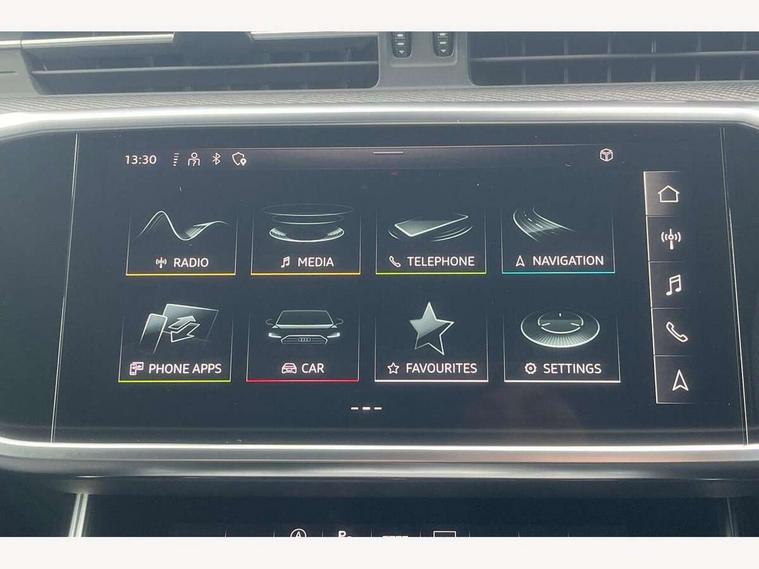 7" high resolution colour driver information display system, Audi connect safety and service (e-call), Audi drive select, Audi parking system plus - acoustic and visual park assist system for front and rear, Audi smartphone interface, Automatic start/stop system with coasting functionality, Bluetooth interface, Lane departure warning system, MMI navigation with MMI touch + twin touch screens 8.8" and 8.6" with haptic and acoustic feedback, Power operated tailgate, Progressive steering, Rear view camera, Service interval indicator, Voice control system, Sports suspension, Audi music interface, Audi sound system, Auxiliary input socket, DAB Digital radio, USB connection, Black roof rails, Electric front/rear windows, Frameless auto dimming interior rear view mirror, Gloss black exterior mirror housings, Gloss black highlights on the exterior area of the Audi Single frame, Gloss black highlights on the front and rear bumpers, Gloss black highlights on the radiator grille, Gloss black highlights on the side windows trim strips, Headlight washers, Heat insulating darkened glass in side and rear windows, Heat insulating glass in windshield, LED rear lights, LED signature front daytime running light, Matrix LED headlights with dynamic rear indicators, Matt black rear diffuser with diffuser strip and tailpipes in chrome, Matt black side air intake grille with inlay in matt aluminium, Privacy glass, Rain and light sensors, Rear roof spoiler, Signature rear LED light design, 2 zone deluxe electronic climate control, 4 way electric lumbar support for driver and front passenger, 40/20/40 split folding 3 rear seat bench in 3 parts with rear centre armrest, Black cloth headlining, Electrically adjustable front seats with driver memory, Front centre armrest, Front head restraints, Front/rear floor mats, Heated front seats, Height/reach adjust steering wheel, Illuminated door sill trims with S logo, Illuminated sun visors with vanity mirrors, ISOFIX child seat mounting and Top Tether with front passenger airbag deactivation, Leather gear knob, Luggage compartment system, Rear headrests, Stainless steel pedals and foot rest, Tool kit and car jack, LED Interior Ambient Lighting Pack - A6, Non smoking pack - A6, 3 point seatbelts on all seats, Airbags - Front side, front and rear including head, Audi pre-sense front, Black seatbelts, EBD - Electronic brakeforce distribution, Electromechanical parking brake, Electronic Stability Control (ESC) including ABS, ASR and EDL, Extended pedestrian protection measures, Seatbelt monitoring, Tyre pressure warning light, Warning triangle and first aid kit, Anti theft alarm with tow away protection, Anti-theft wheel bolts and wheel loosening detection, Immobiliser, Keyless Go, Remote central locking, Matt brushed aluminium dark inlays, 20" 5 V spoke star design Audi sport cast aluminium alloy wheels in matt titanium look,