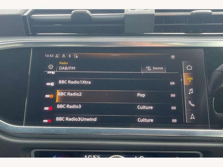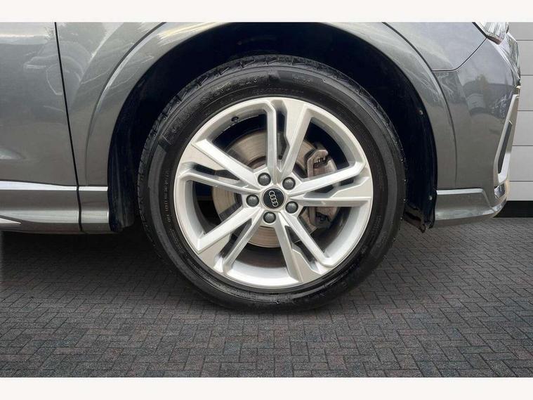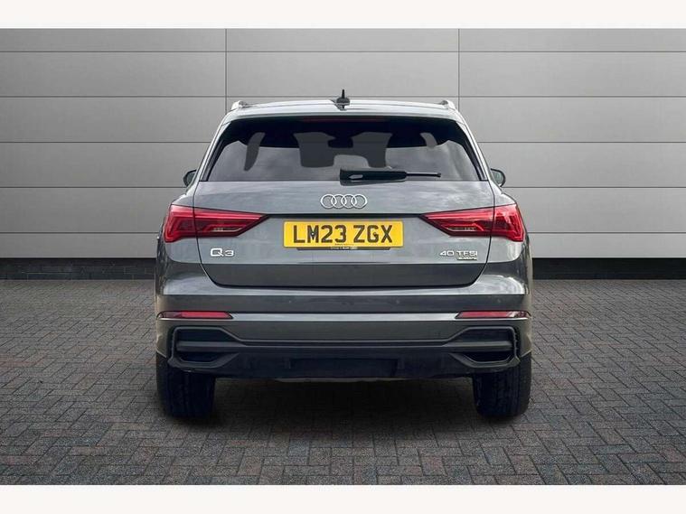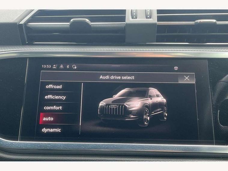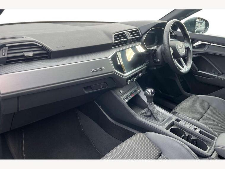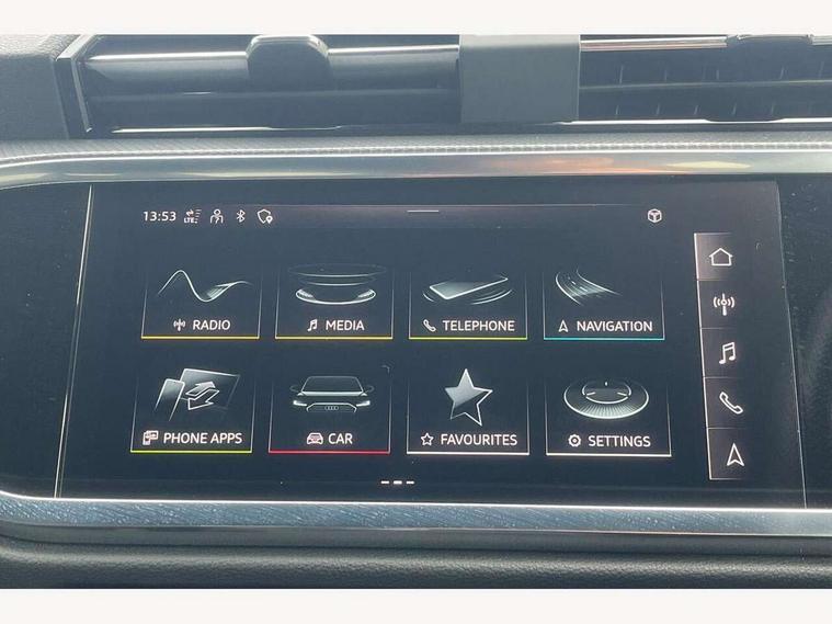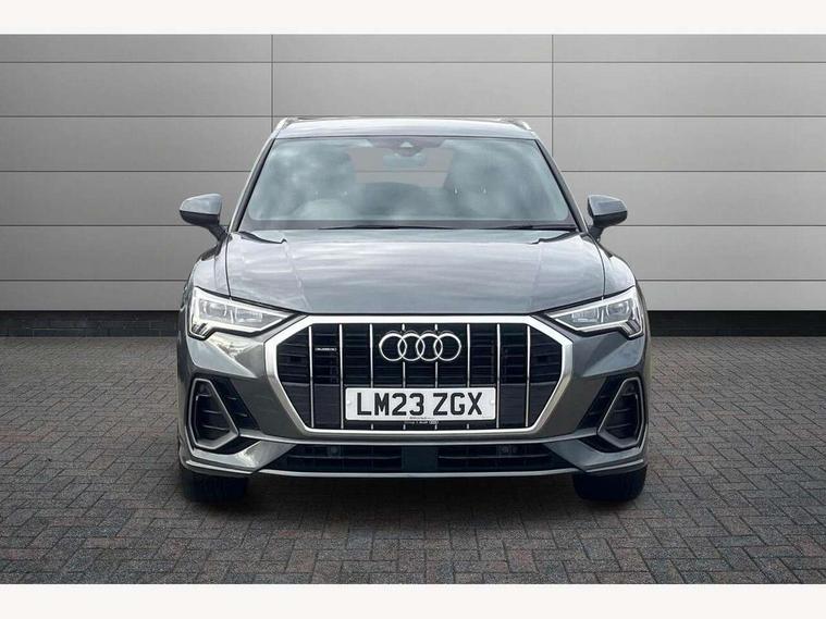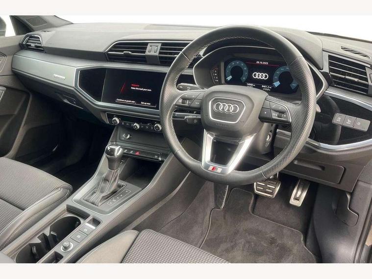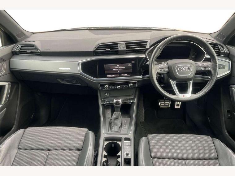 Amazon alexa Integration, Audi drive select, Audi lane departure warning, Audi Virtual Cockpit - 10.25" display, Bluetooth interface, Camera based traffic sign recognition, Legal emergency call, MMI Navigation Plus with high resolution 10.1 inch touchscreen colour display, Power operated tailgate, Progressive steering, Service interval indicator, Smartphone interface includes wireless Apple carplay/Android Auto, Start stop system with recuperation, Voice control system with natural language interaction, Sports suspension, 2 USB-C ports with charge and data functions, 6 passive loudspeakers, DAB digital radio module, Acoustic windscreen, Aluminium roof rails, Aluminium window trim, Anthracite black radiator grille, Auto dimming frameless rear view mirror, Body colour front spoiler blade, Body coloured bumpers, Electrically folding, adjustable and heated door mirrors with integrated LED side indicators and kerb view function for passenger side, Front and rear electric windows, Front fog lights, Front side air inlets in matt platinum grey, Grille vertical bars in aluminium silver/Matt, High gloss black finish B and C pillars, LED Dynamic rear indicators, LED headlights with LED daytime running lights, LED rear lights, LED third brake light, Privacy glass dark tinted rear and rear-side windows (from B-pillar backwards), Rain and light sensors, Rear diffuser grille in grained matt black, Rear diffuser strip in matt anthracite black, Rear side wing doors, Rear wiper, S line badges on front wings, S Line front and rear bumpers, Side skirt insert in matt Platinium grey, Variable front intermittent wipers, 12V socket in rear centre console, 3 seat bench in 2nd row, 3 spoke leather multifunction steering wheel features S badging and grips in perforated leather with contrast stitching, 40:20:40 folding with manual adjustment for 60:40 forwards/backwards position and backrest angle, Adjustable rear seat bench/backrest with centre armrest and cupholder, Black cloth headlining, Dual zone electronic climate control, Front and rear black floor mats with contrast stitching in rock grey, Front and rear headrests, Front and rear roof module including reading lights, Front centre armrest, Glove compartment lighting, Height and reach adjustable steering wheel, Illuminated door sill trims with S logo, ISOFIX child seat mounting for front passenger with airbag deactivation and outer rear seat including top tether attachment point for outer rear seats, Luggage compartment light, Manual front seats with height adjustment, Perforated leather gearknob, Single front passenger seat, Stainless steel luggage compartment sill finisher, Stainless steel pedals, Ambient lighting pack - Q3, Non smoking pack - Q3, 3x3 point rear seatbelts, 6 airbags - Driver, front passenger, curtain and side windows, Audi pre-sense front with pedestrain and cyclist recognition, Electrically operated child locks on rear doors, Electromechanical parking brake, Electronic stabilisation control including ABS, ASR and EDL, Front seatbelt reminder, Hill descent control, Hill hold assist, Pre sense basic, Seatbelt monitoring, Tyre pressure warning, Warning triangle and first aid kit, Anti theft alarm, Anti theft wheel bolts, Immobiliser, Remote central locking, Aluminium look interior elements, Dark matt brushed aluminium inlay, Detail dashboard around MMI touch colour display in glass look, black with surround in aluminium look, Leatherette door armrest,