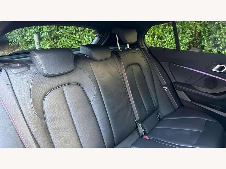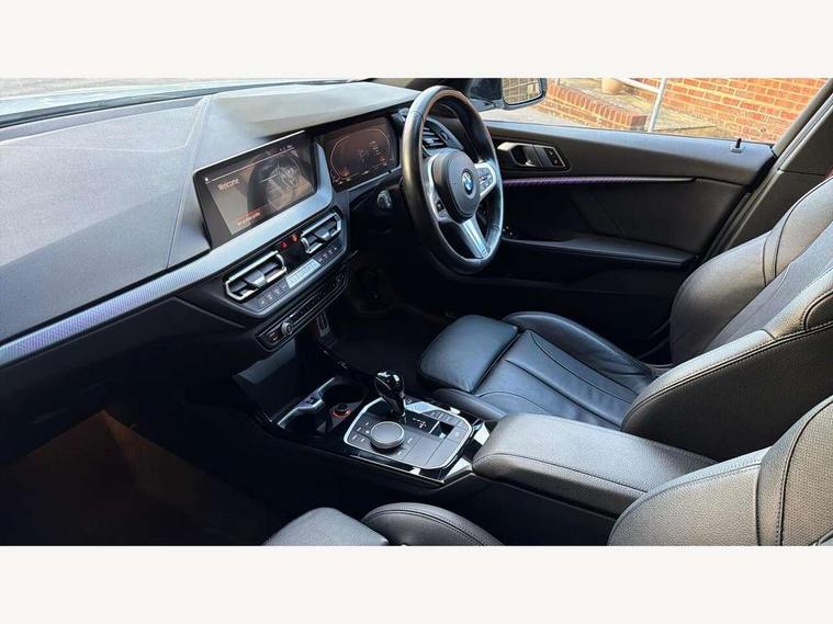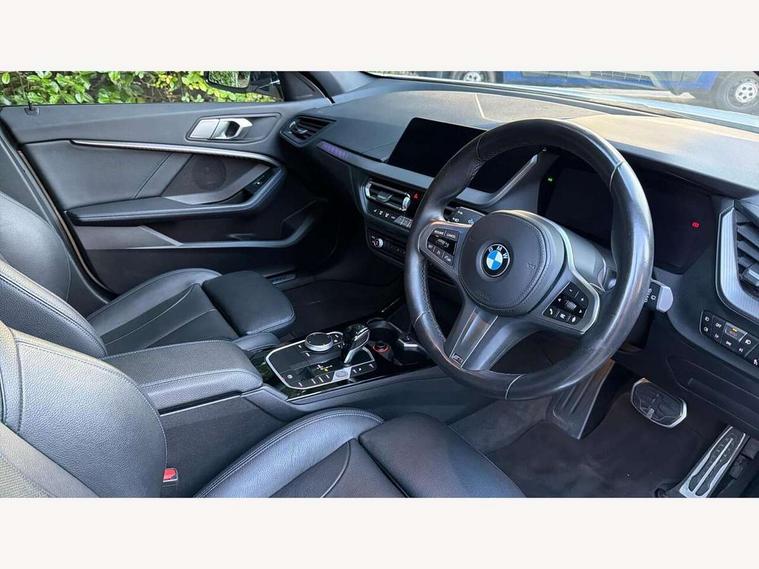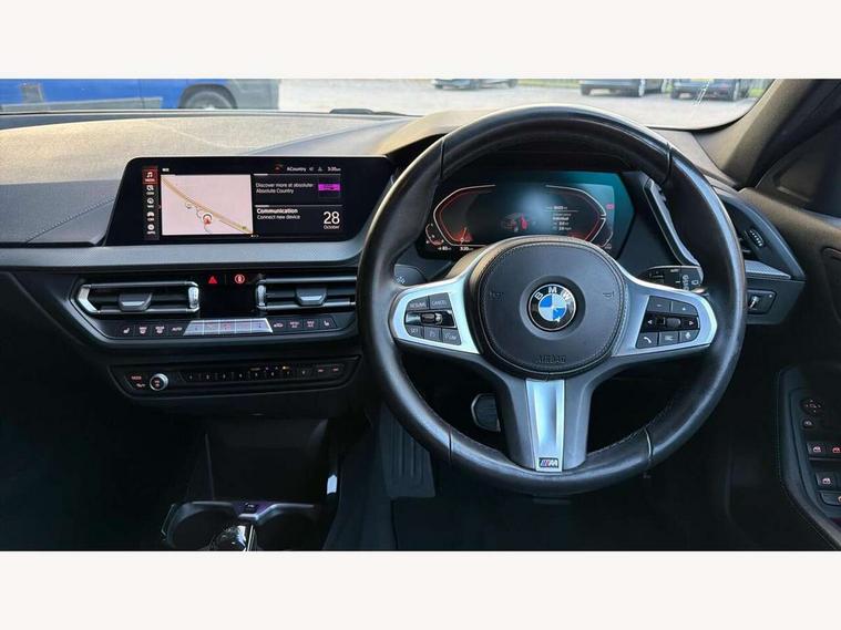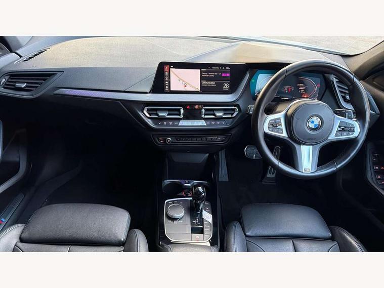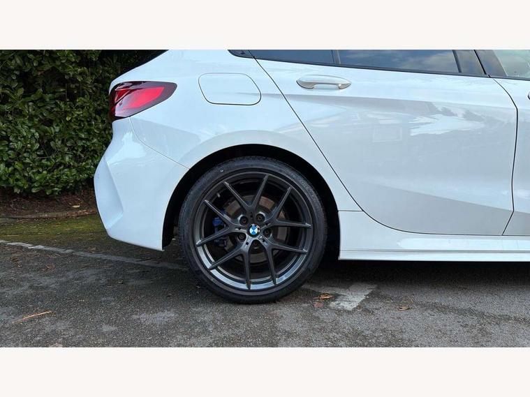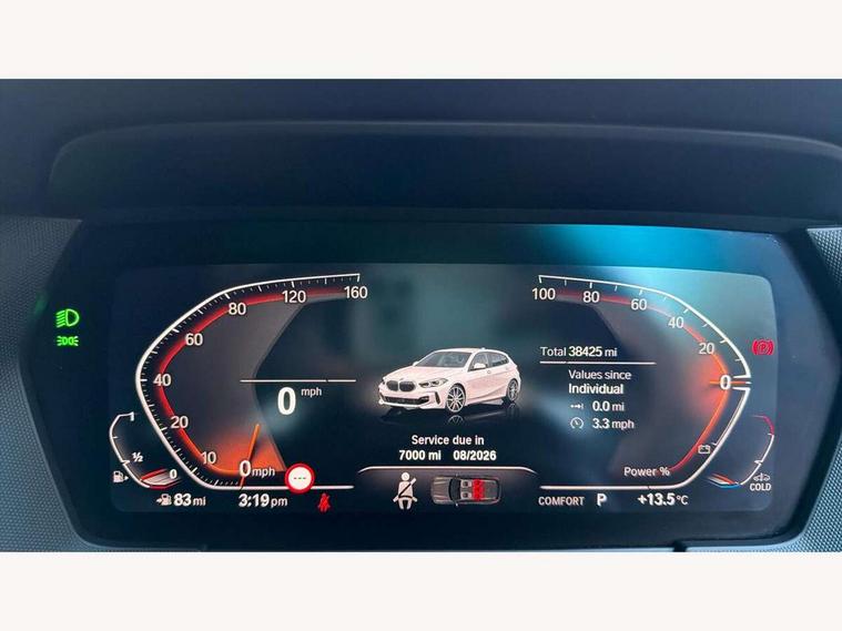 Active guard plus, Attentiveness assist, BMW Online services, BMW Teleservices, Check Control warning system for monitoring of lights and door/luggage compartment open warning, Connected eDrive Services, Eco pro mode, Integrated owners handbook, Oil sensor for level and grade, On board computer, Optimum shift indicator, Personal Profile, Pull away assistant, Speed limiter, Aluminium lightweight construction, Anti roll bar front and rear, Balancer shaft, Double VANOS, Drive Performance Control, Electronic differential lock, High precision injection, M sport suspension, Petrol Particulate Filter, VALVETRONIC engine management, Bluetooth audio streaming, DAB Digital radio, Auto dimming rear view mirror, Automatic headlight beam throw control, Automatic windscreen wipers and automatic headlight, Body colour door handles, Body colour mirror caps, Chrome 'M' logo side designation, Chrome exhaust tailpipe in single, round (Exhaust tailpipe, stainless steel - single, round), Chrome kidney grille frame with Satin Aluminium struts, Direction indicator side lights in exterior mirrors, Electric folding and anti dazzle exterior mirrors, Fading support, Follow me home headlights, Front and rear bumper system with replaceable deformation elements, Front and rear electric windows with open and close fingertip control, anti trap facility and comfort closing, Front door sill finishers in black plastic with M designation in metallic look, Green tinted heat protection glazing, Heated, electrically adjustable exterior mirror aspheric on driver side, convex on passenger side, High gloss shadowline window frame, Recess cover mirror frames and B/C pillar embelisher trim, High level third brake light, LED daytime running lights, LED eyebrow turn indicators, LED front fog lights, Lightweight engineering, Matt black air guide grilles, Model designation on right side of tailgate, Nearside reverse light in rear light cluster, Preparation for high beam assistant, Rain sensor including auto headlights activation, Rear fog lights, Rear window wiper, Shark fin antenna, Visible VIN plate, Welcome lighting, 12V power socket in centre console, 3 rear seat head restraints, 3 spoke M sports design leather steering wheel finished in nappa leather with specific M badge, Anthracite headlining, Anthracite Velour floor mats, Child seat ISOFIX attachment for two outer rear seats and front passenger seat with anchorage points, Conditioned based service, Dakota leather upholstery with perforation and contrast stitching, Driver and front passenger seat heating, Folding rear clothes hook, Four grab handles integrated in roof lining, Front and rear door pockets, Front and rear door pockets with bottle holders, Front and rear side armrest integrated into door trim, Front armrest foldable with integrated storage compartment, Front sports seats with electric side bolster adjustment, Glove compartment, Height adjustable front head restraints, Manual adjust steering wheel, Multi-function controls for steering wheel, Storage compartment in centre console, Sun visors with vanity mirrors and insert tab, Two zone automatic air conditioning, Additional interior lighting pack - 1 Series, Connected pack professional - 1 Series, Extended storage pack - 1 Series, Interior lights pack - 1 Series, Luggage compartment pack - 1 Series, M Sport exterior styling aerodynamics pack - 1 Series, 2 tone horn, 3 point seatbelts on all seats, front pyrotechnic belt tensioners, stopper and belt force limiters, rear coded belt buckles, Airbags - front driver/passenger, front & rear curtain, front side, Anti lock braking system (ABS) with brake assist, BMW emergency call, Brake drying, Braking readiness, Crash sensor activating central locking release, hazard warning lights, fuel cut off, interior lighting + activation of safety battery terminal clamp, Driver and front passenger seat belt security check, Dynamic stability control + (DSC+), Dynamic Traction Control - DTC, Electrically operated hand brake, Front and rear disc brakes, Front passenger manual airbag deactivation, Seatbelt warning, Side impact protection, Tyre pressure monitoring system, Warning triangle and first aid kit, Automatic drive away locking facility, Central locking switch for all doors, fuel filler cap and luggage compartment, Deadlocking function system to all doors, Locking wheel bolts, Remote control with integrated key with High-gloss Black inlay and M designation and 1 button for open/ close lock, window, open luggage compartment, Start/stop button with comfort go keyless engine start and auto start stop deactivation button, Thatcham Cat.1 alarm and immobiliser, Contrast stitching on instrument panel, Reduced rolling resistance tyres,