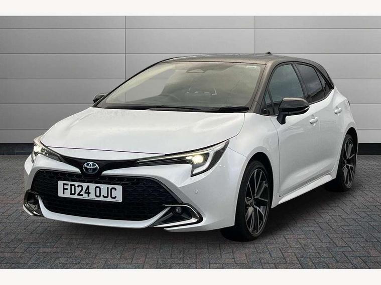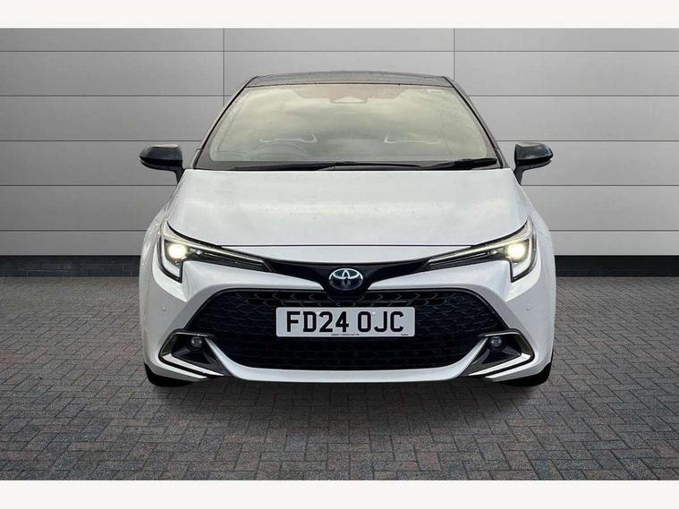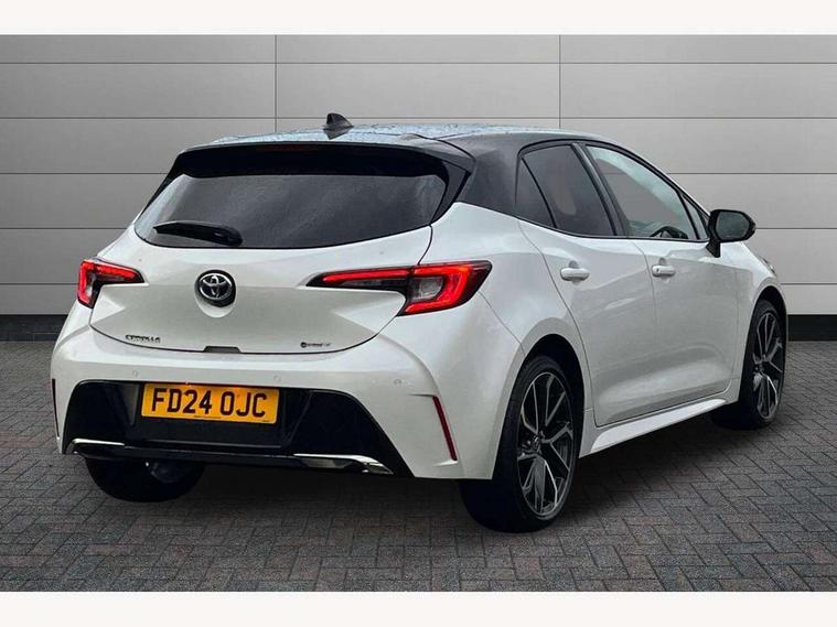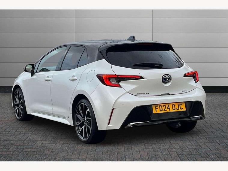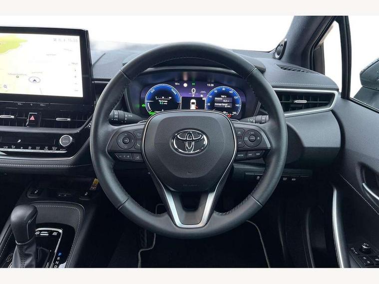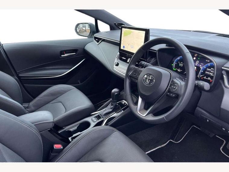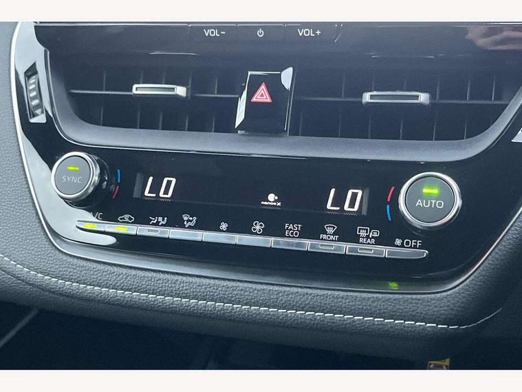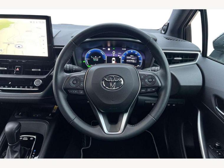 10.5" Multimedia display screen, Blind spot monitor and safe exit assist, Bluetooth telephone connectivity, Connected car functionality upgrade, tracker, remote status and e-care, Drive mode select (Eco, Normal), E-call, Electrically assisted power steering, EV drive indicator, Front and rear parking sensors with auto brake, Full Digital 12.3" TFT Digital Combimeter, Head up Display, Key reminder warning, Lane Departure Alert (LDA) switch on steering wheel, Memory on adjustable speed limiter, MyT connected services, Proactive driving assist (PDA), Rear cross traffic alert, Reversing camera, Smart entry and push button start, Smartphone integration with Apple CarPlay and wired android auto, Tailgate, Toyota remote services, Toyota smart connect navigation, Wireless charger, Gasoline particulate filter, Vehicle Stability Control (VSC), AM/FM radio, DAB Digital radio, Front USB-C in centre console, Front USB-C in dashboard, JBL Premium sound system with 8 speakers, Rear USB-C device charger, Smart voice assist/ Voice recognition, USB and Aux in connectors + 12V front outlet, Adaptive high beam system (AHS), Anti-jam protection on power windows, Auto headlight levelling system, Auto up and down function on all power windows, Automatic folding mirrors, Automatic headlights with high beam assist, Black centre and side air vents, Black metallic meshed front grille, Black toyota logo in front, Body coloured bumpers, Body coloured door mirrors, Body coloured front spoiler, Body coloured outside door handles, COROLLA alloy door scuff plates, Electrochromatic mirror, Follow me home headlights, LED daytime running lights, LED front fog lights, LED High mounted stop light, LED multi beam headlights, LED rear combi lights with LED lightguide, Noise reduction layer on windscreen, Piano black diffuser, Power adjustable heated door mirrors, Power front windows, Power rear windows, Privacy glass with UV filter, Rain sensing wipers, Rear bumper decoration with chrome plated inserts, Rear side wing doors, Rear under guard with chrome ornament, Rear window defogger, Rear window wiper, Reverse tilting door mirrors, Roof spoiler, Satin chrome insert on front air vents, Satin chrome insert on front door assist grips, Satin chrome inserts on rear passenger air vents, Shark fin antenna, Tailgate release with push button, Time adjustment on intermittent wiper, Turning signal integrated indicators in door mirrors, Unique grille pattern, Unique lower skirt, Unique side rocker with black insert, UV-filter on driver and passenger windows, 2 Shopping bag hooks in luggage compartment, 3 rear headrests, 3 seat bench in 2nd row, 3 spoke leather steering wheel with satin insert + gear knob, 4 tie down hooks in luggage compartment, 60/40 split folding rear seat, Adaptive cruise control (ACC) switch on steering wheel, Adjustable speed limiter switch on steering wheel, Audio, multimedia and telephone switches on steering wheel, Black armrest on centre console box, Black gear shift console, Boot light, Boot underfloor storage, Centre room light, Driver and front passenger personal light, Driver and passenger assist grip, Driver and passenger seatback pockets, Driver and passenger sun visor with mirror and light, Dual zone automatic air conditioning with ECO mode switch, Front and rear cup and bottle holders, Front door pockets, Front head restraints, Front passenger seat, Front sliding synthetic leather armrest, Heated seats, Illuminated entry system in room lamp, ISOFIX seat fixing (2 fixings on rear outer seats), Leather gear shift with satin chrome on gear shift console, Manual height adjustable for driver and front passenger seat, Manually tilt with sliding driver and front passenger seat, Nanoe-X air purifier, Paddle shifts, Parcel shelf, Perforated leather upholstery, Pollen filter, Power window switches with satin chrome inserts, Rear air conditioning, Rear armrest with 2 cupholders, Rear passenger coat hooks (2), Remote air conditioning, Satin chrome inside door handles, Satin chrome surround on heater control panel, Satin chrome surround on speedometer, Sliding armrest on centre console box, Slow opening glovebox with lights, Sports seats, Textile floor mats, Tilt/telescopic steering column, Voice recognition switch on steering wheel, Whiplash Injury Lessening (WIL) feature (active headrest) for seats, White ambient lighting on open tray and front cup holder, Toyota safety sense 3 pack - Corolla, 3x3 point rear seatbelts, Adjustable driver and front passenger seat belt extender to top anchor point, Anti lock braking system + Electronic brake force distribution, Brake assist function, Child locks on rear doors, Downhill Assist Control (DAC), Electronic parking brake, Emergency brake light signal (EBS), Front passenger airbag on/off switch, Front seatbelt reminder, HAC - Hill start assist control, Rear seat belt reminder, Seatbelt pretensioners and force limiters, Supplemental restraint system (SRS) 7 airbags - dual driver, dual side curtain, side impact and driver knee airbags, Traction control, Tyre pressure warning system, Acoustic vehicle alert system (AVAS), Alarm with motion sensor and immobilizer, Power passenger window lock, Remote central locking + deadlocks, Satin chrome dash trim, Soft touch texture on upper dashboard, Stitching on lower dashboard, Stitching on upper dashboard, 18" Dark grey machined face 5 double spoke alloy wheels, Tyre repair kit, Unique wheel finish with red wheel cap,