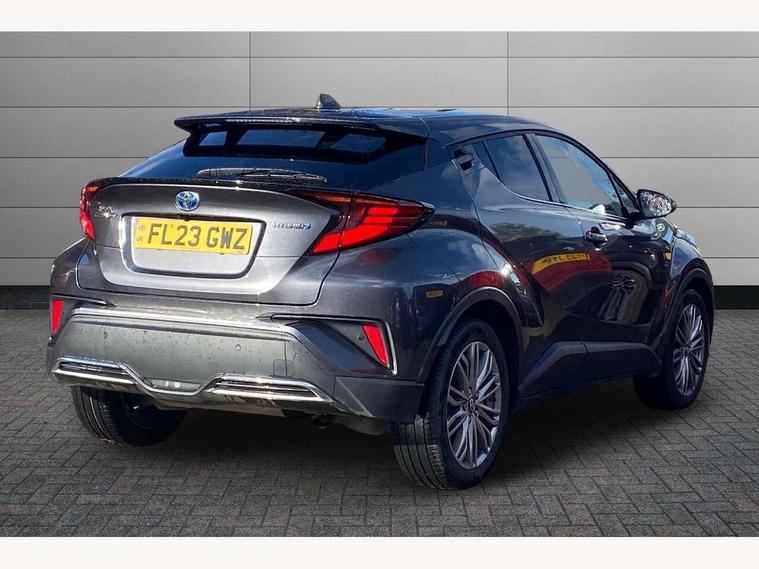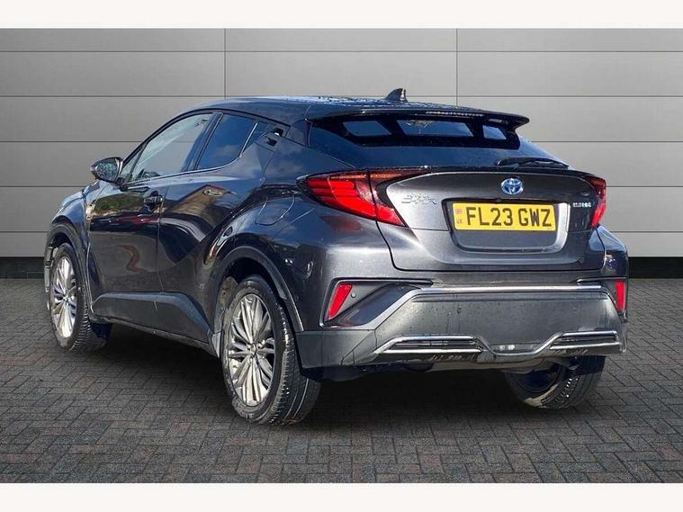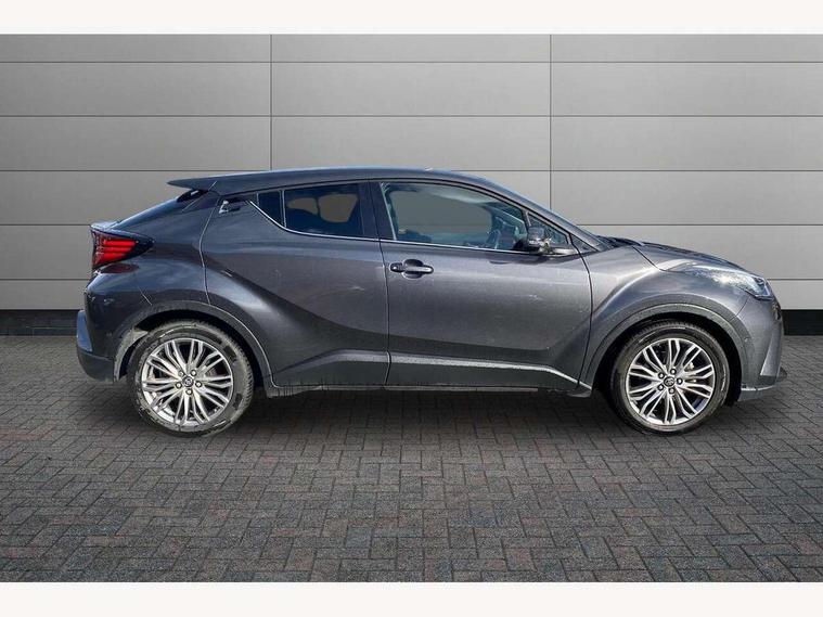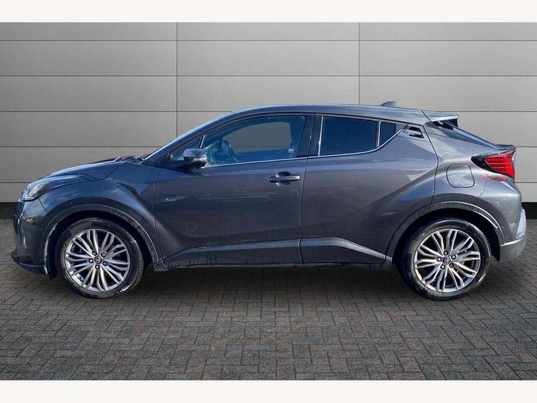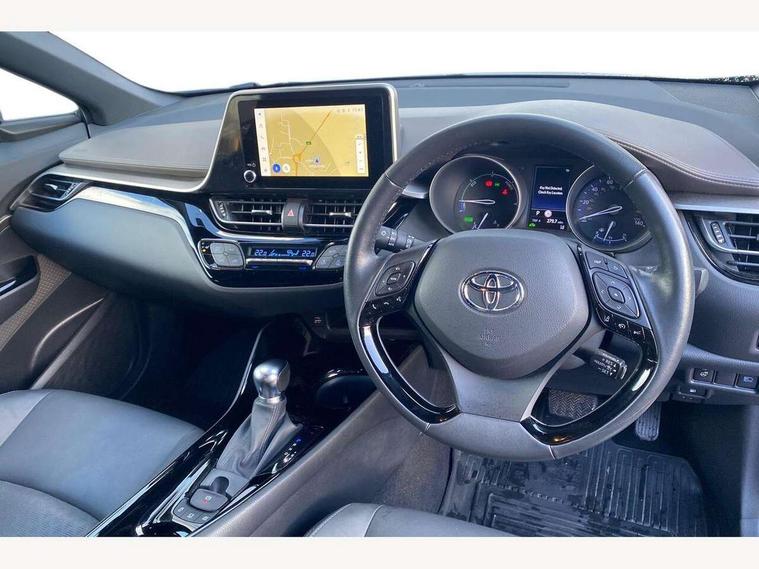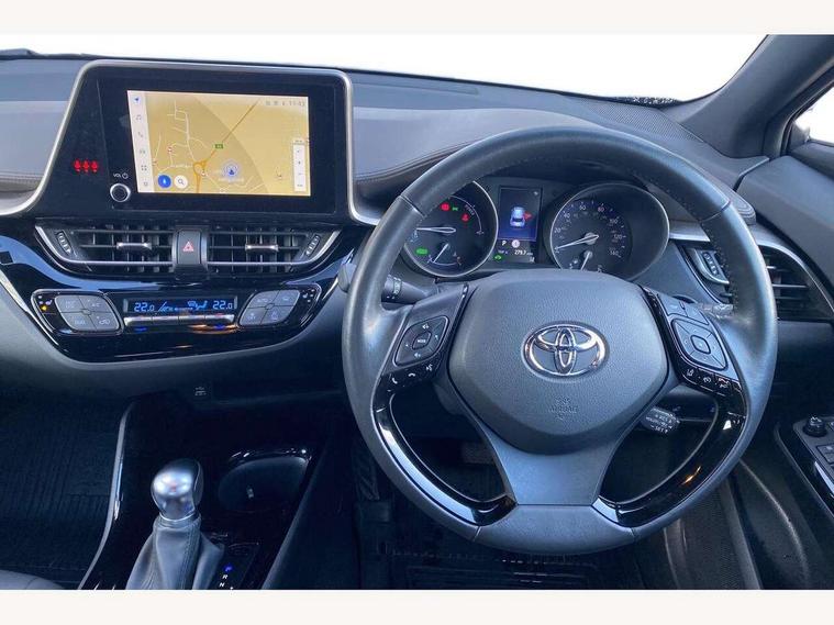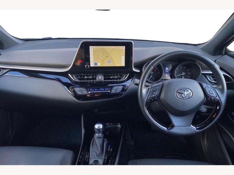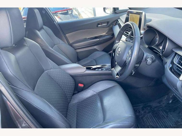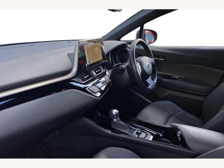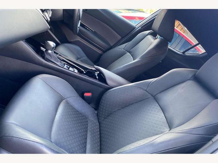 4.2" coloured TFT screen for multi-information display, Adaptive cruise control, Apple car play and Android auto, Bluetooth connectivity, E-call, Electric power steering, Hybrid system indicator, Lane departure alert with steering control, Lane trace assist, Push button tailgate release, Remote boot door release in cabin, Remote boot door release in key, Reversing camera, Road sign assist - RSA, Simple Intelligent parking assist, Smart voice assist, Touch 2 Go navigation system, Trip computer, Voice recognition, Wireless smartphone integration, Vehicle Stability Control (VSC), 6 speakers, AM/FM radio, DAB Radio (Digital Audio Broadcasting), Toyota touch 2 multimedia system with 8" display, USB connector, Wi-fi connectivity, Adaptive front light system, Adaptive LED Headlights, Anti-jam protection on power windows, Auto high beam, Auto up and down function on all power windows, Automatic headlight levelling, Automatic headlights, Automatic headlights cut-off, Black and body coloured rear bumper, Black lower front grille, Black upper front grille, Body colour door handles, Body colour door mirrors, Body colour front spoiler lip, Body coloured front bumper, Boot door release with push button, Electric heated door mirrors, Follow me home headlights, Front and rear power windows, Headlight cut off reminder, Honeycomb lower front grille, LED daytime running lights, LED fog lights, LED front light guide, LED High mounted stop light, LED rear brake lights, LED rear combination lights, Noise reduction layer on front windows and windscreen, Power adjustable door mirrors, Privacy glass, Rain sensor, Rear sequential indicators, Rear side wing doors, Rear spoiler, Rear tailgate, Rear window defogger, Rear window wiper, Shark fin antenna, UV-filter on driver and passenger windows, UV-filter on rear windows, Variable front intermittent wipers, 12v power outlet - front, 3 rear headrests, 3 seat bench in 2nd row, 3 spoke leather steering wheel, 60/40 split folding 2nd row rear seats, Adjustable rear headrests, Adjustable speed limiter switch on steering wheel, Assist grips front and centre pillar, Audio and telephone switches on steering wheel, Black front door assist grips, Blue ambient lighting on front cup holders, Blue ambient lighting on front doors, Boot light, Chrome interior door handles, Driver and front passenger personal light, Driver and front passenger Whiplash Injury Lessening seats, Driver and passenger seatback pockets, Dual zone automatic air conditioning, Floor mats, Front cupholders, Front head restraints, Front sports seats, Glovebox with internal light, Hard tonneau cover, Heated driver and front passenger seats, Heated steering wheel, Hooks for luggage holding net, Humidifying Nanoe air purifier, Illuminated entry system, Isofix attachments on outer rear seats, Leather gearshift, Leather wrapped steering wheel, Light on driver sun visor, Light on passenger sun visor, Manual telescopic steering wheel, Manual tilt steering wheel, Microphone on front personal light, Mirror on driver sun visor, Mirror on passenger sun visor, Multimedia switches on steering wheel, Pollen filter, Power adjustable lumbar support on driver seat, Power tilting cushion on driver seat, Shopping bag hooks, Single front passenger seat, Slow opening on lower glovebox, Voice recognition switch on steering wheel, Leather pack - C-HR, Tech with parking sensor pack - C-HR, 16 Disk front wheel brake, 3x3 point rear seatbelts, ABS+EBD+Brake assist, Electronic parking brake, Front and rear seatbelt reminder, Front passenger airbag on/off switch, Hill start assist control (HAC), Pre collision system with pedestrian detection, Pre-tensioners and force limiters, Rear door child safety locks, SRS Airbags - Driver + Front passenger, front side, front and rear curtain and driver's knee airbags, Toyota safety sense, Tyre pressure monitoring system, Tyre pressure warning system, Acoustic vehicle alert system (AVAS), Glass-breaking alarm sensors, Immobiliser, Intrusion alarm, Intrusion sensor, Motion sensor alarm, Power door locks, Power passenger window lock, Remote central locking, Black lower dashboard, Dark brown upper dashboard, Piano black console, Silver deco line on upper dashboard, Tyre repair kit,