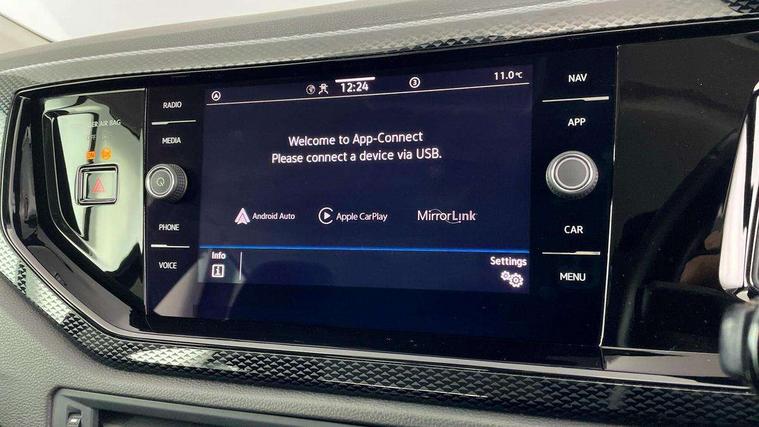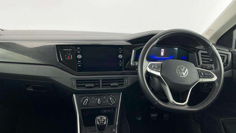 Adaptive cruise control without follow-to-stop and speed limiter, Bluetooth mobile phone interface, Driver alert system, Emergency call service, Front assist system, Power assisted speed sensitive steering, Preparation for We connect and We connect plus, Speedo and rev counter, electronic odometer, trip, service interval display and fuel gauge, Standard rear axle, Travel Assist - Lane keeping system and traffic jam assist, Travel assist including emergency assist, Trip computer, Warning signal and warning light for front and rear seatbelts not fastened, Washer fluid level indicator, Wireless app connect, Front wheel drive, Rear shock absorpion, Start-stop system with battery regeneration (recuperation - energy recovery during braking), DAB Digital radio, Diversity antenna for FM reception, Automatic dimming interior rear view mirror, Body colour bumpers, Body colour door handles, Body colour door mirrors, Electric front windows, Heat insulating darkened glass in side and rear windows, Heat insulating glass windscreen, Power folding adjustable/heated exterior mirrors and front passenger exterior mirror lowering function, Rain sensor, Rear electric windows, Rear fog light, Rear side wing doors, Rear windscreen washer and wiper with interval delay, Third brake light, 12V power socket in centre console, 2 front and 2 rear reading lights, 2 USB-C ports in the front, 2 USB-C charging sockets on the center console in the rear, 3 rear head restraints, 60/40 split folding rear seat and rear seat bench not split, Ceramique headliner, Chrome plated radiator grille inserts, air vent surrounds and light switch surrounds, Door and side trim panel, Driver and front passenger seat height adjustment, Driver/passenger sunvisors with illuminated vanity mirrors, Front centre armrest, Front seat backrest storage pockets, Front standard seats, Handbrake lever handle in leather, Hartley/Thomas cloth upholstery, Isofix child seat preparation easy-fit (for two outer rear seats, and front passenger seat) compatible with I-size, Leather trimmed gear knob, Luggage compartment cover, Luggage compartment floor, Luggage compartment lighting, Multifunction steering wheel, Single front passenger seat, Standard pedal cluster, Light and vision pack - Polo, 3 point height adj front seatbelts + pretensioners, 3x3 point rear seatbelts, ABS, Driver and front passenger airbag with front passenger airbag deactivation, Drivers and front passengers safety optimised head restraints, ESC (Electronic stability control) + EDL (Electronic Differntial lock) and ASR (Traction control), Extended and predictive pedestrian/ cyclist protection, Front curtain and side airbags with center airbag, Front disc brakes, Hill hold control, Manual child lock in rear doors, Rear drum brakes, Single tone horn, Tyre pressure loss indicator, Alarm with interior protection, Anti-theft alarm system with interior monitoring, backup horn, and towing protection, Anti-theft wheel bolts, Electronic engine immobiliser, Lava stone black gloss/matt decorative inserts in dash and front door panels, Low rolling resistance tyres,