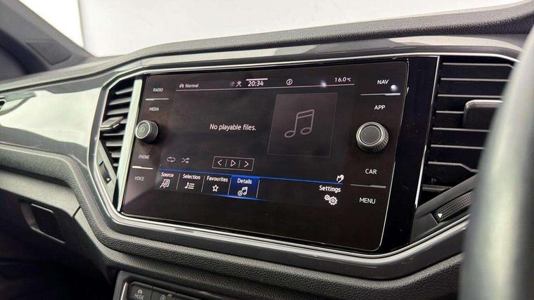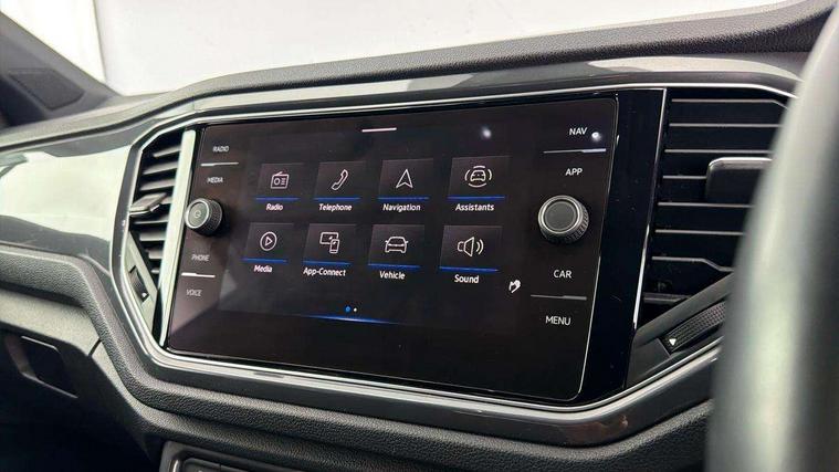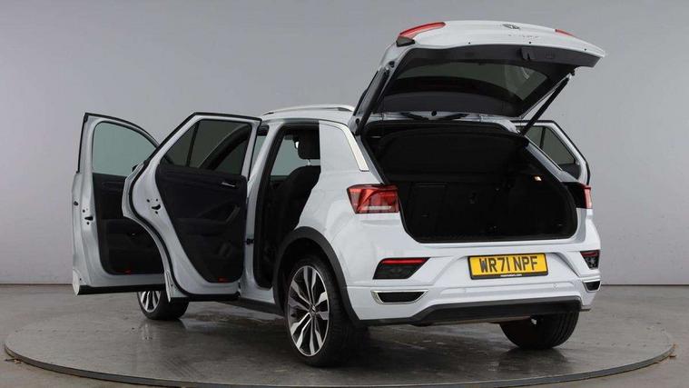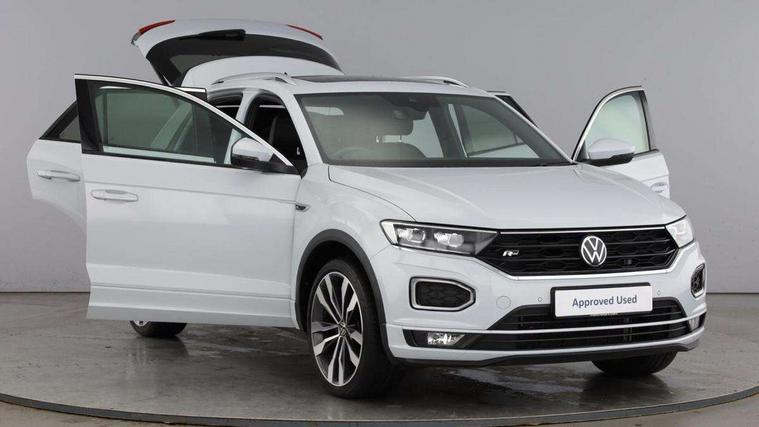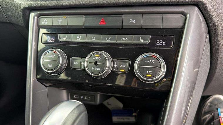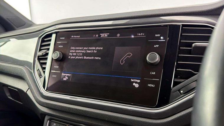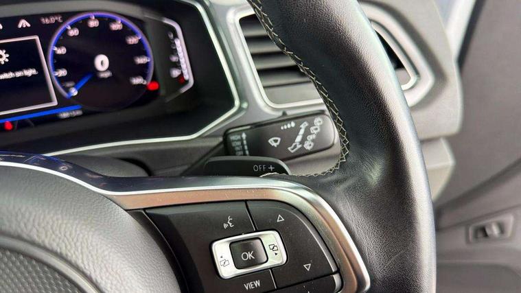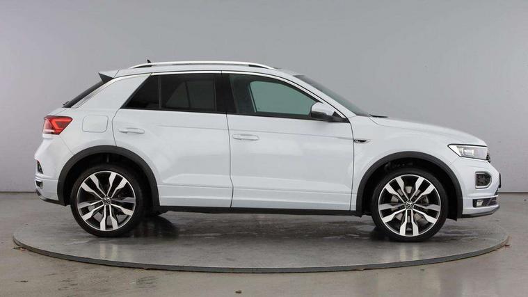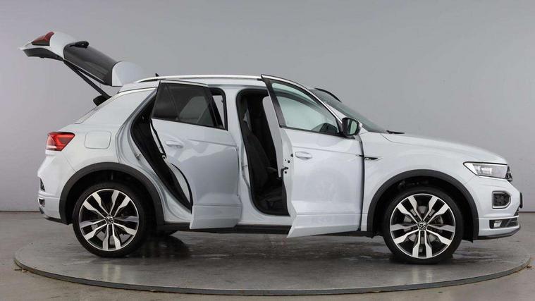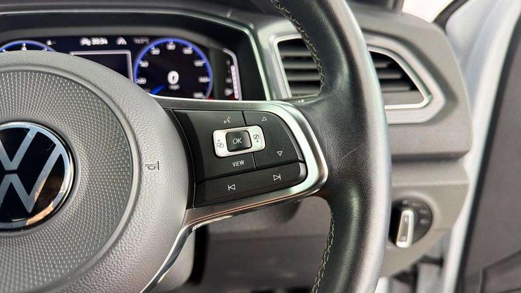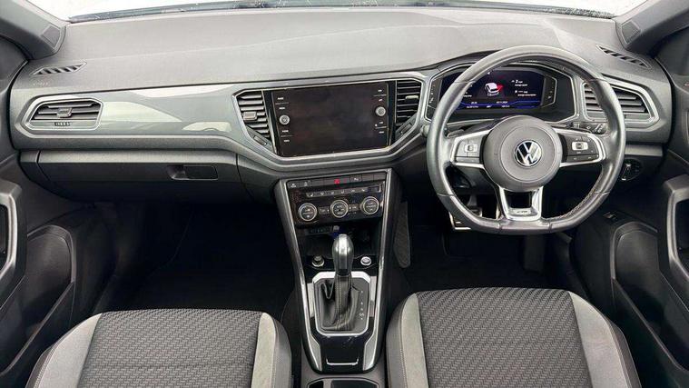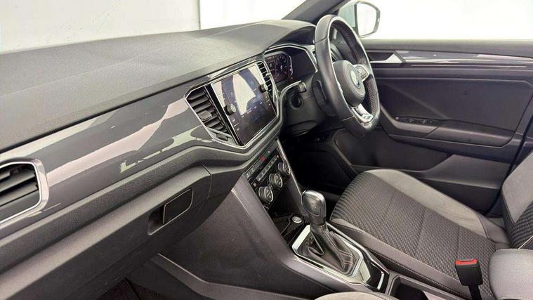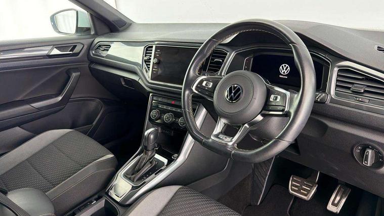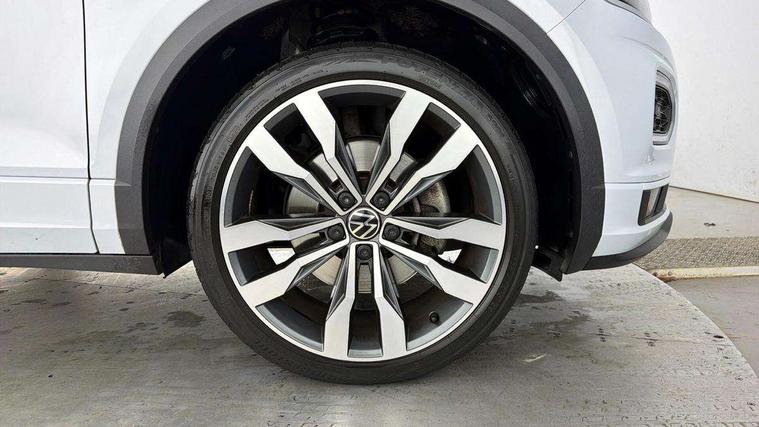 'Lights On' Reminder warning buzzer, Adaptive cruise control, Bluetooth telephone and audio connection for compatible devices, Car information display, Digital Cockpit Pro - Active info display, Driver alert system with audible and visual fatigue detection system, Driver tips and journey analysis, Emergency call service, Lane assist with warning text instrument cluster, Modified key software - reduce switch off time for key status change to Long no motion, Multifunction camera, Multifunction computer with visual gear change recommendation for fuel consumption, Navigation system discover media including streaming and internet, Service interval indicator, Think blue trainer driver tips and journey analysis, Traffic sign recognition, Voice activation, Warning sound and light for front seatbelts unfastened, Wireless app connect for apple carPlay, Battery regeneration during braking, Rear shock absorption for sports version, Start/stop function with battery regeneration, DAB Digital radio, Disk brakes in front, Diversity antenna for FM reception, Music playback - MP3, WMA and AAC files, Premium USB cable in choice of either Apple or Android smartphone compatibility, SD card slot, Simultaneous pairing of 2 compatible mobile devices, SMS functionality - read, compose and send SMS messages using touch-screen display, Storage compartment with longitudinal and height adjustable in armrest and two rear air vents, Three route options - Fast, Short, Eco, Title and cover art display, USB-C Interface and USB charging socket, Auto dimming interior rear view mirror, Automatic coming/leaving home lighting function and daytime running lights, Automatic hazard lights activation under emergency braking, Black grained lower door protectors, Body colored door lower parts, Body colour door handles, Body colour rear roof spoiler, Chrome effect left and right trapezoid exhaust tailpipe fascia surround, Chrome plated moldings, Chrome trim on upper and lower radiator grille, Dusk sensor, Dynamic headlight range control with self adjusting whilst driving, Electrically foldable, adjustable and heated door mirrors with puddle lights and reverse activated kerb-view adjustment on passenger's door mirror, External USB type C socket and charging sockets, Front and rear electric windows, Front fog lights with static cornering function, Front windscreen wiper with intermittent wipe and 4 position delay, Fully galvanised body, Heated rear window, Heated windscreen washer jets, High level 3rd brake light, LED darkened rear light clusters, LED headlamps with automatic range adjustment and unique signature LED separate daytime running lights, LED rear number plate lights, LED tail lamp rear comination lamps, Privacy glass, R-Line design body coloured bumpers, Rain sensor, Rear tinted glass from B-pillar backwards approx 65% tinted, Rear wash/wipe with intermittent wipe setting, Silver anodised roof rails, Volkswagen roundel, 12V socket in centre console storage area, 3 rear head restraints, 4 load lashing points in luggage compartment, Aluminium pedals, Black roof lining and sun visors, Branded points of interest, Carbon flag cloth upholstery, Chrome plated radiator grille inserts, air vent surrounds and light switch surrounds, Climate control - 2 zone electronic air conditioning with automatic air recirculation and allergy filter, Door and side trim panel, Door and side trim panel in foam film, insert in leatherette, Drawer under drivers seat, Front + rear carpet mats, Front centre armrest, Front cupholders x 2, Front seat back storage pockets, Front sports seats with R-Line logo on seat backrest, Glovebox, Heated front seats, Height adjustable front seats, Height/reach adjust steering wheel, Instrument lighting, white adjustable panel illumination, Interior light delay, Interior light in footwell, Isofix easy fit child seat preparation for 2 outer rear seats, Leather gearshift knob, Leather multi function sport steering wheel with gear change selection via paddle shift on steering wheel, LED interior light with switch off delay/dimmer and 2 front/rear LED reading lights, Load through provision with single cup holder when folded down, Luggage compartment cover, removable, Luggage compartment lighting, R Line badge, Scuff plates in door apertures, Split folding rear seat backrests with centre armrest, Stainless steel pedals, Storage compartment in left and right luggage area, Storage compartment in rear doors, Storage compartments in driver and front passenger doors, Sunvisors with illuminated vanity mirrors, Unique R Line door sill protectors, White ambient lighting, R line styling pack - T-Roc, Winter pack - T-Roc, 3 rear three point seatbelts, ABS, Curtain airbags, Driver and front passenger safety-optimised head restraints, Drivers and front passengers airbags with passengers deactivation switch, Drivers seatbelt reminder, Electronic parking brake with auto hold, Electronic stability control (ESC) includes ASR, EDL, EDTC and trailer stabilisation function, Front assist with city emergency braking and pedestrian monitoring, Front seat side impact airbags, Hill start assist, Predictive pedestrian protection, Rigid safety cell with front and rear crumple zones, Single tone horn, Three point height adjust front seatbelts + pretensioners, Tyre pressure loss indicator, Ventilated front and rear disc brakes, Volkswagen roadside assistance, Alarm with remote central locking and interior protection, Electronic engine immobiliser, Remote central locking with SAFELOCK, radio remote control with 2 remote control folding keys, Shadow grey decorative inserts in dash, centre console and door panel, 19" Suzuka alloy wheels with low rolling resistance tyres and anti wheel bolts,