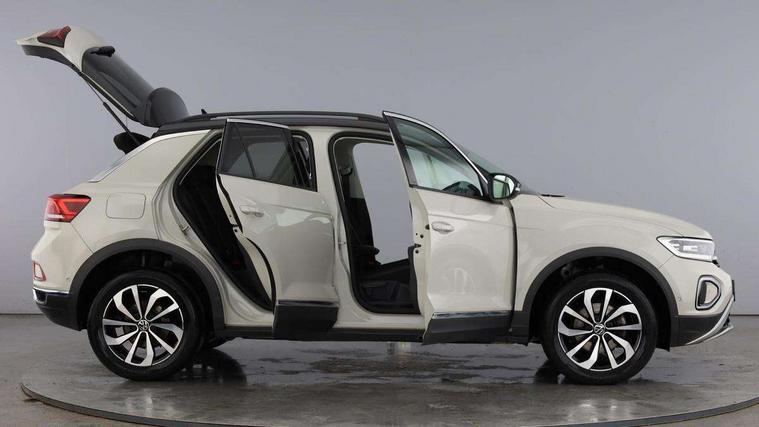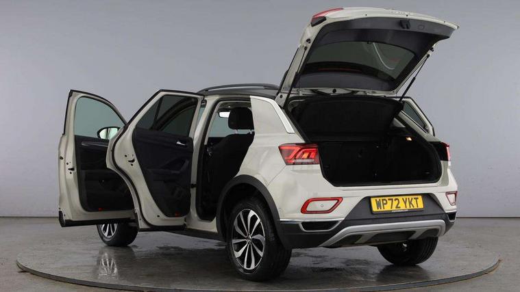 10.25" Digital cockpit pro, Bluetooth mobile phone interface, Driver alert system with fatigue detection, Driver tips and journey analysis, Emergency call service, Lane keeping system Lane Assist, Modified key software - reduce switch off time for key status change to Long no motion, Online services, Park assist including front and rear parking sensors, Service interval indicator, Tailgate/trunk lid release from outside, Think blue trainer driver tips and journey analysis, Warning sound and light for front seatbelts unfastened, Wireless app connect, Battery regeneration during braking, Start/stop function with battery regeneration, Diversity antenna for FM reception, Front and rear 6 speakers, Music playback - MP3, WMA and AAC files, Premium USB cable in choice of either Apple or Android smartphone compatibility, SD card slot, Simultaneous pairing of 2 compatible mobile devices, Title and cover art display, We Connect and We Connect Plus functionality, 3rd brake light, Auto dimming interior rear view mirror, Automatic hazard lights activation under emergency braking, Automatic headlight control with LED separate daytime running lights with coming/leaving home function, Body colour sports bumpers with silver metallic underbody fascia, Dynamic headlight range control with self adjusting whilst driving, Extended roof spoiler, Exterior mirrors aspherical on driver side, convex on front passenger side, External USB type C socket and charging sockets, Front windscreen wiper with intermittent wipe and 4 position delay, Heated rear window, LED Plus headlamps, LED rear combination lamps, LED rear number plate lights, LED tail lamp rear comination lamps, Light mode for poor weather, rain, fog or snow, Power windows with comfort operation and circuit breaker, Rain sensor, Rear exhaust tailpipe, Rear fog light on one side and reversing lights on both sides, Rear side wing doors, Rear wash/wipe with intermittent wipe setting, Remote electrically foldable door mirrors, puddle lights and reverse activated passenger's door mirror, 12V power socket in centre console, 3 rear head restraints, 3 seat bench in 2nd row, 4 load lashing points in luggage compartment, Air care climatronic air conditoning system with active combination filter and 2-zone temperature control, Chrome plated radiator grille inserts, air vent surrounds and light switch surrounds, Door and side trim panel with leatherette insert, Drawer under drivers seat, Front + rear carpet mats, Front centre armrest, Front comfort sports seats, Front cupholders x 2, Front footwell illumination, Instrument lighting, white adjustable panel illumination, Interior ambient lighting and surround lighting, Interior light delay, Isofix child seat preparation, Leather gearshift handle, LED interior light with switch off delay/dimmer and 2 front/rear LED reading lights, Load-through provision with cup holder when folded down ('Unsplit rear seat bench, split folding backrest, with centre armrest), Luggage compartment lighting, Non-folding front passenger seat backrest, Single front passenger seat, Storage compartment in left and right luggage area, Storage compartment in rear doors, Storage compartments in driver and front passenger doors, Sunvisors with illuminated vanity mirrors, Variable boot floor, height adjustable and removable, Driver assistance pack without proactive passenger protection - T-Roc, 3 point height adj front seatbelts + pretensioners, 3 point seatbelts in outer rear with ECE label, ABS, Child locks on rear doors, Driver and front passenger airbag with front passenger airbag deactivation, Driver and front passenger safety-optimised head restraints, Drivers seatbelt reminder, Electronic parking brake, Electronic Stability Control (ESC) inc EDL (Electronic Differential Lock) and ASR (Traction Control), Front and rear passengers curtain airbag system including front side airbags, Front assist with city emergency braking and pedestrian monitoring, Front seat side impact airbags, Predictive pedestrian protection, Rear disc brakes, Single tone horn, Tyre pressure loss indicator, Volkswagen roadside assistance, Alarm with interior protection, Anti-theft alarm system with interior monitoring, backup horn, and towing protection, Remote central locking with SAFELOCK, radio remote control with 2 remote control folding keys, Trims for alloy wheels,
