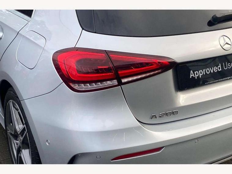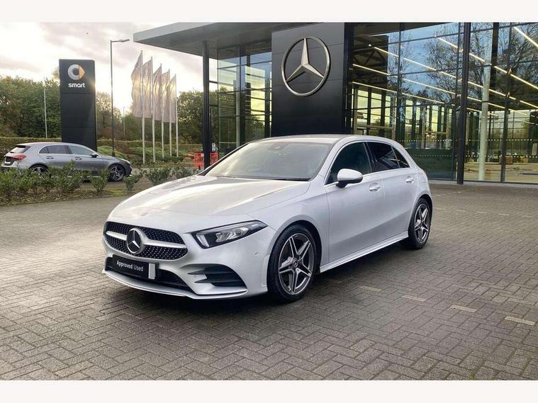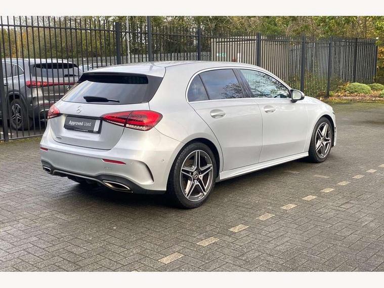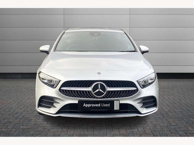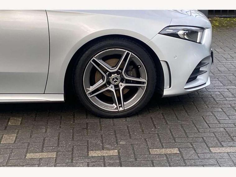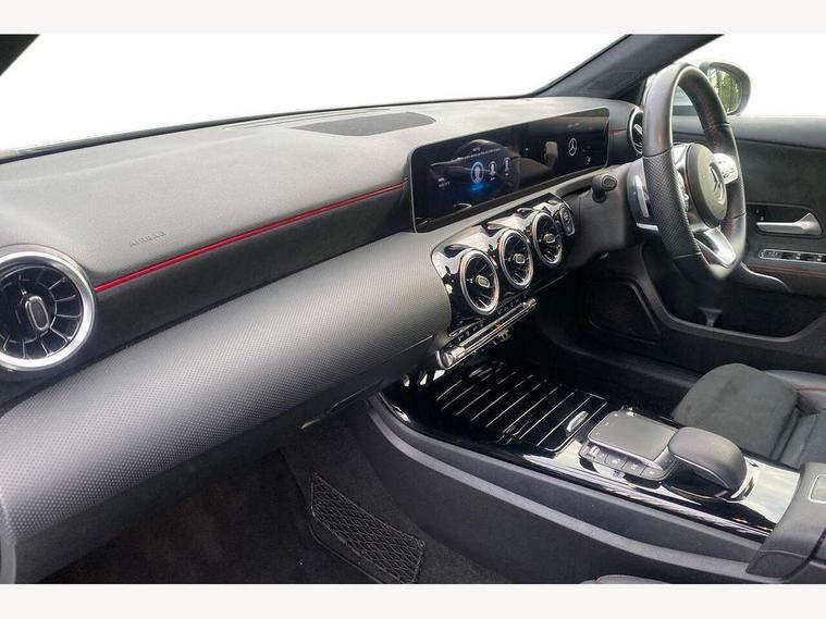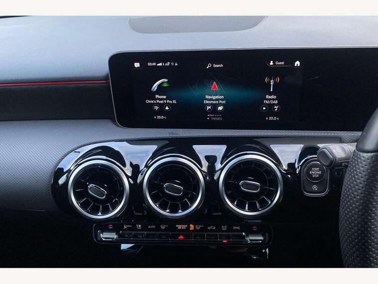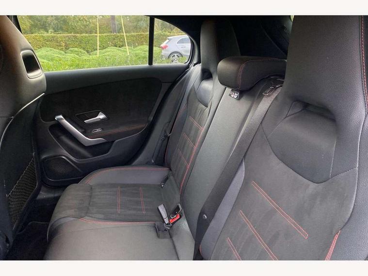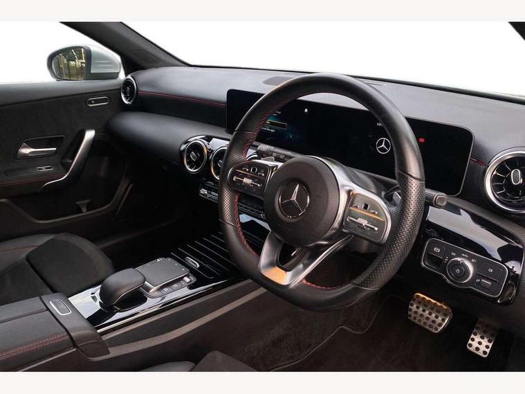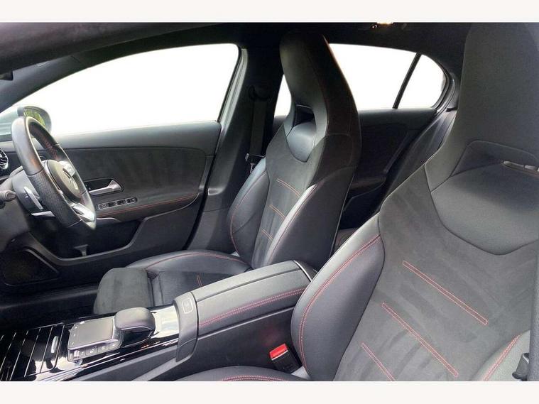10.25" media display, 180 degree rear view camera with parking guidelines, 7" colour screen in instrument panel, Active lane keep assist, Active park assist with parktronic system including front and rear parking sensors, Attention assist, Brake pad wear indicator warning light, Car wash mode, Cruise control + speed limiter, Direct steering, Dual bluetooth interfaces, DYNAMIC SELECT with a choice of driving modes (ECO, Comfort, Sport and Individual), ECO start/stop function, Fluid level warning indicator for fuel, oil, coolant and washer fluid, Hard-disk navigation, Hey Mercedes Voice activation, Lamp failure indicator, Mercedes me connect including emergency call system, accident recovery, breakdown and maintenance management, Outside temperature gauge, Owners manual in English, Pre-installation for private car sharing, Pre-installation for Vehicle Monitoring, Pre-installation for Vehicle Setup, Preinstallation for Mercedes Benz link, Service indicator (ASSYST), Smartphone integration with Apple CarPlay and Android auto, Speed sensitive power steering, Trip computer, Wireless charging, Lowered comfort suspension, Rear axle torsion beam, 2 USB ports (type C) in rear stowage compartment and one in front of center console, 6 speakers, DAB Digital radio, MBUX multimedia system with DAB digital radio and touchpad including satellite navigation, Mercedes-Benz sound system - 100W, 4 Electric Front and Rear windows, Adaptive brake lights, AMG bodystyling - Front apron with splitter in chrome, rear apron with chrome trim and chrome visible trim elements in tailpipe, Black weather strip, Body colour bumpers, Body colour door handles, Body colour side skirt, Body coloured door mirrors, Chrome beltline trim, Diamond radiator grille with chrome pins and silver louvre + chrome insert, Electric adjustable and heated door mirrors with integrated LED side indicators, Exhaust system - Twin visible tailpipes in polished stainless steel, Headlamp assist automatic headlamp activation, Heated glass rear windscreen + timer control, LED high performance headlamps with integrated LED daytime running lights, LED tail lamp, LED third brake light, Privacy glass, Radio aerial, Rain sensing windscreen wipers with two sensitivity settings, Rear fog lights, Rear wiper, Window line trim strip in chrome, 3 Spoke flat bottom leather multi function steering wheel with perforated leather in grip area, 40:20:40 split folding rear seats, Artico man-made leather/Microfibre Dinamica upholstery with red contrast stitching, Auto Mercedes-Benz child seat recognition sensor, Black air vents with surround in silver chrome, Black roof lining, Brushed stainless steel sports pedals with rubber studs, Controller on centre console with chrome surround, Floor mats with stitched edging and AMG lettering, Front centre armrest with storage compartment, Front door sills with Mercedes Benz lettering, Front seat backs luggage nets, Front seat cushion length adjustment, Galvanished gear shift paddles on steering wheel, Heated front seats, Height/reach adjustable steering column, Interior mirror with reading lamps in black and frameless, Manual height adjustable front seats, Rear head restraints, Seat occupancy sensor for front passenger seat, Sports seats with integrated headrests, Stowage compartment in centre console with retractable cover, Sunvisors with illuminated vanity mirrors, Touchpad on center console, Twin front cupholders, Two zone thermotronic luxury automatic climate control, Light and sight pack - A Class, Mirror package - A Class, Seat comfort pack - A Class, 3 rear 3 point seatbelts, ABS with Brake Assist, Active bonnet, Active brake assist includes forward collision warning system with autonomous braking, Adaptive brake assist with hold function and hill start assist, Black seatbelts, Childproof locks manually operated for rear doors and electrically operated for rear power windows, Crash responsive emergency lighting, Driver and passenger head and side airbags, Drivers knee airbag, Dual stage driver/passenger airbags, Electronic parking brake, ESP curve dynamic assist, ESP with ASR, Front and rear seatbelt reminder, Front brake callipers with Mercedes Benz lettering, ISOFIX and top tether child seat fixing points in two outer rear seats, Tyre pressure monitoring system, Warning triangle and first aid kit, Window airbags, Alarm system/interior protection/immobiliser, Keyless Go, Remote central locking and crash sensor with emergency opening function, Urban guard vehicle protection system with immobiliser and interior protection, Dinamica microfibre trim in black, 18" AMG 5 twin spoke light alloy wheels in titanium grey with highsheen finish, Summer tyres, Tirefit sealant kit,