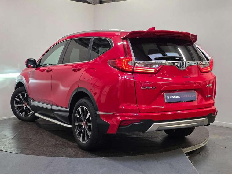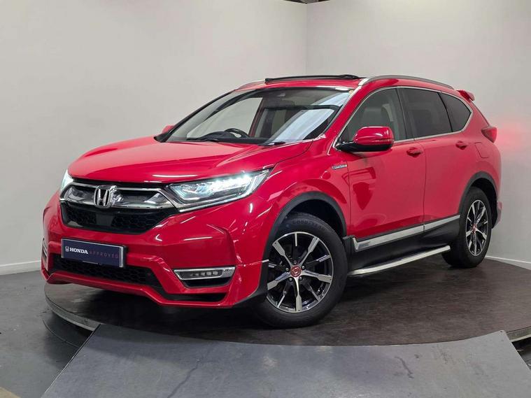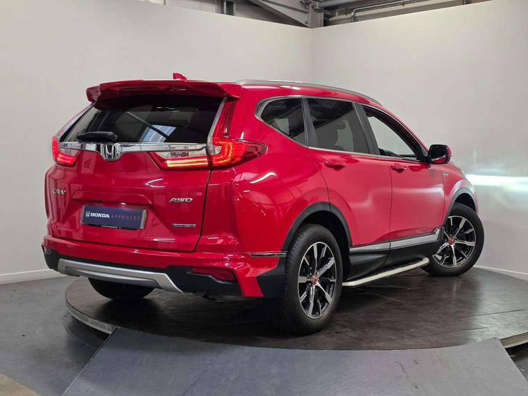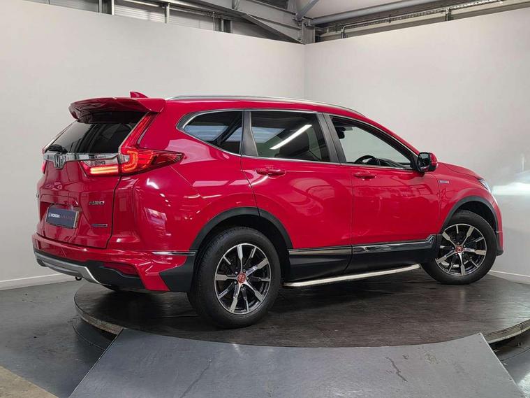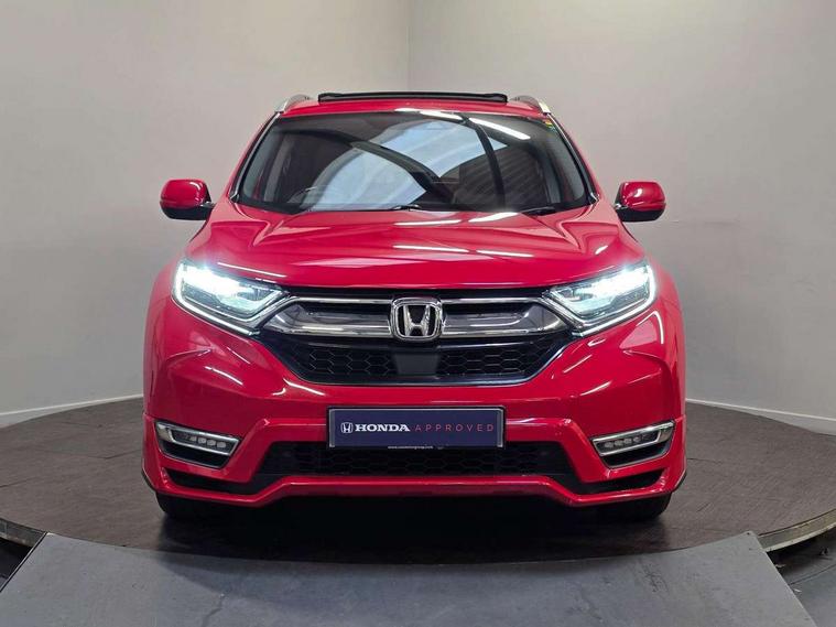 Adaptive cruise control, Agile handling assist, BLIS (Blind Spot Information System) with dual power heated blind spot mirrors, Bluetooth hands free telephone connection, Economy mode, Electric power steering, Emergency stop signalling system, Forward collision warning, Front and rear parking sensors, Hands free tailgate, Head up Display, Honda CONNECT with GARMIN Navigation + 7" touchscreen, DAB radio, Apple CarPlay, Android Auto, Aha app integration and internet browsing, Intelligent multi info display, Lane departure warning system, Lane keep assist system, Low speed following, Rear view camera, Road departure mitigation, Speed limiter, Traffic sign recognition, Vehicle stability assist, 2 USB sockets in rear, 2x USB sockets in front, 8 speakers, DAB Digital radio, Steering wheel mounted controls, Subwoofer, Aspheric door mirrors, Auto dimming rear view mirror, Automatic headlights with dusk sensor, Body colour bumpers, Body colour door handles, Cornering light, Door mirrors tilt when reversing, Electric front windows/one touch facility, Electric rear windows + one touch facility, Electrically adjustable and heated door mirrors, Electrically retractable door mirrors, Front windscreen de-icer, High beam assist, LED daytime running lights, LED front fog lights, LED Headlights, LED rear lights, Panoramic opening glass sunroof, Rain sensor, Rear privacy glass, Rear wiper, Roof rails, Shark fin roof aerial, Welcome home function, 60/40 split folding rear seat, 8 way electrically adjustable drivers seat + mirror memory, Accessory sockets, Ambient interior lighting, Ambient light in roof, AWD emblem rear, Cargo hooks, Courtesy lights, Driver's electric adjustable lumbar support, Driver/passenger front seatback pockets, Driver/passenger sunvisors with illuminated vanity mirrors, Dual zone automatic climate control, Electric lumbar adjustment on passenger's seat, Footwell ambient lighting, Front centre armrest, Front map lights, Front passenger seat height adjust, Heated front seats, Heated rear seats, Heated steering wheel, Hybrid emblem, Illuminated glovebox, Instrument panel with garnish wood film, Isofix child seat preparation, Leather steering wheel, Leather upholstery, Paddle shift controls, Rear air vents, Rear centre armrest, Rear headrests, Rear reading lights, Silver interior door handles, Sunglasses holder with mirror, Tilt/telescopic adjustable steering wheel, Tonneau cover, Trunk light, 5 x 3 point seatbelts, ABS/EBD, Anti-whiplash front headrests, Brake assist function, Collision mitigation braking system, Deflation detection system, Driver airbag, Electronic parking brake with auto hold, Front and rear curtain airbags, Front side airbags, Hill start assist, Passenger airbag deactivate switch, Honda super locks, Immobiliser, Remote keyless entry, Security alarm, Ultrasonic sensor and tilt sensor, Tyre repair kit,