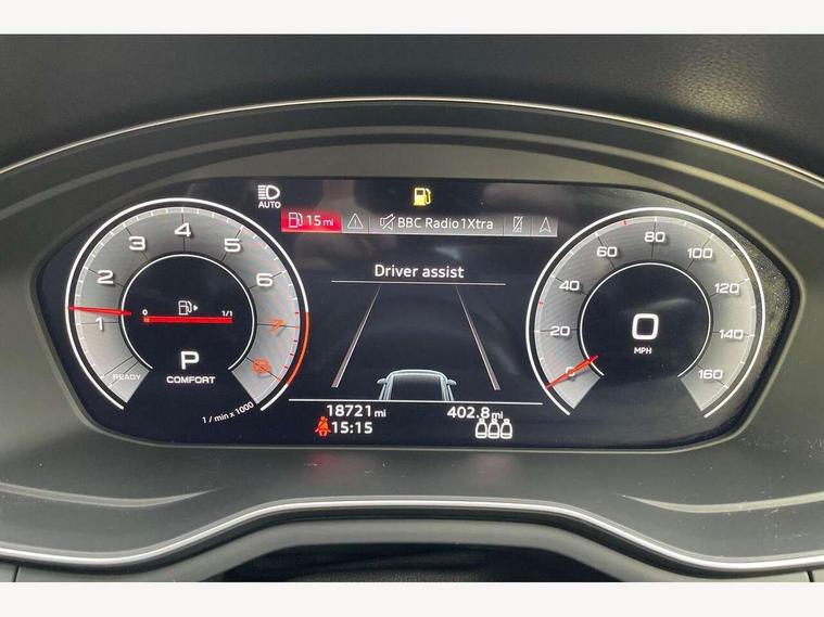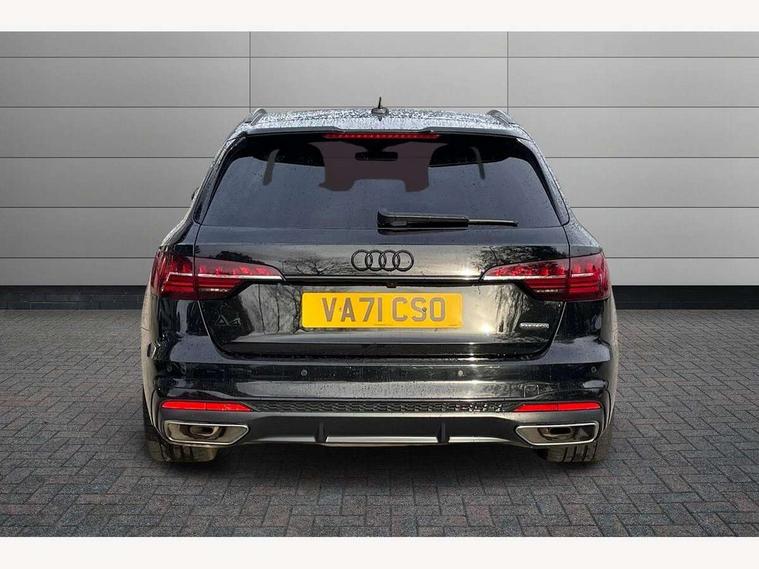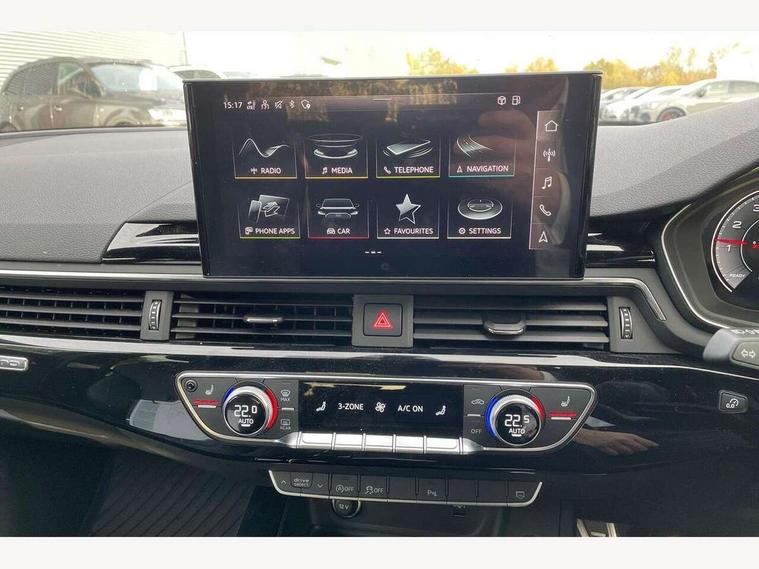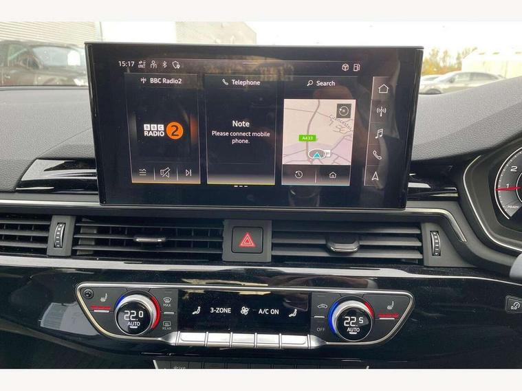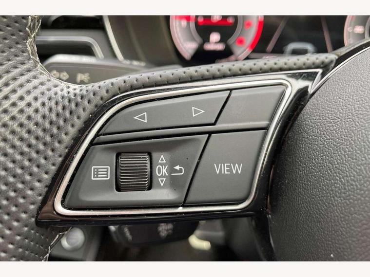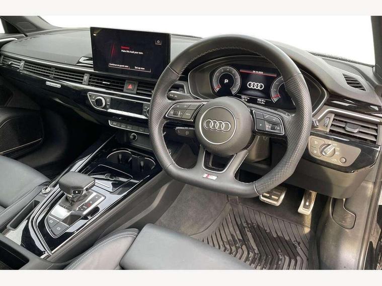 Audi connect safety and service (e-call), Audi connect with Amazon Alexa Integration, Audi drive select, Audi parking system plus with front and rear sensors, Audi smartphone interface, Audi virtual cockpit, Automatic start-stop system with coasting functionality and efficiency programme, Bluetooth interface, Electromechanical power steering, Email, calendar and text messages displayed via MMI, MMI Navigation plus with MMI touch includes 10.1" high resolution colour MMI display, 3D map, Power operated tailgate, Rear view camera, Voice control system, 58 Litre fuel tank, Sports suspension lowered by 23mm, 2 USB charging ports, 8 passive loudspeakers, DAB digital radio reception, Auto dimming rear view mirror, Black Audi rings and black badging (model name in black badging, no engine badging), Black audi rings decal above rear sills, Body colour door handles, Body colour front spoiler lip, Body colour side sill trim, Electrically folding auto dimming/adjustable/heated door mirrors with LED side indicators and kerb view function for passenger side, Front and rear bumpers with side skirts, Front wing badges, Grained matt black side air inlets with matt aluminium silver inlay, High beam assistant, High gloss black B pillar trims and triangular rear door trim, LED headlights with LED rear lights + dynamic rear indicators + headlight adjustment and high beam, turning light + LED daytime running lights, LED third brake light, Matt aluminium silver tailpipe trim, Privacy glass, Rain and light sensors, Rear diffuser in matt titanium black with trim strip in matt aluminium silver, Rear side wing doors, Rear wiper, RS4 rear spoiler in body colour, S Line roof edge spoiler, Windscreen with acoustic glazing, 4 way electric lumbar support for driver and front passenger, 40/20/40 split folding 3 rear seat bench in 3 parts with rear centre armrest, Black cloth headlining, Black perforated leather gearknob, Contrast stitching on seats, steering wheel and gear lever gaiter, Deluxe 3 zone electronic climate control, Door sill trims with aluminium inlay, Electric load area cover, Front and rear head restraints, Front centre armrest, Heated front seats, Illuminated door sill trims with S logo, ISOFIX child seat mounting and top tether, Manual seat adjustment, Single front passenger seat, Stainless steel pedals and foot rest, Black styling pack - A4 Avant, LED Interior light pack - A4/S4, 3 rear seatbelts, 6 airbags - Driver, front passenger, curtain and side windows, Electronic Stabilisation Control (ESC) including ABS, ASR and EDL, Hill hold assist, Multi collision brake assist, Pop-up bonnet for pedestrian protection, Pre sense city, Rear door child safety locks, Seatbelt monitoring, Warning triangle and first aid kit, Anti theft alarm, Anti theft wheel bolts, Keyless Go, Piano black finish inlay, Tool kit, Tyre repair kit,
