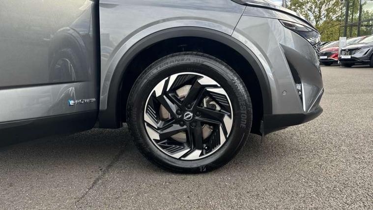 2 front USB-C ports, 2 rear USB-C ports, 360 degree Intelligent around view monitor with moving object detection, Blind spot intervention, Blind spot warning, Drive assist custom mode, Drive modes (sport, normal, eco), Driver drowsiness and attention warning, e-Pedal step, Electric speed sensitive power steering, Emergency and breakdown call, Emergency lane keep assist, Emergency Stop Signal (ESS), Engine start/stop button, EV mode switch, Event data recorder, Front and rear parking sensors, Full Digital 12.3" TFT Digital Combimeter, Google virtual personal assistance, Idle stop/start system, In-car WIFI hotspot, Intelligent Cruise control (ICC), Intelligent forward collision warning, Intelligent speed assist, Lane departure warning system, Nissan connect 12.3 inch touchscreen infotainment system, Nissan connect navigation with google maps, Nissan connect services 2.0 (Google Automotive System), Outside temperature sensor, Rear cross traffic alert, Reversing detection, Traffic jam pilot, Wireless Apple CarPlay/Android Auto, Wireless charging pad, Limited slip differential, 6 speakers, AM/FM audio system with DAB, Bluetooth audio streaming, Auto dimming frameless rear view mirror, Auto rear wiper when reversing, Body colour mirror caps, Body coloured door handles, Bodyside mouldings, Chrome side window finisher, e-POWER badging, Electric auto folding door mirrors, Electrically adjustable and heated door mirrors with LED turn indicator, Follow me home headlights, High beam assist, Intelligent auto headlights, LED 3rd brake light, LED daytime running lights, LED Headlights, LED rear lights, One touch front and rear electric windows with remote opening and closing, One touch passenger window, Partially body coloured bumpers, Rear privacy glass, Rear roof spoiler, Rear side wing doors, Rear styling plate, Shark fin antenna, Splash free rain sensing wipers, Super UV and infrared cut glass, Three blink turn signal, 3 bench rear seats in 2nd row, 3 rear headrests, 60/40 split folding rear seat bench, Chrome interior door handles, Cloth upholstery, Dark headlining, Driver seat back pocket, Dual zone automatic climate control with pollen filter, e-POWER shifter, Front door with bottle holders, Height adjustable front headrests, Luggage board system, Luggage space lighting, Multifunction steering wheel, Passenger seat back pocket, Rear door bottle holders, RGB ambient light (Full area coverage), Single front passenger seat, Smooth leather steering wheel, Tilt/telescopic adjustable steering wheel, Two rear isofix child seat anchorage points with top tether, 3x3 point rear seatbelt pretensioners + load limiters, Autonomous emergency braking, Child locks on rear doors, Curtain and front side, far side airbags, Driver and passenger airbags, Driver, passenger and 2nd row rear seat belt reminder, Electric handbrake with auto hold function, Front seatbelt pretensioners + load limiters, Height adjustable front seatbelts, Hill start assist, intelligent front emergency braking, Rear automatic braking, Tyre pressure monitoring system, Vehicle dynamic control, Engine immobiliser, Intelligent key with walk away lock and approach unlock functions, Remote central door locking with deadlocking, Thatcham alarm, 18" Diamond cut alloy wheels, Tyre puncture repair kit,