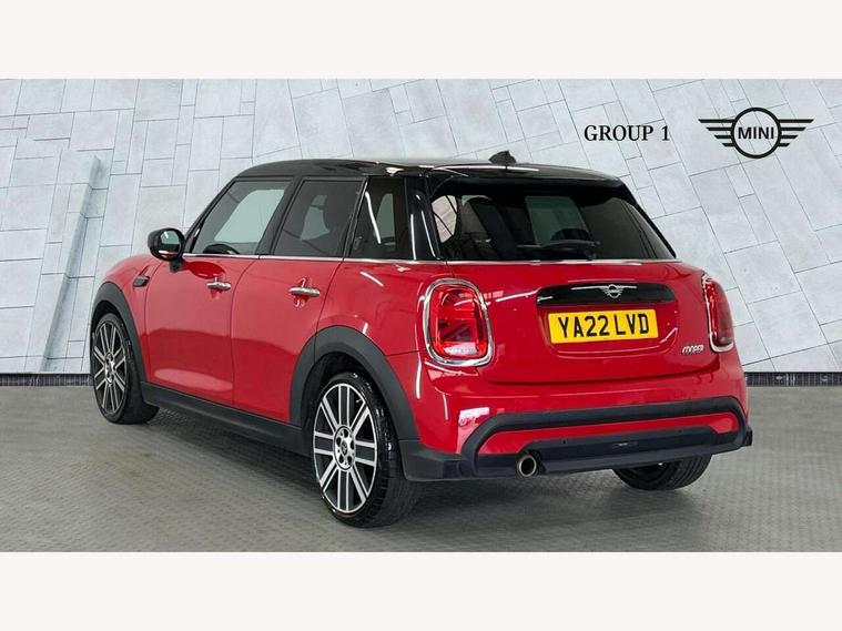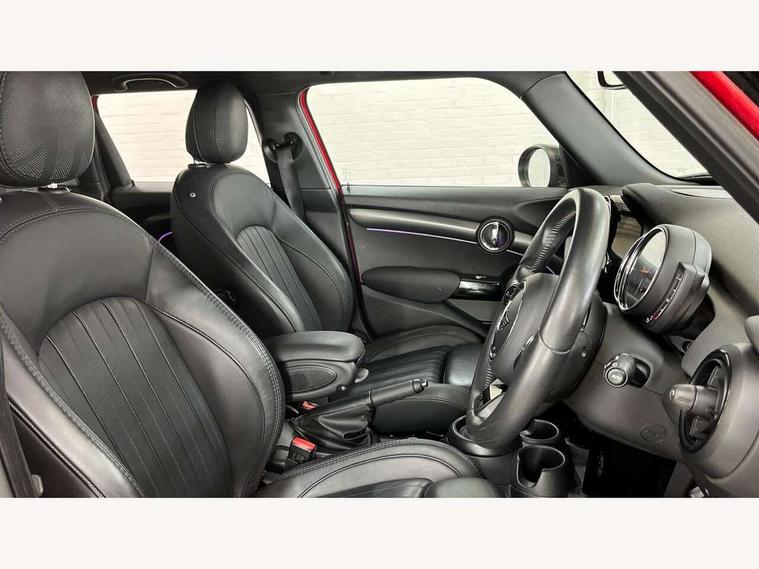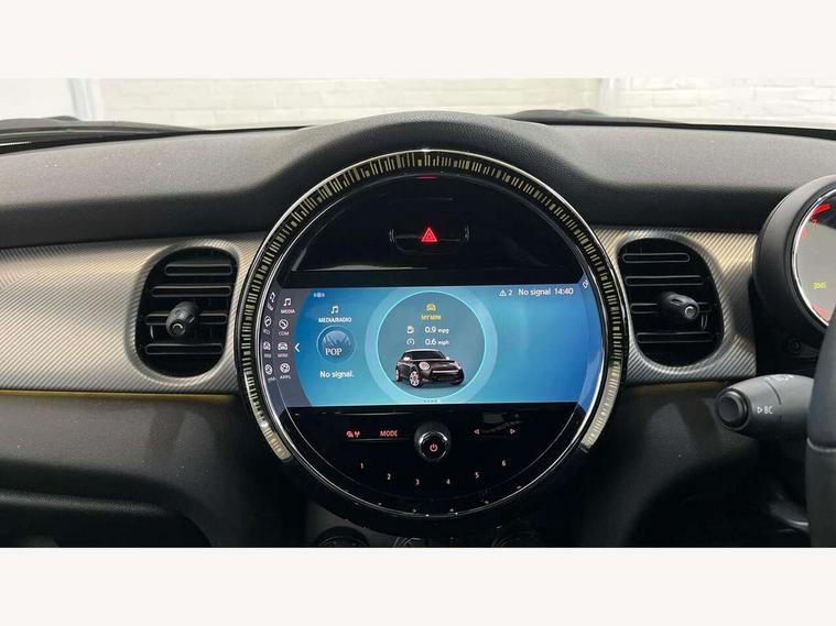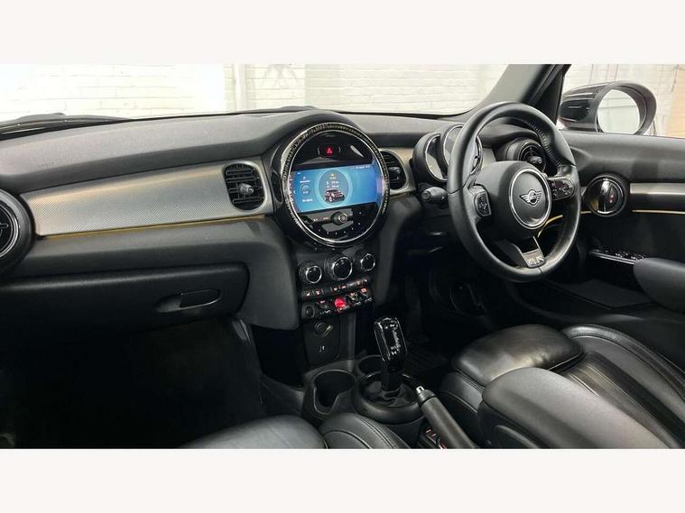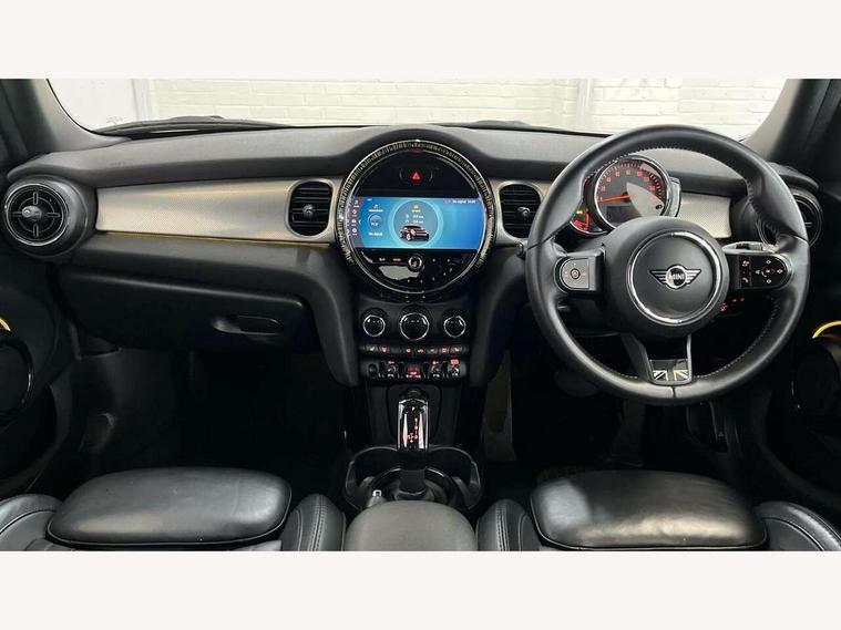 Apple CarPlay, Automatic start/stop function with brake energy recuperation, Compatible mobile phone bluetooth with audio streaming, Cruise control with brake assist, Electro-mechanical speed dependant steering assistance, Flexible car sharing preparation, Instrument cluster, MINI Driving Modes - centre toggle switch to control driving setting (sport, mid and green), Mini E-call, MINI TeleServices, On board computer, Rear park distance control, Service interval indicator, Double Vanos system, Fully variable valve control, Gear change indicator display, High precision injection, Performance Control, Steptronic transmission with double clutch, 8.8" touchscreen with LED ring, FM tuner and DAB digital radio, 3rd brake light, Automatic headlight activation switch, Body colour fuel filler cap, Chrome line exterior - radiator grille bars, tailgate handle, lower front grille grating and rear central fog-light, Dynamic brake lights, Electric front+rear windows, Heated rear window, Heated windscreen washer jets, LED headlight with closed ring and daytime driving lights, Metal door sill strips with MINI imprint, Model logo Cooper on right of tailgate, Rain sensor window wipers, Rear fog lights, Rear LED lights with union jack design, Rear side wing doors, Rear window wiper, Side scuttle panel with integrated indicator, Sun/heat protection glass, White indicator lenses, 12V Accessory socket in centre console, 3 seat bench in 2nd row, 4 lashing eyes in luggage compartment, 60/40 split folding rear seat, Anthracite headliner including grab handles and clothes hooks, Carbon black colour line - Knee roll and door armrest, Chrome interior highlights, Chrome line interior - air vents, gear lever base, door handles and speakers in doors, Cupholders, Front and rear head restraints, Front and rear isofix with front passenger airbag deactivation, Front and rear velour floor mats, Glove compartment, Height and length steering column adjustment, Interior lighting with 12 different colours across the dashboard, underneath door bezel with illuminated laser-engraved design on central display, Leatherette gearshift lever and handbrake gaiters, LED reading lights, vanity mirror lights, front foot well light and spotlight on front seats, Manual air conditioning, Mechanical seat adjustment - forward/back & backrest for front seats and driver seat height adjust, MINI yours badge on exterior pillar, Multifunction steering wheel, Single front passenger seat, Storage compartments in doors, Sunvisors with vanity mirrors, Walknappa leather steering wheel with grey seam and MINI Yours badge on Piano Black lower steering wheel spoke, 3 point seatbelts on all five seats, 6 Airbags - front, side, head and seat belt tensioners, Anti-lock braking system (ABS), Child locks on rear doors, DSC - Dynamic Stability Control, Front and rear disc brakes, Hill start assist, Single tone fanfare horn, Tyre pressure monitoring system, Alarm system with tilt sensor, monitoring doors, bonnet interior and tailgate, Electronic vehicle immobiliser, Start/stop toggle with keyless go, Tool kit,