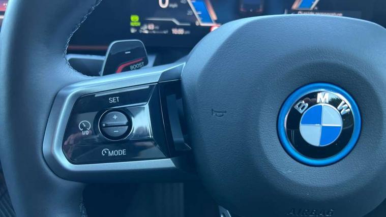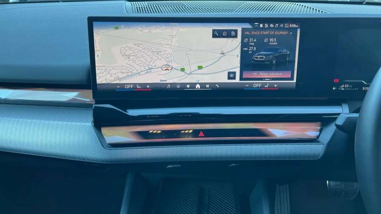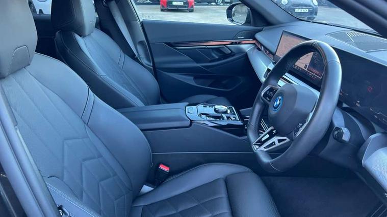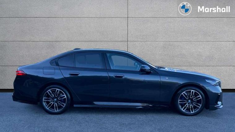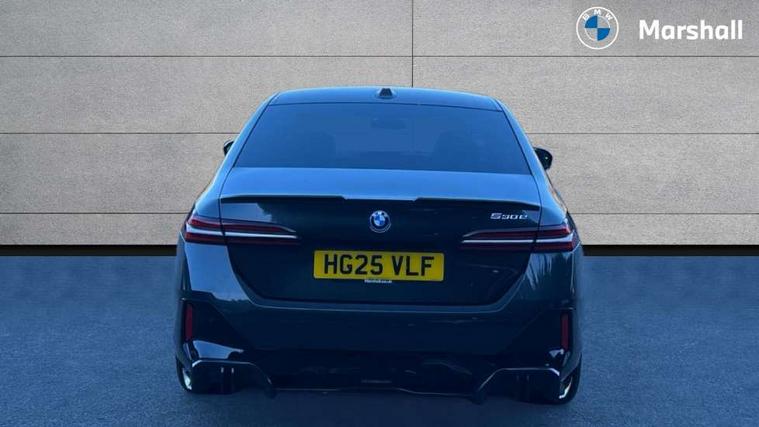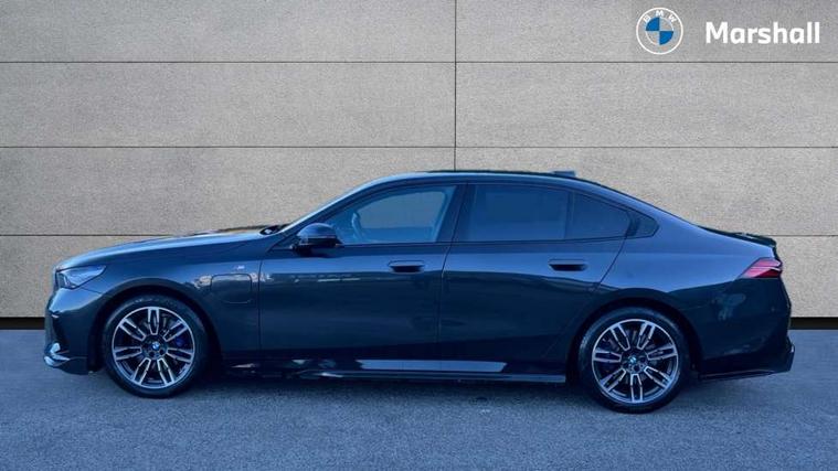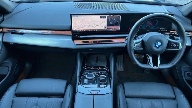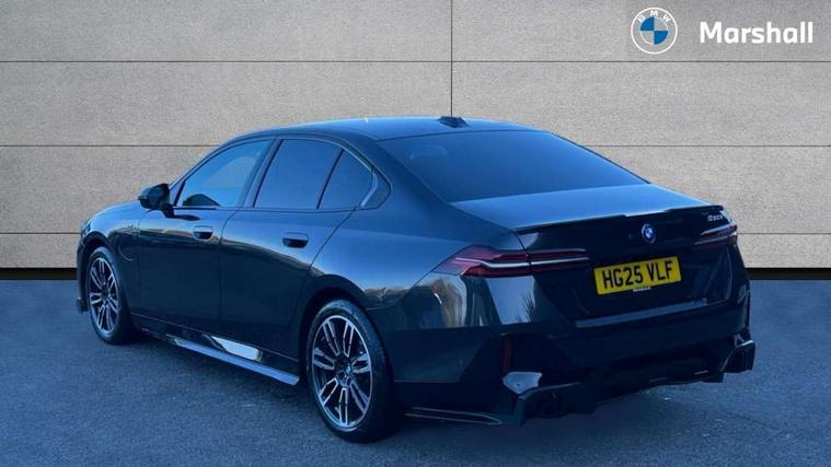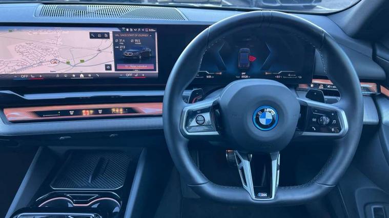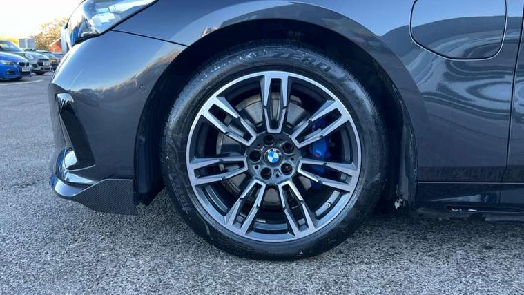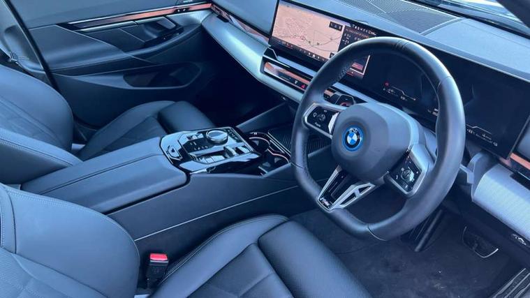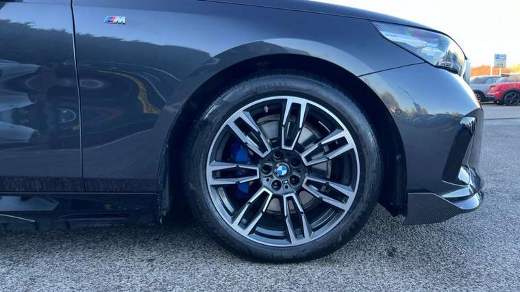 BMW ConnectedDrive online services, BMW Iconic sounds electric, BMW legal emergency call, BMW Teleservices, Brake pad wear indicator, Cruise control with brake assist, Driving Assistant Plus Preparation, Front collision warning with brake intervention, Lane departure warning with active return, Left turn warning with brake function, Multifunctional instrument panel, Oil sensor for level and grade, On board computer inc. average speed, fuel consumption, liquid crystal Info display, journey computer, outside temperature display, personal profile, On-board diagnosis - OBD, PAS, Personal e-SIM, Powered by Operating System 7.0, Run flat indicator, Service interval indicator, Speed limit Info with manual speed limit assist, Stop/start button, 8 speed automatic steptronic transmission with gearshift paddles, AC charging cable professional (mode 3) for public charging, DAB tuner, Acoustic glazing, Adaptive LED Headlights, Automatic cornering lights, Automatic windscreen wipers and automatic headlight, BMW selective beam, Body colour door handles, Body coloured bumpers, Dynamic brake lights with LED technology, Electric adjustable door mirrors, Electric front and rear windows with fingertip open/close + anti-trap facility and comfort closing function, Follow me home headlight function, Headlight elements in blue, Heated windscreen washer jets, LED daytime running lights, LED third brake light, Light colour close to that of ordinary daylight, Optimum, homogeneous illumination of the road, Rear boot, Rear side wing doors, 2 zone automatic air conditioning, 3 seat bench in 2nd row, 3 spoke leather M steering wheel in BMW M specific design with M badge, Armrest - front and rear integrated door trim, centre console includes storage compartment, rear centre includes 2 cupholders, Child seat ISOFIX attachment with rear outer seats includes top tether, Electric adjustable front sports seats, Electric adjustable steering column, Electrically adjustable lumbar support for driver and front passenger, Heated driver and front passenger seats, High-gloss black door switch cluster, power window switch and tailgate button on first and second row seat, M Anthracite headlining, M Sport pedal covers in stainless steel, Rear headrests, Single front passenger seat, Through loading system with 40/20/40 rear seat backrest split, Velour floormats, Wireless charging tray, Ambient lighting pack - 5 Series/I5, Connected package professional - 5 Series/I5, Driving assistance pack - 5 Series/I5, Expanded exterior mirror package - 5 series/I5, M high gloss shadow line pack - 5 Series/ I5, M Sport exterior styling pack - 5 Series/I5, 3 rear three point seatbelts, Active protection, Airbag deployment is controlled with respect to the intensity and scope, Anti-lock braking system (ABS), Brake assist, Brake energy regeneration, Cornering brake control (CBC), Crash sensor activating central locking release, hazard warning lights, fuel cut off and interior lighting, Driver and front passenger airbags, Driver central airbag, Driver/front passenger side airbags, DSC - Dynamic Stability Control, Dynamic brake control, Dynamic Traction Control - DTC, Electromechanical parking brake with automatic drive away release and auto hold function, Electronic brake force distribution, Engine drag torque control, Front and rear brake discs with interior ventilation, Front and rear curtain airbags, Front head restraints with anti-whiplash, Head airbags for first and second row seats, Hill start assist, Locking of doors after driving off, M Sport brake in blue high gloss painted brake callipers with monochrome logo on front calliper, Mechanical child proof lock on rear doors, PC iBrake PostCrash approach control warning with light braking function, Side impact protection, Trailer stability control, Two tone horn, Tyre pressure monitoring system, Warning triangle and first aid kit, Alarm system, Locking wheel bolts including wheel bolt adapter, Tyre repair kit plus,