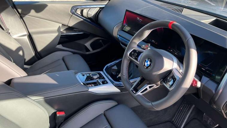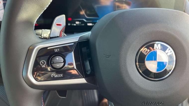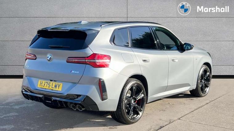 Active guard professional, Attentiveness assist, Automatic operation of tailgate, BMW ConnectedDrive online services, BMW iDrive, BMW Online services, BMW Teleservices, Brake pad wear indicator, Condition based service, Drive off assistant, Flat tyre monitor, Language version English, My Mode - Personal, Efficient, Sport, Relax, Expressive, Servotronic system, Variable sport steering, Dynamic stability control, Multiple control arm rear axle, Steptronic transmission with gearshift paddles, Two-joint strut-type front axle with tension strut, DAB tuner, Personal eSim, 4 tailpipe tips, Adaptive LED Headlights, B-pillar trim panel in black high-gloss, BMW badge on front and rear, BMW M-specific front/rear bumpers and side sills, BMW M-specific radiator grille with horizontal bars in Dark Silver and M logo, Body colour mirror caps, Daytime running lights, Door handles flush to the surface with lock barrel on driver's side, Dynamic brake lights, Electric adjustable and heated door mirrors, Electric window trap release and convenient opening/closing feature, Headlight beam throw control, Heated rear window, Heated windscreen washer jets, High beam assistant, LED 3rd brake light, LED rear lights, LED tail lights, LED turning indicators, Locking of the doors, M-specific Exterior mirrors, Mirror base and mirror blade in satinised aluminium, Mirror triangle in black high-gloss, Model inscription on right tailgate, Rain sensor with automatic headlight activation, Rear side wing doors, Rear wiper, Reversing light, Side window frame in black high-gloss, Sun protection glass, Windscreen wipers, 12v power socket in front centre console and luggage compartment, 2 x USB Type C ports for charging and data transmission (front centre console) and 2 x USB Type C ports for charging (rear centre console), 3 rear headrests, 3 seat bench in 2nd row, 3 zone automatic air conditioning, 40:20:40 split folding rear seat with loading system, Ambient lighting, Anthracite headlining, Electric adjustable seats with memory function, Floor mats in velour, Footrest and pedals in black plastic, Four grab handles integrated in roof lining, Front armrest with integrated control panel, Front centre console trim in black high-gloss, Front head restraints, Front passenger seat, Front sports seats, Glove compartment, i-Size / ISOFIX attachment points on both outer rear seats, with covers in black, Interior door handles in dark chrome, Luggage compartment separating net, M sport leather steering wheel, Multifunction steering wheel, Rear side armrests integrated into door trim, Selector lever with toggle operation, Steering column adjustment, Sun visors with illuminated vanity mirrors, Three upper retaining strap clips integrated into the rear panels of the seat backrests, Through loading system, Two front cupholders and two in the rear center armrest, Wireless charging tray, BMW Iconic Glow exterior package - X3, Connected pro package - X3, Interior and exterior mirror package - X3, M Sport pro pack - X3, 3 point seatbelts, Airbag deployment is controlled with respect to the intensity and scope, Anti-lock braking system (ABS), Automatic hold function, BMW emergency call, Brake assist, Brake drying, Brake energy regeneration, Braking readiness, Central airbag, Child locks on rear doors, Cornering brake control (CBC), Crash Sensor - activation of central locking release, hazard warning light and interior lighting, Driver and front passenger front and side airbags, Dynamic brake control, Electromechanical parking brake, Front and rear disc brakes, Head airbags, Integrated braking system, M sport seatbelt, Post Crash Collision Warning with braking function, Trailer stability control, Tyre pressure sensor, Warning triangle, Alarm system, Closing system with central locking, Comfort access system with BMW digital key plus, Locking wheel bolts, Start/stop button with keyless motor start with acoustic drive, Tyre repair kit plus,