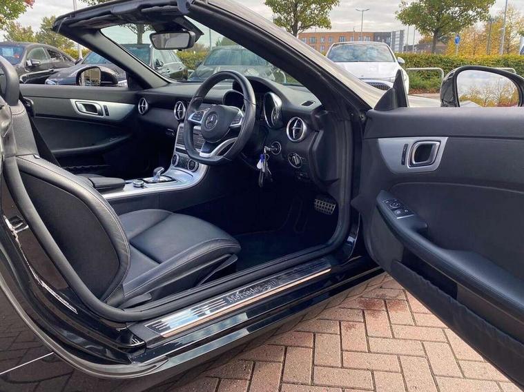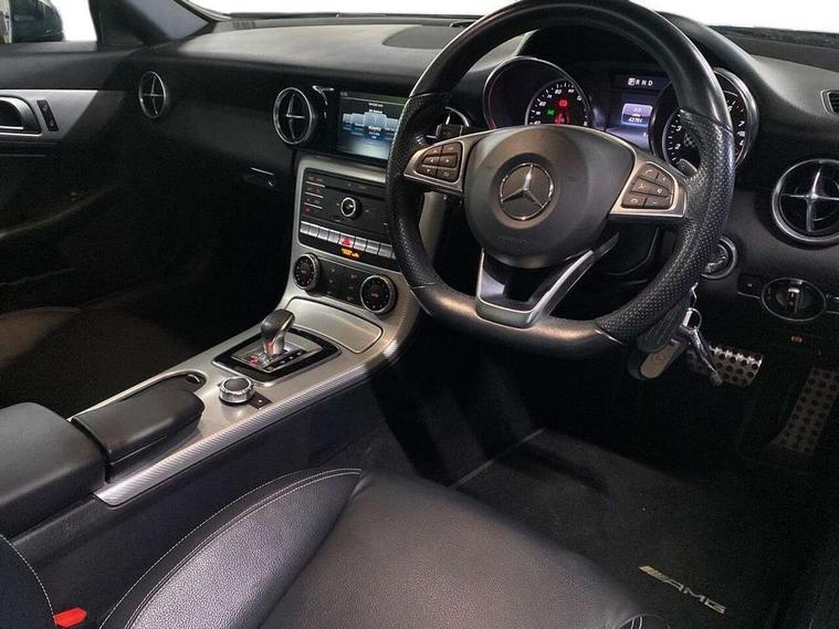 Attention assist, Bluetooth system, Chequered flag design instrument cluster, DYNAMIC SELECT with a choice of driving modes (ECO, Comfort, Sport, Sport+ and Individual), Outside temperature gauge, Power Steering, Remote boot release, Service indicator (ASSYST), Trip computer, Sport exhaust system, Sports suspension, 2 USB ports in centre console, DAB Digital radio, Media interface, Adaptive brake lights, AMG bodystyling, AMG sports exhaust system, Automatic headlamp activation, Body colour bumpers, Electric front windows, Electrically adjustable and heated door mirrors, Electro hydraulic vario roof, LED daytime running lights, 3 spoke flat bottom multi-function perforated leather steering wheel, Active head restraints, AMG floormats, Auto Mercedes-Benz child seat recognition sensor, Brushed stainless steel sports pedals with rubber studs, Driver/front passenger seat height adjustment, Front centre armrest, Lockable glovebox, Sports seats, Steering wheel gearshift paddles, ABS with Brake Assist, Adaptive brake system, Brake calipers with Mercedes-Benz lettering + perforated brake discs, Driver/front passenger head+thorax airbag, Dual stage driver/passenger airbags, Electronic parking brake, ESP with Acceleration skid control (ASR), Seatbelt pretensioners, Tyre pressure monitoring system, Warning triangle and first aid kit, Alarm system/interior protection/immobiliser, Tyre sealant kit,
