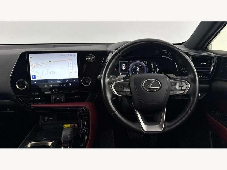 4 driving modes EV/Eco/Normal/Sport, 7" display in instrument binnacle, Blind spot monitoring with rear cross traffic alert, Bluetooth telephone connectivity, eCall emergency system, Electric speed sensitive power steering, Intelligent parking sensors - 4 front and 4 rear, Lane change flasher function, Lexus link connect - Cloud based navigation, cloud based voice assistant, always online and 9.8" VGA touchscreen, Push button starter, Reversing camera with back guidelines, Service interval indicator, Wireless Apple CarPlay and wired Android Auto, Wireless Smartphone charger, 6.6 kW onboard charger, All Wheel Drive (AWD), Hybrid automatic transmission, Vehicle Dynamics Integrated Management (VDIM), Vehicle Stability Control (VSC), 10 speakers, 4 USB ports - 2 front, one USB C, 2 rear USB C, DAB Digital radio, Auto dimming interior rear view mirror, Automatic headlights, Bi LED headlights, Double hidden exhaust pipes, Front and rear one touch power windows, with anti-jam protection, Heated, auto-folding, auto-dimming outside mirrors with reverse tilt function and turn indicators, Illuminated door handles with puddle light, LED brake lights and rear lights with emergency brake signal, LED daytime running lights, LED front fog lights, LED Indicators, Power back door with kick sensor, Privacy glass, rear doors and tailgate, Rain sensor windscreen wipers, Rear side wing doors, Rear wiper, Roof rails, 12V accessory port centre console and luggage compartment, 2 cupholders in front centre console, 2 way electrical lumbar adjustment for driver, 2 x fixed shopping bag hooks in boot, 2 x sun visors with vanity mirror and lamp, 3 seat bench in 2nd row, 4 x tie down hooks in the boot, 6 way manually adjustable front seats, 60/40 split folding rear seat, Adjustable rear seat backrest, Card holder installed in driver and passengers sun visors, Centre armrest with storage box, Dual climate control air conditioning system, Front and rear head restraints, Front and rear textile carpet mats, Front passenger seat, Heated front seats, Heated steering wheel, Leather gear lever, LED interior illumination, Power adjustable leather steering wheel with paddle shifts, Rear centre armrest with 2 cupholders, Tahara leather upholstery, Whiplash Injury Lessening (WIL) feature (active headrest) for seats, 2 x Isofix child rear seat restraints, 3 point ELR front seatbelts with pretensioners, 3x3 point rear seat belts, ABS, Adjustable seat belt anchor points, Driver and front passenger 2 stage airbag, Driver/front passenger side airbags, Drivers knee airbag, E-Latch with safe exit assist, EBD + Brake Assist, ECB (Electronically Controlled Brake System), Electronic parking brake, Front and rear curtain shield airbags, Front center airbag, Front passenger seat cushion airbag, Hill assist control, Lexus safety system - dynamic radar cruise control, pre collision system day and night, lane tracing assist, road sign, automatic high beam, OTA, Manual rear child locks, Passenger airbag cut-off device, Traction control, Tyre pressure warning, 2 x remote key fobs, Anti-theft system with alarm, intrusion sensor, glass breakage sensor, tilt sensor and engine immobiliser, Locking wheel nuts, Smart keyless entry, Speed sensitive auto door locking, Two motion door lock with double lock, VIN Window etching, 3D prism black Inlay, Tyre repair kit,