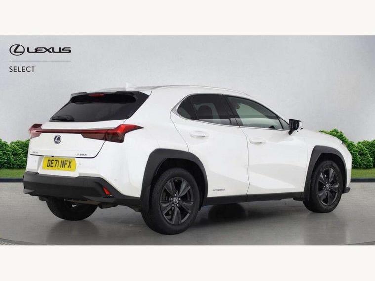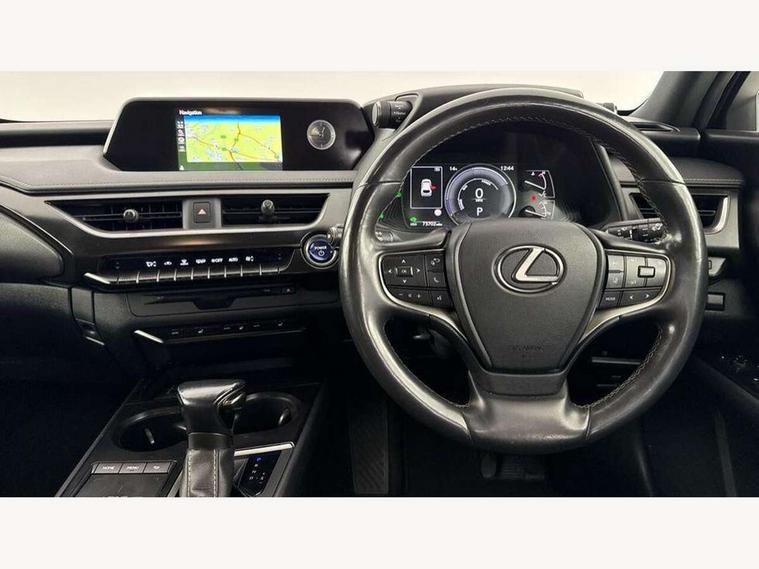 4 driving modes EV/Eco/Normal/Sport, 7" Lexus media display, 7" TFT instrument cluster, Analogue clock with GPS function, Apple car play/Android Auto, Compatible mobile phone bluetooth with audio streaming, E-call, Electric power steering (EPS) with speed sensitive features, Lane change flasher function, Lexus link connected services, Lexus safety systems + includes dynamic radar cruise control, pre collision system day and night, lane tracing assist, road sign assist, Push button start, Remote touch interface, Trip computer, Vehicle Dynamics Integrated Management (VDIM), Vehicle Stability Control (VSC), 2 front USB and 2 rear USB charging points, 6 speakers, AM/FM and DAB radio, AUX socket with VTR compatibility, CD player, Acoustic windscreen, Aero stabilising arch mouldings, Aero stabilising rear lights, Aero ventilated wheels, Bi-LED (low and high beam) headlights with Auto High Beam (AHB), Black roof drip mouldings, Black wheel arches, Body adhesive, laser screw welding and laser brazed roof structure, Body coloured bumpers, Electric adjustable/heated door mirrors, Front and rear one touch power windows, with anti-jam protection, Headlight cleaners, LED daytime running lights, LED tail lights, LED third brake light, Light green UV glass, Manual control of windscreen wipers, Rear wiper, Shark fin roof aerial, Single hidden exhaust pipe, Towing preparation, Variable front intermittent wipers, 12V accessory port centre console and luggage compartment, 2 cup holders in the front and rear centre console, 2 x folding shopping bag hooks in boot, 2 x sun visors with vanity mirror and lamp, 4 x tie down hooks in the boot, 5 headrests, 6 way driver and passenger manually adjustable front seats, 60/40 split folding rear seat, Card holder installed in driver and passengers sun visors, Centre armrest with storage, Driver and passenger door pocket, Dual zone electronic climate control + Nano-E humidity sensor, Glovebox, Illuminated entry system, Leather gear lever, Leather steering wheel, LED interior illumination, Map pockets in the rear of passenger's front seat, Premium fabric upholstery, Rear air vents with 2 USB chargers, Rear armrest with 2 cupholders, Storage tray under audio panel, Textile carpet mats, Tilt/reach adjustable steering column, Under deck storage, Under desk side storage, 2 x Isofix child rear seat restraints, 3x3 point rear seatbelts, Anti-lock braking system (ABS), BAS (Brake Assist System), Driver and front passenger 2 stage airbag, Driver and front passenger knee airbag, Driver/front passenger side airbags, EBD - Electronic brakeforce distribution, ECB (Electronically Controlled Brake System), Electric parking brake, Front adjustable seatbelt anchor points, Front and rear curtain shield airbags, Front outer seatbelt+pre-tensioners, force limiter+tension reduction: 3-point with active safety link to PCS, Hill start assist control (HAC), Passenger airbag cut-off device, Rear outer seatbelt+pre-tensioners, force limiter+tension reduction: 3-point with active safety link to PCS, Centre belt w/o pre tensioner+force limiter, Secondary Collision Brake (SCB), TRC (Traction Control), Tyre pressure warning, 2 x remote key fobs, Anti theft system : Alarm instruction sensor, glass breakage sensor and engine immobiliser, Locking wheel nuts, Remote central door locking, Speed sensitive auto door locking, Two motion door lock with double lock, VIN Window etching, 17" Alloy wheels, Tyre repair kit,