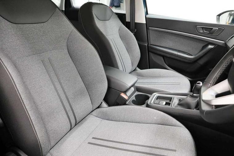 8" Digital cockpit, Colour multi-function on board computer display, Cruise control system with speed limiter, E-call, Outside temperature gauge, PAS, SEAT drive profile with driving experience button - Normal, Sport, Eco and Individual mode, steering and throttle response, Self parking functionality (includes front and rear parking sensors), Start/stop system, Tailgate, Trip computer, Wireless full link smartphone integration, Wireless phone charger, Steering wheel mounted audio/phone controls, Black wheel arch surrounds, Body colour bumpers, Chrome front grille frame, Chrome roof rails, Chrome side window trim, Daytime running lights, Door mirrors with welcome light silhouette, Dynamic headlight range control with self adjusting whilst driving, Electric adjustable/heated/folding door mirrors, Front and rear electric windows, Full LED headlamps with lens and LED front fog lamps with cornering function, LED rear tail lights with dynamic indicators, Rear fog lights, Rear side wing doors, Rear wash/wipe, Simulated exhaust pipes, Variable front intermittent wipers, 12v socket in front, 3 seat bench in 2nd row, 60/40 split folding rear seat, Cloth upholstery with front comfort seats, Drawer under right front seat, Dual zone climate control, Front and rear head restraints, Front centre armrest, Front seat back storage pockets, Height adjustable driver and passenger seat with lumbar adjustment, ISOFIX points in outer rear seats with top tether anchorage points, Leather steering wheel and gear knob, Rear armrest and easy back seat release mechanism from boot, Single front passenger seat, Interior lighting pack - Ateca, Navigation system pack with DAB - Ateca, 3x3 point rear seatbelts, ABS, Traction control system (TCS), Electronic stability control (ESC) and Electronic differential lock system (XDS), Airbags - Driver and front passenger airbag with deactivation, front side, two curtain and driver's knee airbags, Electric parking brake with auto hold function, Front and rear seatbelt reminder, Front assist with autonomous emergency braking, Hill hold control, Manual rear child locks, Single tone horn, Tiredness recognition system, Traction control, Tyre pressure monitoring system, Alarm, Keyless entry, Locking wheel bolts, Remote central locking, Chrome interior detailing, 18" Performance machined alloy wheels 36/2 in nuclear grey,