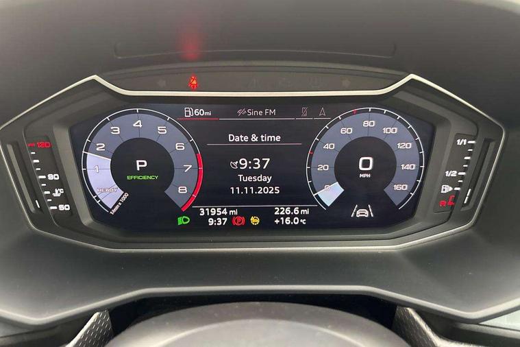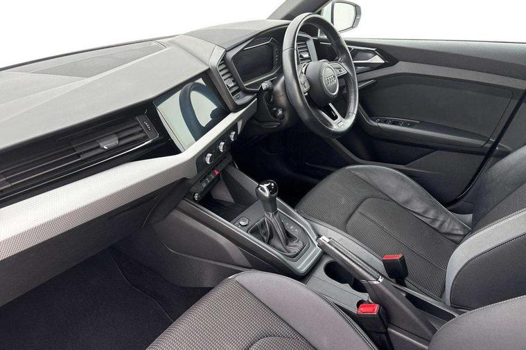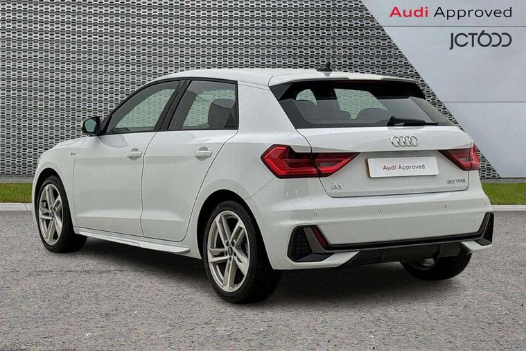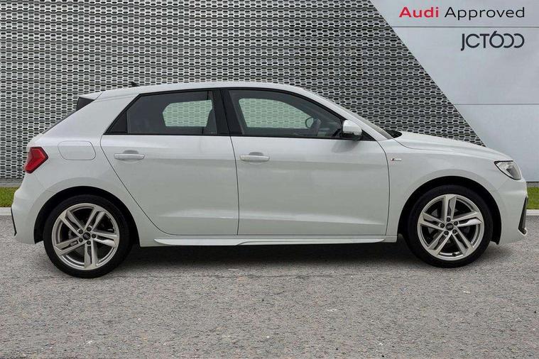 10.25" Digital instrument cluster display classis style instrument dials + speed, odometer, time, outside temperature, telephone menu + fuel level warning, Audi connect safety emergency and service including E-call, Audi drive select - power steering assistance + engine + gear shift 3 preset modes (auto, dynamic, efficiency and an Individual mode), Audi smartphone interface with connect compatible smartphone via USB directly MMI display + Nav, music, third party apps controlled via MMI controller, Automatic start/stop system, Bluetooth interface, Cruise control, Driver's information system, Electromechanical power steering, Lane departure warning system, Service interval indicator, Speed limiter, Voice control system, Washer fluid level indicator, Sports suspension, 1 x SDXC card reader, 2 x USB type C connection points, DAB Digital radio, MMI radio plus with 8.8" colour MMI display screen and MMI touch, Auto dimming rear view mirror, Body coloured door mirrors, Door sills with aluminium inlays and S Line logo, Electric front and rear windows, Electrically adjustable, heated, folding door mirrors with integrated LED side indicator, Front side air inlets in grained matt black and C frame in titanium black, Heat insulating glass windscreen and side windows, Heated rear windscreen, LED headlights with LED rear lights + dynamic rear indicators + headlight adjustment and high beam, turning light + LED daytime running lights, Radiator grille and rear diffuser in matt titanium black, Radiator protective grille frame in matt aluminium silver, Rain and light sensors, Rear fog lights, Rear wiper, S line badges on front wings, Side front spoiler lips in grained matt black, 12V socket in centre console with two cup holders, 3 rear seats with headrests, 40:60 Split folding rear seat or folded fully, Black cloth headlining, Driver and passenger seat with manual height adjust with forward and backwards adjustment, Front and rear black floor mats with contrast stitching in fine silver, Front head restraints, Height and reach adjustable steering wheel, ISOFIX child seat mounting for front passenger and outer rear seats including top tether attachment point of outer rear seats, Leather gear knob with aluminium trim, Luggage compartment light with front and rear reading lights, Manually adjustable lumbar support in front seats, Stainless steel pedals, LED interior lighting pack - A1, Luggage compartment pack - A1, S line exterior styling pack - A1 Sportback, 3x3 point rear seatbelts, Brake assist function, Driver and front passenger airbag with front side and head airbags, Electronic Stability Control including ABS, EBD, ASR and EDL, Front passenger airbag deactivation switch, Hill hold assist, Seatbelt height adjustment for front seats, Seatbelt monitoring, Tyre pressure warning light, Warning triangle and first aid kit, Anti theft alarm, Anti theft wheel bolts and loose wheel warning, Audi pre-sense front with pedestrain and cyclist recognition, Immobiliser, Remote central locking with 2 foldaway keys, Aluminium trim for control switches, air vents and digital instrument cluster, Silver grey inlays polygon structure in diamond paint finish, Structured grey accent areas including air vents, door handle recesses and centre console in quartz paint finish,