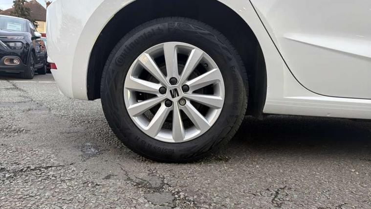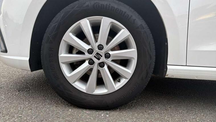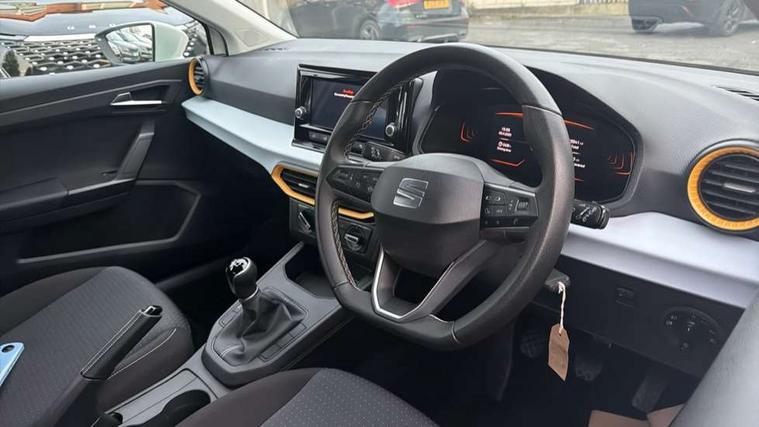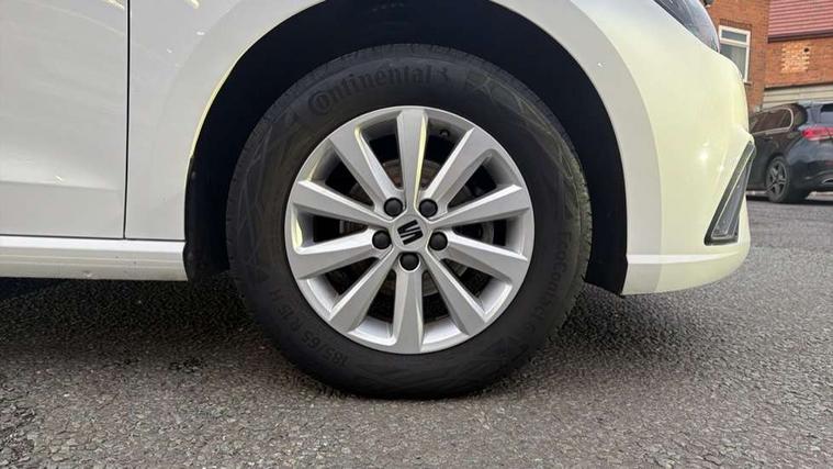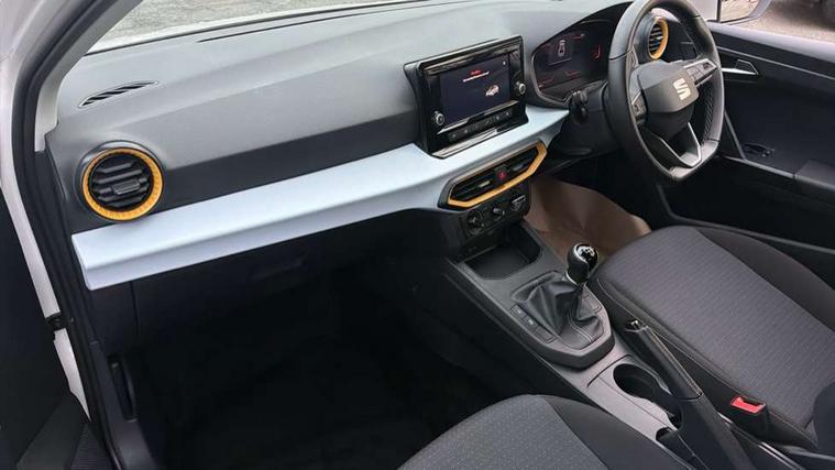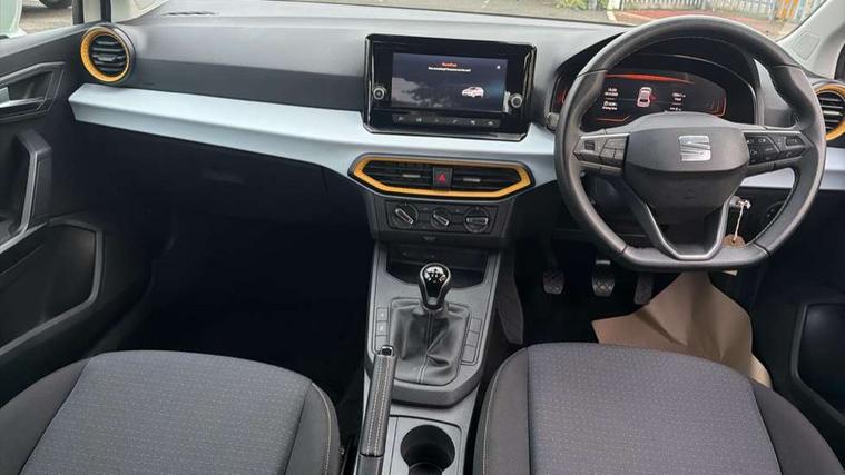 'Lights On' Reminder warning buzzer, 8" Digital cockpit, 8.25" touchscreen display with type C USB socket and DAB/AM/FM radio, Auto start and stop system, Bluetooth audio streaming with handsfree system, Cruise control, Digital clock, E-call, Full link smartphone integration with mirror link, wireless apple carplay, Google android auto + USB Type C cable for apple and android devices, Lane assist, Low fuel warning light, Outside temperature gauge, Power Steering, Rear parking sensor, Seat connect with safety, service and remote, SEAT logo boot release, Speed limiter, Traffic sign recognition, Trip computer, Comfort suspension, 6 speakers, Auxiliary input socket, Radio/MP3 player, Steering wheel mounted controls, Anti theft roof antenna, Body colour bumpers, Body colour door handles, Body colour door mirror caps, Dimming interior rear view mirror, ECO LED automatic headlights and LED daytime running lights, Electric front windows, Electric headlight adjustment, Electrically adjustable door mirrors, Front/rear fog lights, Halogen tailights, Rain sensor, Rear side wing doors, Rear wiper, Third brake light, 3 seat bench in 2nd row, 60/40 split folding rear seat, Air conditioning with dust and pollen filter, Chrome interior detailing and grey headlining, Cloth upholstery, Comfort seats, Front courtesy lights, Front cupholders x 2, Front reading lights, Gear shift indicator, Glovebox, Height adjustable front and rear headrests (five), Height adjustable front seats, Height/reach adjust steering wheel, Illuminated boot, Instrument lighting with brightness control, Isofix, Leather multifunction flat bottomed sports steering wheel, Passenger sunvisor, Single front passenger seat, Sunvisors with mirror and driver side card holder, Safety and driving pack (S) - Ibiza, 3 point seatbelts on all 3 rear seats, ABS, Active front headrests, Child locks on rear doors, Electronic stability control, Energy recovery system, Front assist forward collision warning and autonomous emergency braking, Front driver and passenger side airbags with curtain airbag and front passenger airbag deactivation, Hill hold control, Multi-Collision braking, Seat belt reminder for front and rear seats, Tiredness recognition system, Tyre pressure monitoring system, Locking wheel bolts, Remote central locking + deadlocks, 15" Enjoy alloy wheels in Brilliant silver,