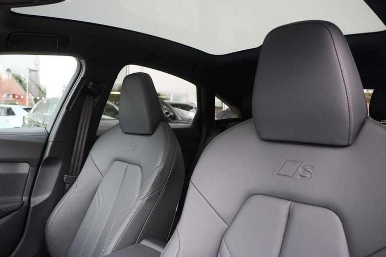 Adaptive cruise control, Advanced driver attention and fatigue montior, Audi application store, Audi assistant, Audi connect emergency call and service, Audi drive select, Audi virtual cockpit plus with 11.9" OLED colour display, Automatic start/stop system with coasting functionality, Camera based traffic sign recognition, Intersection assist, Lane departure warning, MMI navigation plus with high resolution 14.5" OLED touchscreen colour display, Park assist plus, Parking system plus with 360 display, Progressive steering with servotronic, Rear view camera, Smartphone interface, Swerve assist and turn assist, Traffic sign based speed limiter, Household plug type G, Hybrid propulsion system, Industrial connector CEE 32A, 230V, long and straight for the e-tron charging system, Mode 3 type 2 AC charging cable 22kW, Sports suspension lowered by 20mm, 2 USB-C ports in both the front and rear, Audi sound system impressive sound with 8 loudspeakers including centre speaker and subwoofer, 6-channel amplifier with a total output of 180 watts, DAB digital radio reception, Smartphone compartment with wireless charging, Aluminium window trims, Auto dimming rear view mirror, Body colour door mirrors, Door mirrors - electrically adjustable, heated, folding and auto dimming on both sides, Front and rear electric windows, Front door sill trims with aluminium inlays, illuminated with 'S' logo, High beam assist, LED headlights Plus incl. digital daytime running lights, turning light, all-weather light, motorway light, manouevring light and intersection light, LED rear lights pro incl. dynamic rear indicators and illuminated light strip with animated coming and leaving home function, LED third brake light, Privacy glass, Rear and side windows with heat insulating glass, Rear boot, Rear side wing doors, Removal of S line badge on the front wings, S line bumpers, radiator grille and diffuser in phantom black and diffuser insert in matt anthracite, White rhombus logo projection light in exterior mirrors, Windscreen with acoustic glazing, 3 rear headrests, 3 seat rear bench, 3 spoke leather steering wheel with multi-function buttons with touch control, flattened on top and bottom, with S badging and contrast stitching, 3-zone automatic climate control, 40:20:40 split folding rear seat bench with centre armrest and cup holders, Auxiliary air conditioning, Comfort front centre armrest, Front and rear floor mats, Front seats with manual adjustment for position and 4-way electric lumbar support, Front sport seats with integrated headrest and S embossed logo, Headlining in black cloth, Heated front seats, i-Size child seat mounting on the front passenger side and outer rear seats, i-Size and top tether on the outer rear seats, LED roof module front and rear including reading lights, Luggage compartment lid, electrically opening and closing, Manual steering column height and depth adjustment, Single front passenger seat, Stainless steel pedals and footrest, Steering wheel grips in perforated leather and shift paddles, Storage compartment lighting under the centre armrest, Ambient lighting package plus - A5, 3x3 point rear seat belts, Acoustic vehicle alerting system, Driver airbag, Electric child safety locks, First aid kit with warning triangle and vests, Front emergency brake assist, Front passenger airbag, Front passenger airbag deactivation, Front side airbags with head airbag system and front interaction airbag, Hill hold assist, Seat belt monitoring with rear seat occupant reminder, Tyre pressure loss indicator, Anti theft alarm, Anti-theft wheel bolts, Keyless Go, Accent surfaces and control buttons in gloss black, Black dashboard with contrast stitching, Inlays in matt brushed aluminium with linear embossing, anthracite, Softwrap in leatherette with contrast stitching, Upper and lower interior elements in leatherette, Tyre repair kit,