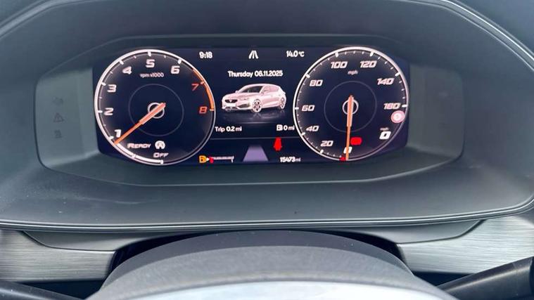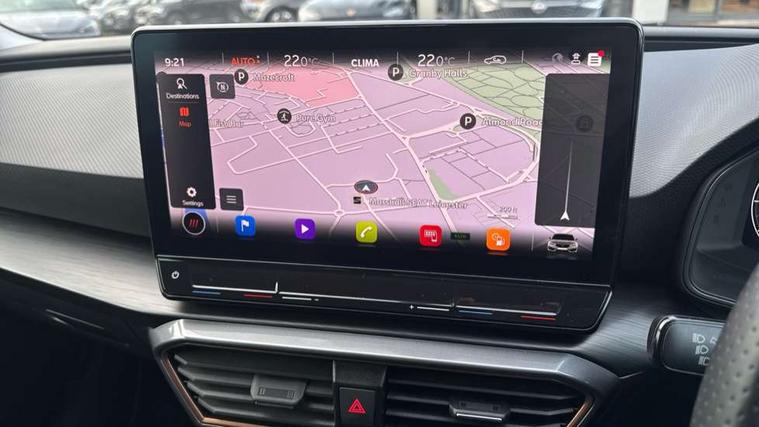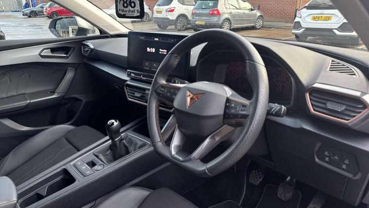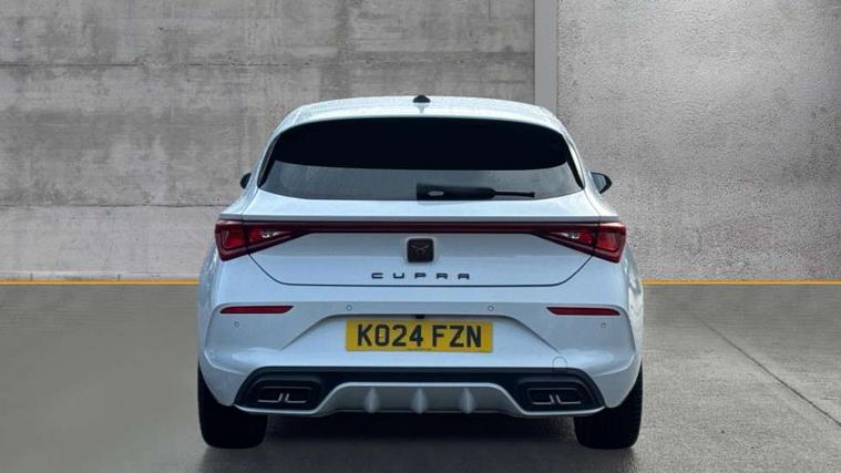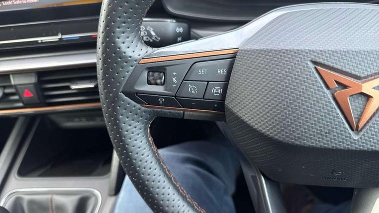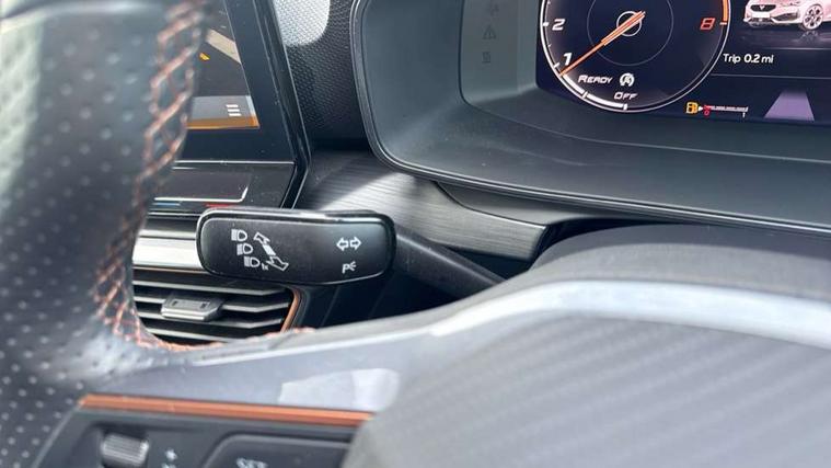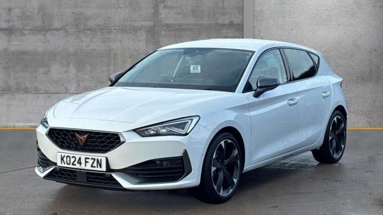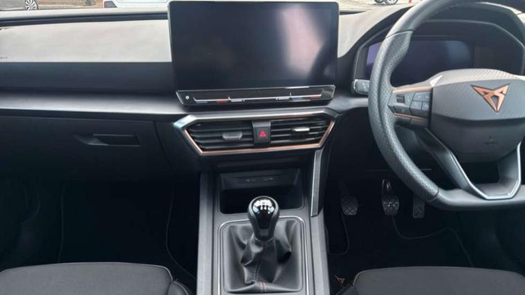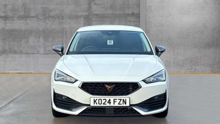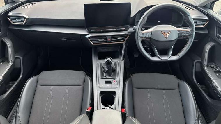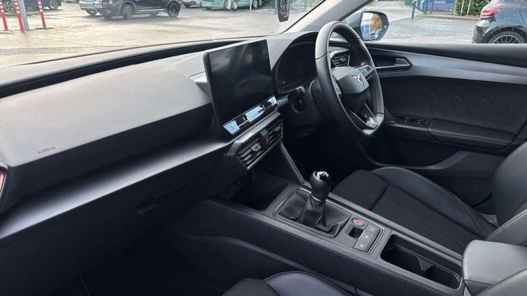 CUPRA drive profile selection with (Comfort/Sport/Individual), throttle response and gearshift mode, Digital cockpit, E-call, Electro mechanical speed sensitive power steering, Four x USB Type C ports (2 in front and 2 in rear), Front assist with forward collision warning braking reaction to vehicles, pedestrians and cyclists, Full link smartphone integration with Mirror Link, wireless Apple CarPlay and wired Google Android Auto, Lane assist, Lockable tailgate, Park assist (inc front/rear parking sensors), Rear view camera, RPM, trip computer, outside temp gauge, instrument light brightness, low fuel warning light, lights on reminder, gearshift indicator, Service interval indicator, Start/stop system with regenerative braking, Wireless phone charger, Sports suspension, Auxiliary input socket, Auto dimming rear view mirror, Body colour door handles, Body coloured bumpers, Cupra sports bumpers, Dark tinted rear windows, Electric front/rear windows, Electrically adjustable, heated and folding door mirrors, LED front fog lamps with cornering function, LED headlights with dynamic turn signals, tail lights, rear fog lights with rear coast to coast lighting, Rain sensing wipers, Rear diffuser with twin exhaust pipe on each side, Rear side wing doors, Rear wash/wipe, Separate daytime running light with automatic headlight control and coming home feature, Third brake light, 12v power supply in centre console, 3 seat bench in 2nd row, 5 headrests, 60/40 split rear bench seat with armrest, Ambient lighting with glovebox, footwell and single monocolour, Cupra Leather flat bottomed, perforated steering wheel, Driver/passenger manual seat height adjustment, Folding boot cover, Front and rear reading lights X 4, Front centre armrest, Front seats manual lumbar adjustment, Grey headlining, Height/reach adjust steering wheel, Illuminated interior front door sills, ISOFIX points in outer rear seats with top tether anchorage points, Jack and tool kit, PVC/Cloth upholstery with copper stitching, Single front passenger seat, Sports seats, Sunvisors with illuminated mirror, Three zone climate control, Media system plus with navigation pack - Leon Cupra, Safety and driving pack (M) - Cupra leon, 3 point seatbelts on all rear seats, ABS, Brake control system - ESC and brake booster, Child proof door locks, Cupra black brake calipers, Driver and front passenger airbags with front passenger airbag de-activation, front side and curtain airbags, Electronic parking brake, Extended safety system - seat belt tensioner, window closure and hazard lights, Hill hold control, Rear disc brakes, Seat belt reminder for front and rear seats, Tiredness recognition system, Tyre pressure monitoring system, Anti theft alarm system with interior monitoring in cab, backup horn and towing protection, KESSY Advanced - Keyless start, keyless entry, Locking wheel bolts, Chrome and copper interior detailing, 18" Machined sport black and silver alloy wheels with 92Y tyres,