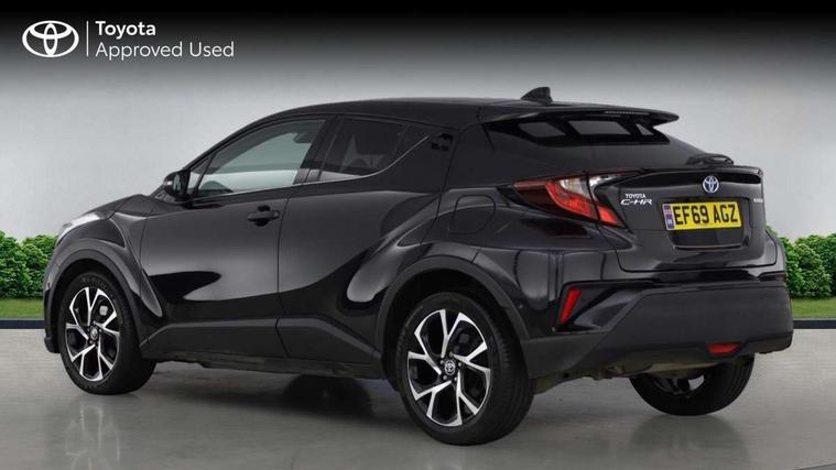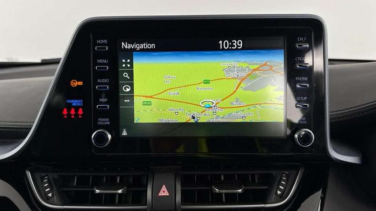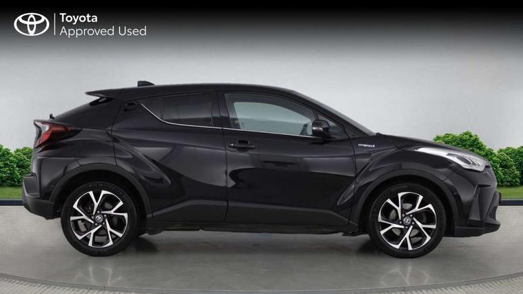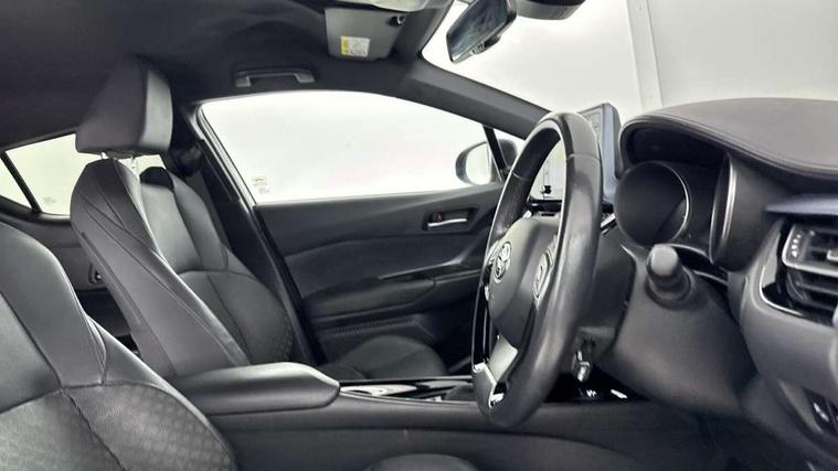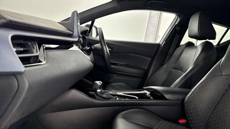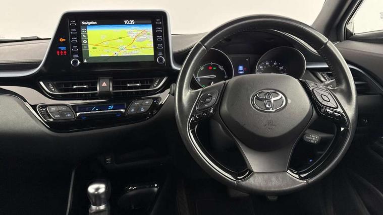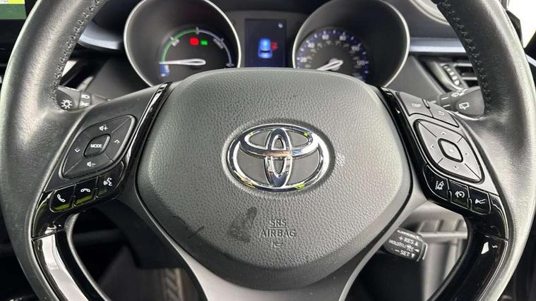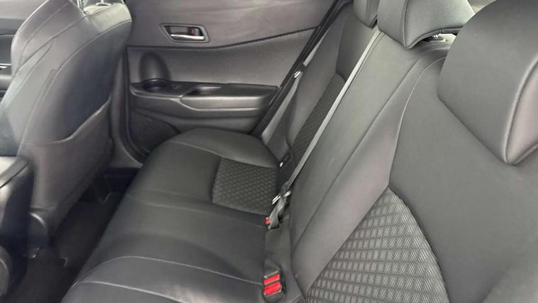 4.2" coloured TFT screen for multi-information display, Adaptive cruise control, Bluetooth connectivity, Electric power steering, Hybrid system indicator, Lane departure alert with steering control, Remote boot door release in cabin, Remote boot door release in key, Reversing camera, Road sign assist - RSA, Simple Intelligent parking assist, Touch 2 Go navigation system, Trip computer, Voice recognition, Vehicle Stability Control (VSC), 6 speakers, Aux connectors + 12V front outlet, DAB Radio (Digital Audio Broadcasting), Toyota touch 2 multimedia system with 8" display, USB connector integrated with radio and CD player, Wi-fi connectivity, Anti-jam protection on power windows, Auto high beam, Auto up and down function on all power windows, Automatic headlights, Automatic headlights cut-off, Automatic wipers with heated folding mirrors, Black and body coloured rear bumper, Black front bumper, Black upper front grille, Body colour door handles, Body colour door mirrors, Boot door release with push button, Electric heated door mirrors, Follow me home headlights, Front and rear power windows, Front fog lights, Front spoiler, Hard tonneau cover, Honeycomb lower front grille, LED daytime running lights, LED front light guide, LED High mounted stop light, LED rear brake lights, LED rear combination lights, Manual headlight levelling, Noise reduction layer on front windows and windscreen, Power adjustable door mirrors, Privacy glass, Rear spoiler, Rear tailgate, Rear window defogger, Rear window wiper, Reflective LED headlights, Shark fin antenna, UV-filter on driver and passenger windows, UV-filter on rear windows, 12v power outlet - front, 3 rear headrests, 3 spoke leather steering wheel, 60/40 split folding rear seat, Adjustable rear headrests, Adjustable speed limiter switch on steering wheel, Assist grips front and centre pillar, Audio and telephone switches on steering wheel, Black front door assist grips, Blue ambient lighting on front cup holders, Blue ambient lighting on front doors, Boot light, Chrome interior door handles, Cloth upholstery, Driver and front passenger personal light, Driver and front passenger Whiplash Injury Lessening seats, Driver and passenger seatback pockets, Dual zone automatic air conditioning, Floor mats, Front cupholders, Front head restraints, Front sports seats, Glovebox with internal light, Heated driver and front passenger seats, Hooks for luggage holding net, Humidifying Nanoe air purifier, Illuminated entry system, Isofix attachments on rear seats, Leather gearshift, Light on driver sun visor, Light on passenger sun visor, Manual telescopic steering wheel, Manual tilt steering wheel, Manually adjustable lumbar support on driver seat, Manually height adjustable driver seat, Manually height adjustable front passenger seat, Manually reclining driver seat, Manually reclining front passenger seat, Manually sliding driver seat, Manually sliding front passenger seat, Microphone on front personal light, Mirror on driver sun visor, Mirror on passenger sun visor, Multimedia switches on steering wheel, Pollen filter, Shopping bag hooks, Slow opening on lower glovebox, Voice recognition switch on steering wheel, Parking sensor pack - C-HR, 16 Disk front wheel brake, 3x3 point rear seatbelts, ABS+EBD+Brake assist, Electronic parking brake, ESP + traction control, Front and rear seatbelt reminder, Front passenger airbag on/off switch, Hill start assist control (HAC), Pre collision system with pedestrian detection, Pre-tensioners and force limiters, Rear door child safety locks, SRS Airbags - Driver + Front passenger, front side, front and rear curtain and driver's knee airbags, Toyota safety sense, Tyre pressure monitoring system, Glass-breaking alarm sensors, Immobiliser, Intrusion alarm, Intrusion sensor, Motion sensor alarm, Power door locks, Power passenger window lock, Remote central locking, Remote door lock, Black lower dashboard, Black lower driver dashboard, Black upper dashboard, Piano black console, Satin grey deco line on upper dashboard, Tyre repair kit,