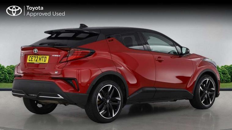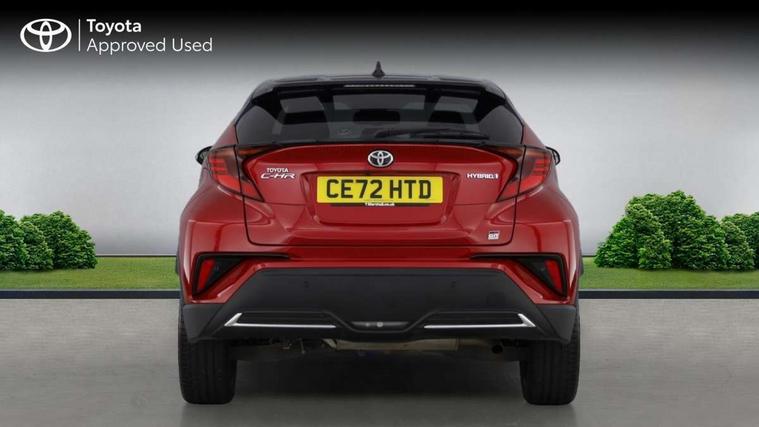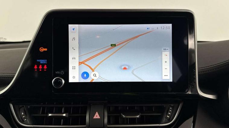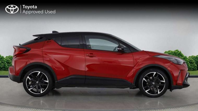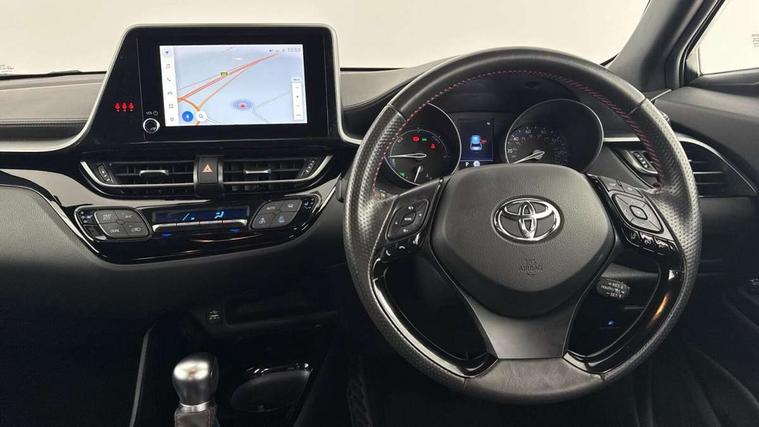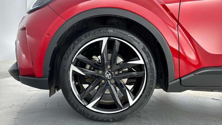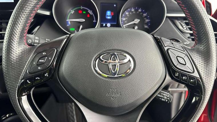 4.2" coloured TFT screen for multi-information display, Adaptive cruise control, Bluetooth connectivity, E-call, Electric power steering, Hybrid system indicator, Lane departure alert with steering control, Lane trace assist, Push button tailgate release, Remote boot door release in cabin, Remote boot door release in key, Reversing camera, Road sign assist - RSA, Simple Intelligent parking assist, Smart voice assist, Touch 2 Go navigation system, Trip computer, Voice recognition, Wireless smartphone integration, Vehicle Stability Control (VSC), 6 speakers, AM/FM radio, DAB Radio (Digital Audio Broadcasting), Toyota touch 2 multimedia system with 8" display, USB connector, Wi-fi connectivity, Adaptive front light system, Adaptive LED Headlights, Anti-jam protection on power windows, Auto high beam, Auto up and down function on all power windows, Automatic headlight levelling, Automatic headlights, Automatic headlights cut-off, Black and body coloured rear bumper, Black upper front grille, Body colour door handles, Body colour door mirrors, Body coloured front bumper, Boot door release with push button, Chrome front lower bumper, Electric heated door mirrors, Follow me home headlights, Front and rear power windows, Front spoiler lip in black, Headlight cut off reminder, Honeycomb lower front grille, LED daytime running lights, LED fog lights, LED front light guide, LED High mounted stop light, LED rear brake lights, LED rear combination lights, Noise reduction layer on front windows and windscreen, Power adjustable door mirrors, Privacy glass, Rain sensor, Rear sequential indicators, Rear side wing doors, Rear spoiler, Rear tailgate, Rear window defogger, Rear window wiper, Shark fin antenna, UV-filter on driver and passenger windows, UV-filter on rear windows, 12v power outlet - front, 3 rear headrests, 3 seat bench in 2nd row, 3 spoke perforated leather steering wheel, 60/40 split folding rear seat, Adjustable rear headrests, Adjustable speed limiter switch on steering wheel, Assist grips front and centre pillar, Audio and telephone switches on steering wheel, Black front door assist grips, Blue ambient lighting on front cup holders, Blue ambient lighting on front doors, Boot light, Chrome interior door handles, Cloth upholstery, Driver and front passenger personal light, Driver and front passenger Whiplash Injury Lessening seats, Driver and passenger seatback pockets, Dual zone automatic air conditioning, Floor mats, Front cupholders, Front head restraints, Front sports seats, Glovebox with internal light, Hard tonneau cover, Heated driver and front passenger seats, Hooks for luggage holding net, Humidifying Nanoe air purifier, Illuminated entry system, Isofix attachments on outer rear seats, Leather gearshift, Light on driver sun visor, Light on passenger sun visor, Manual telescopic steering wheel, Manual tilt steering wheel, Manually height adjustable driver seat, Manually height adjustable front passenger seat, Manually reclining driver seat, Manually reclining front passenger seat, Manually sliding driver seat, Manually sliding front passenger seat, Microphone on front personal light, Mirror on driver sun visor, Mirror on passenger sun visor, Multimedia switches on steering wheel, Pollen filter, Power adjustable lumbar support on driver seat, Shopping bag hooks, Single front passenger seat, Slow opening on lower glovebox, Voice recognition switch on steering wheel, Tech with parking sensor pack - C-HR, 16 Disk front wheel brake, 3x3 point rear seatbelts, ABS+EBD+Brake assist, Electronic parking brake, Front and rear seatbelt reminder, Front passenger airbag on/off switch, Hill start assist control (HAC), Pre collision system with pedestrian detection, Pre-tensioners and force limiters, Rear door child safety locks, SRS Airbags - Driver + Front passenger, front side, front and rear curtain and driver's knee airbags, Toyota safety sense, Tyre pressure monitoring system, Tyre pressure warning system, Acoustic vehicle alert system (AVAS), Glass-breaking alarm sensors, Immobiliser, Intrusion alarm, Intrusion sensor, Motion sensor alarm, Power door locks, Power passenger window lock, Remote central locking, Black lower dashboard, Black upper dashboard, Piano black console, Silver deco line on upper dashboard, 19" Black machined alloy wheels, Tyre repair kit,