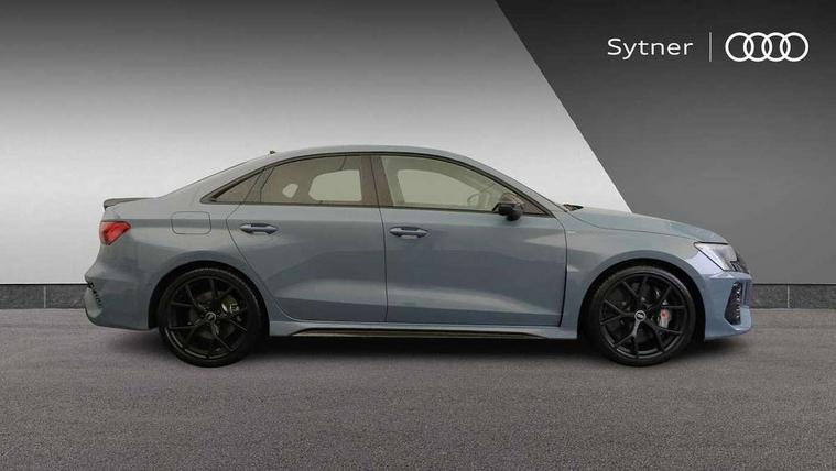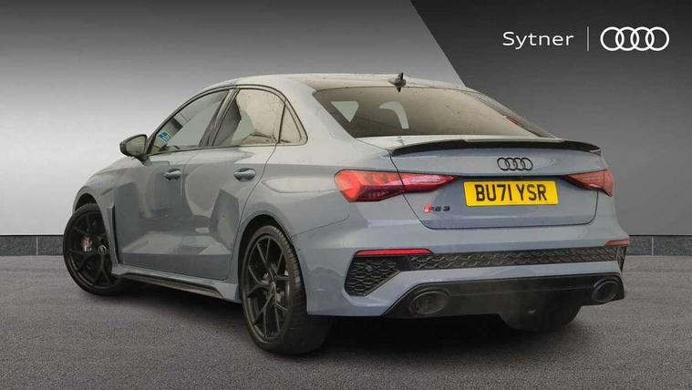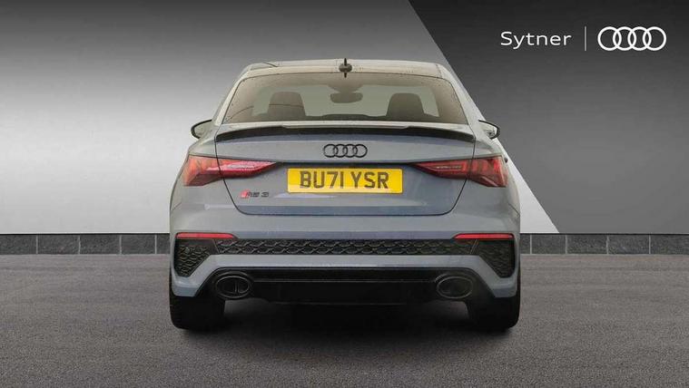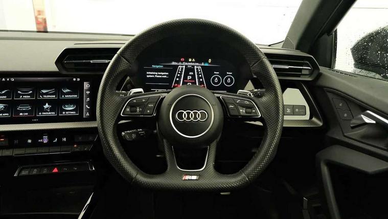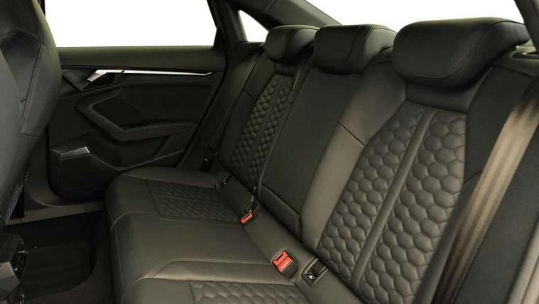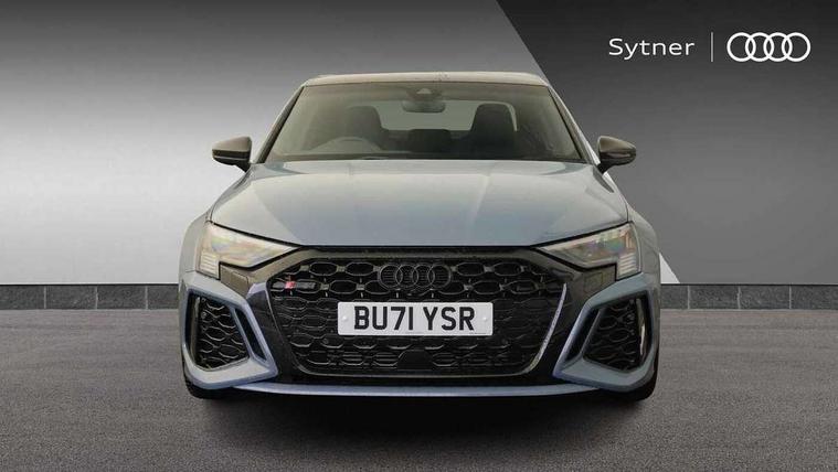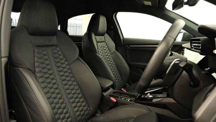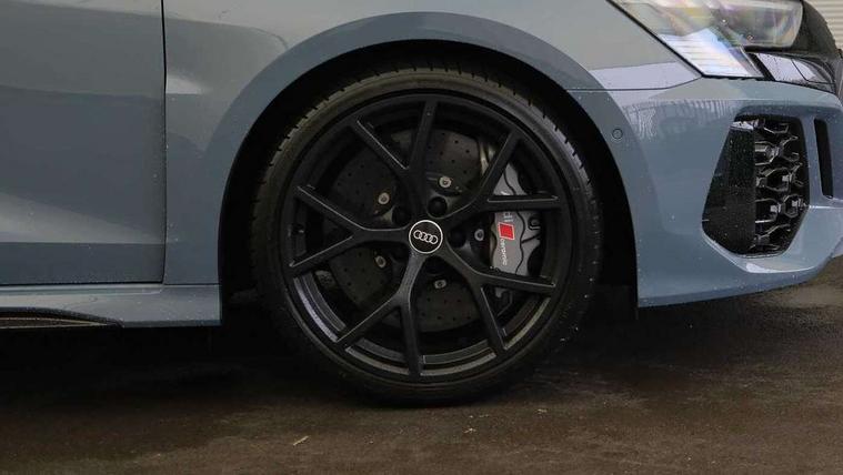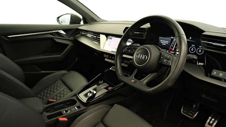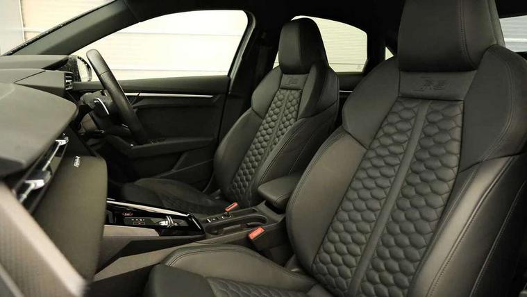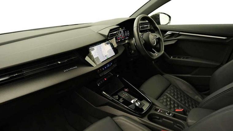 Audi connect emergency call and service, Audi smartphone interface, Audi virtual cockpit with RS specific display 12.3" full colour digital instrument cluster, Automatic start/stop system with recuperation, Bluetooth interface, Collision avoidance assistant, Lane departure warning system, Legal emergency call, Manual boot opening, Parking assist with parking system plus, Progressive power assisted steering, Quattro permanent four wheel drive, Rear suspension, Audi sound system impressive sound with 10 loudspeakers including centre speaker and subwoofer, 6-channel amplifier with a total output of 180 watts, DAB Digital radio, 3rd brake light, Acoustic glass windscreen, Audi beam uses LEDs to project the Audi sport logo onto the ground as you exit your RS 3, Audi matrix LED headlights, LED rear lights, dynamic front and rear indicators and headlight cleaning system, Auto dimming rear view mirror, Black coloured roof, Carbon exterior door mirror, Carbon fibre engine cover, Door mirrors - electrically adjustable, heated, folding and auto dimming on both sides, Front spoiler in high gloss black, Light and rain sensors, Privacy glass - dark tinted rear and rear side windows from B-pillar backwards, RS exterior features in gloss black, RS sports exhaust system, Side skirt in carbon inlay, 40/20/40 split folding rear seat bench, Black cloth headlining, Dual zone electronic climate control, Front and rear headrests, Front centre armrest, Front sports seats RS embossed logo, Front/rear floor mats, Heated front seats, Honeycomb stitching and RS embossing, Illuminated door sill trims inlays in aluminium with RS 3 logo, Manually adjustable front seats, RS emblems, Stainless steel pedals and front footrest in black, Aluminium interior elements pack - RS3, Ambient lighting pack - RS3, MMI navigation plus with MMI touch - RS3, RS bodystyling - RS3, Storage Pack - RS3, 3x3 point rear seat belts, ABS/EBD, ASR, Audi pre sense front, Driver/Front Passenger airbags, EDL, ESC - Electronic Stability Control + traction control, Front passenger airbag deactivation, Front side airbags with head airbags and interaction airbag, Hill hold assist, Seat belt reminder with passenger presence detection in rear, Tyre pressure loss indicator, Warning triangle and first aid kit, Anti theft alarm, Anti-theft wheel bolts, Electronically operated child lock, Remote control central locking, Full decorative carbon trim, 19" 5 Y spoke matt black alloy wheels, Tool kit, Tyre repair kit,