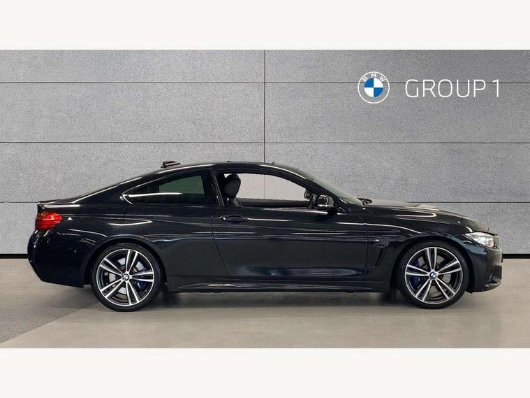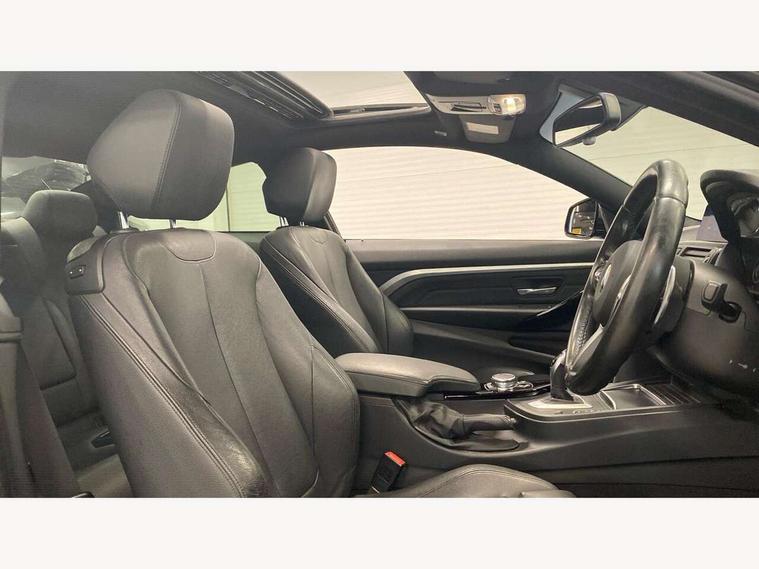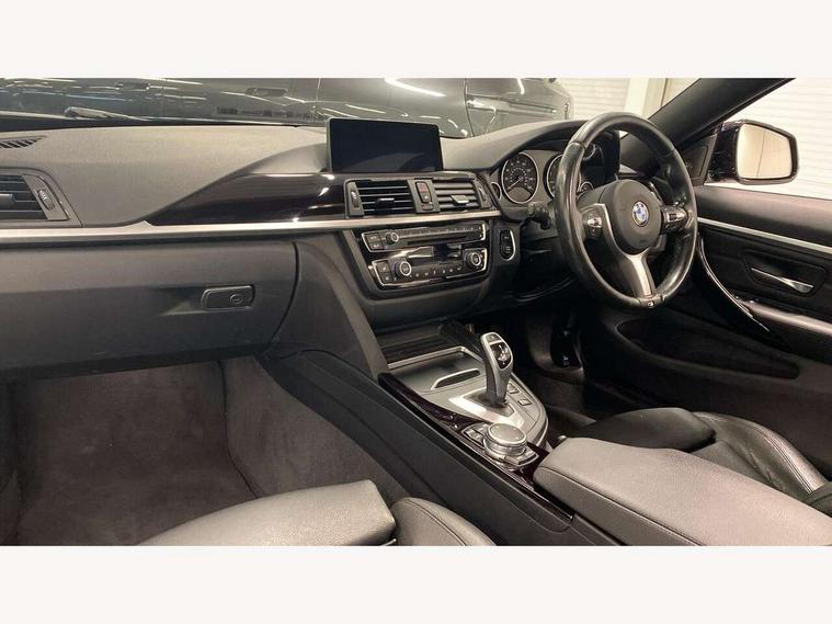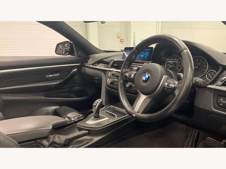 BMW Online services, BMW Teleservices, Brake pad wear indicator warning light, Check control system, Door/boot open warning, Front/rear Parking distance control, Lights on warning, Oil temperature gauge, On board computer, Outside temperature display, Run flat indicator, Service interval indicator, Stop/start button, Drive Performance Control, Sports function on gearbox with steering wheel mounted gearshift paddles, Auxiliary point for auxiliary devices, Bluetooth audio streaming, BMW professional radio/CD/MP3, DAB Digital radio, 2 speed adjustable intermittent wipers with wash/wipe function, Auto dimming rear view mirror, Body colour bumpers, Body colour door handles, Body colour door mirrors, Body colour roof mouldings, Chrome kidney grille with chrome vertical slats, Daytime running lights, Door sill finishers, Electric adjustable heated door mirrors, Electric front windows/one touch facility, Follow me home headlights, Front fog lights, Headlight washers, Heat insulating tinted glass, Heated windscreen washer jets, High gloss shadow line, M aerodynamic bodystyling, Rain sensor including auto headlights activation, Twin chrome exhaust tailpipes, Windscreen with grey shadeband, 12V sockets in front centre console and passenger footwell, 3 spoke leather M sport multifunction sports steering wheel, 4 grab handles, Anthracite headlining, Anthracite Velour floor mats, Dual zone climate control, Electrically adjustable front seats - driver seat with memory, Folding storage compartment with glasses holder + coin tray, Front centre armrest with storage compartment, Front cupholders x 2, Front head restraints, Front sports seats with electric side bolster adjustment, Front/rear armrests within door panels, Glovebox with lid, Heated front seats, Integrated rear head restraints, ISOFIX child seat preparation+airbag deactivation, Lashing eyelets in boot, Leather gearknob, Leather handbrake grip, Reach + rake adjustable steering column, Rear centre armrest, Storage compartment in rear centre console, Sunvisors with vanity mirrors, Toolkit located in luggage compartment, Extended lights package - 4 Series, 3 point seatbelts on all seats, ABS/EBD, Automatic Stability Control (ASC), BMW emergency call, Cornering brake control (CBC), Crash Sensor - activates hazard/interior lighting + unlocks doors, Driver seatbelt warning indicator, Driver/Front Passenger airbags, DSC+, Dynamic brake control, Dynamic Traction Control - DTC, Front seatbelt force limiters, Front seatbelt pretensioner, Front side airbags, Hill start assist, ITS head airbags for front/rear, Tyre pressure monitor, Warning triangle and first aid kit, Drive away door locking, Electronic immobiliser, Remote central locking, Remote control Thatcham category 1 alarm,