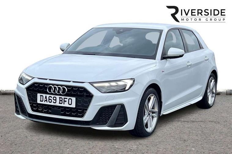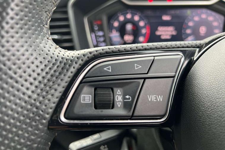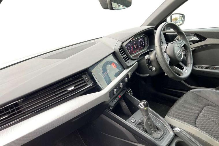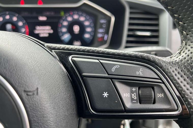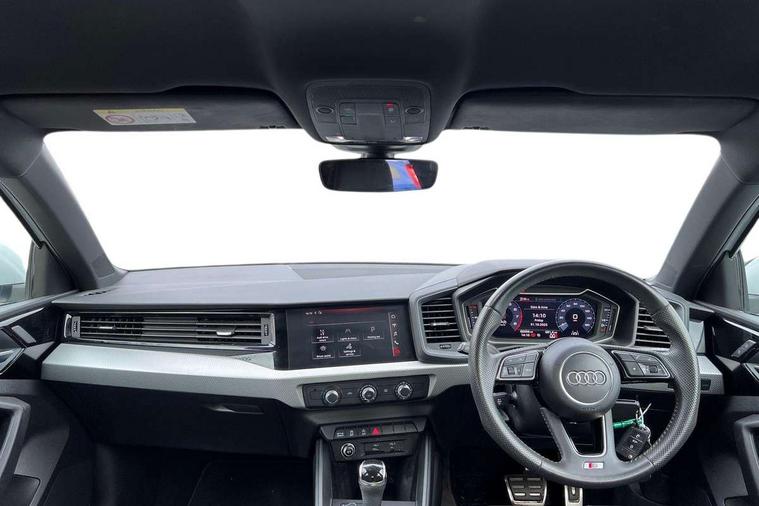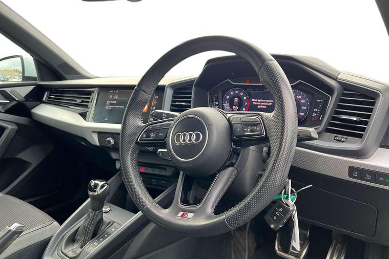 10.25" Digital instrument cluster display classis style instrument dials + speed, odometer, time, outside temperature, telephone menu + fuel level warning, Audi connect safety emergency and service including E-call, Audi drive select - power steering assistance + engine + gear shift 3 preset modes (auto, dynamic, efficiency and an Individual mode), Audi smartphone interface with connect compatible smartphone via USB directly MMI display + Nav, music, third party apps controlled via MMI controller, Automatic start/stop system, Bluetooth interface, Cruise control, Driver's information system, Electromechanical power steering, Lane departure warning system, Rear parking sensor, Service interval indicator, Speed limiter, Voice control system, Washer fluid level indicator, Sports suspension, 1 x SDXC card reader, 1 x USB type C and 1 USB type A charging points, DAB Digital radio, MMI radio plus with 8.8" colour MMI display screen and MMI touch, Auto dimming rear view mirror, Body coloured door mirrors, Door sills with aluminium inlays and S Line logo, Electric front and rear windows, Electrically adjustable, heated, folding door mirrors with integrated LED side indicator, Front side air inlets in grained matt black and C frame in titanium black, Heat insulating glass windscreen and side windows, Heated rear windscreen, LED headlights with LED rear lights + dynamic rear indicators + headlight adjustment and high beam, turning light + LED daytime running lights, Radiator grille and rear diffuser in matt titanium black, Radiator protective grille frame in matt aluminium silver, Rain and light sensors, Rear fog lights, Rear wiper, S line badges on front wings, Side front spoiler lips in grained matt black, 12V socket in centre console with two cup holders, 3 rear seats with headrests, 40:60 Split folding rear seat or folded fully, Black cloth headlining, Driver and passenger seat with manual height adjust with forward and backwards adjustment, Front and rear black floor mats with contrast stitching in fine silver, Front head restraints, Height and reach adjustable steering wheel, ISOFIX child seat mounting for front passenger and outer rear seats including top tether attachment point of outer rear seats, Leather gear knob with aluminium trim, Luggage compartment light with front and rear reading lights, Manually adjustable lumbar support in front seats, Stainless steel pedals, LED interior lighting pack - A1, Luggage compartment pack - A1, S line exterior styling pack - A1 Sportback, 3x3 point rear seatbelts, Audi pre-sense front with pedestrain and cyclist recognition, Brake assist function, Driver and front passenger airbag with front side and head airbags, Electronic Stability Control including ABS, EBD, ASR and EDL, Front and rear seatbelt reminder, Front passenger airbag deactivation switch, Hill hold assist, Seatbelt height adjustment for front seats, Seatbelt monitoring, Tyre pressure warning light, Warning triangle and first aid kit, Anti theft alarm, Anti theft wheel bolts and loose wheel warning, Immobiliser, Remote central locking with 2 foldaway keys, Aluminium trim for control switches, air vents and digital instrument cluster, Silver grey inlays polygon structure in diamond paint finish, Structured grey accent areas including air vents, door handle recesses and centre console in quartz paint finish,