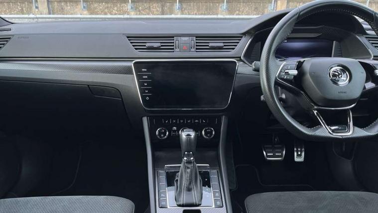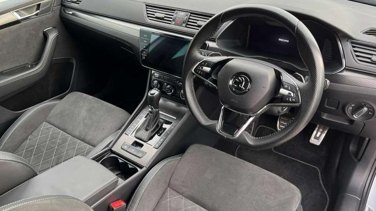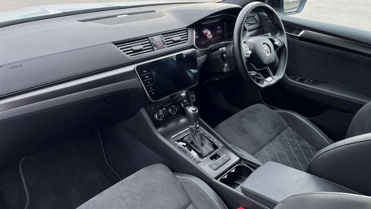 Bluetooth system, CareConnect and Emergency Call, Columbus HDD satellite 3D map navigation with 9.2" colour touch screen, web radio, integrated Wi-Fi, Driver fatigue sensor, Front assist with pedestrian protection, Progressive dynamic steering, Stop/start engine system and energy recovery, Virtual cockpit, Voice control system, Wireless smartlink apple carplay, SmartLink+ android auto, XDS+, 2 USB ports, Bolero radio with 8" touchscreen display, DAB Digital radio, 3rd brake light, Aero front windscreen wipers with intermittent function, Auto dimming rear view mirror, Black rear badge, Body colour door handles, Cornering front fog lights, Electrically adjustable heated and folding door mirrors with memory function, Front and rear electric windows, Full matrix LED headlights with AFS LED DRL integrated with headlight washer LED rear lights(High function), dynamic indicators and lighting animation, Gloss black exterior door mirrors with sports styling including front grill, side strip and window surrounds, Gloss black grille surround with gloss black rib elements, Gloss black rear spoiler (roof), Gloss black strip between rear lights, Light assistant (coming/leaving home/tunnel light), Privacy glass, Rain sensor, Rear exhaust diffuser styling elements, Rear side wing doors, Sportline badging, 12v power point in centre console, 3 seat bench in 2nd row, Black roof headlining, Black textile floor mats, Carbon optic interior elements, Electric auxiliary air heater, Front and rear footwell illumination, Front armrest with storage box, Height adjustable front and rear head restraints, Ice scraper, Illuminated and cooled glovebox, Interior lights with control switches, Isofix child seat fittings on outer rear seats, LED front and rear reading lights, Microsuede/leather upholstery with silver diamond stitching sports seats, One umbrella compartments in driver door with one umbrella in drivers door, Overhead glasses storage compartment, Rear centre armrest with cupholders, Removable parcel shelf, Single front passenger seat, Split folding rear seats, Storage compartment with cover in luggage compartment side panels, Ticket holder on A Pillar, LED package plus - Superb, 3 rear seatbelts, 7 airbags - Front, front side, curtain, driver's knee airbag with front passenger deactivation switch, Driver and passenger seatbelts with warning light, Electronic parking brake, ESC including ABS, EBV, MSR, ASR, EDS, HBA, DSR, RBS, CBC, multi-collision brake (MKB) and Auto hold, Hill start assist, Power operated child lock in rear doors, Tyre pressure monitor, Alarm with interior monitoring tilt sensor and back up horn, Electronic engine immobiliser, Keyless entry and start/stop, Remote central locking with SAFE system, Third remote key,