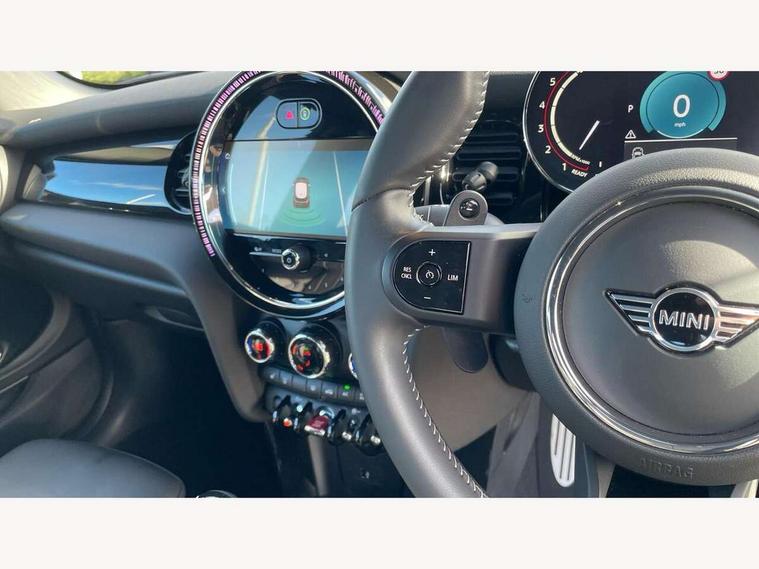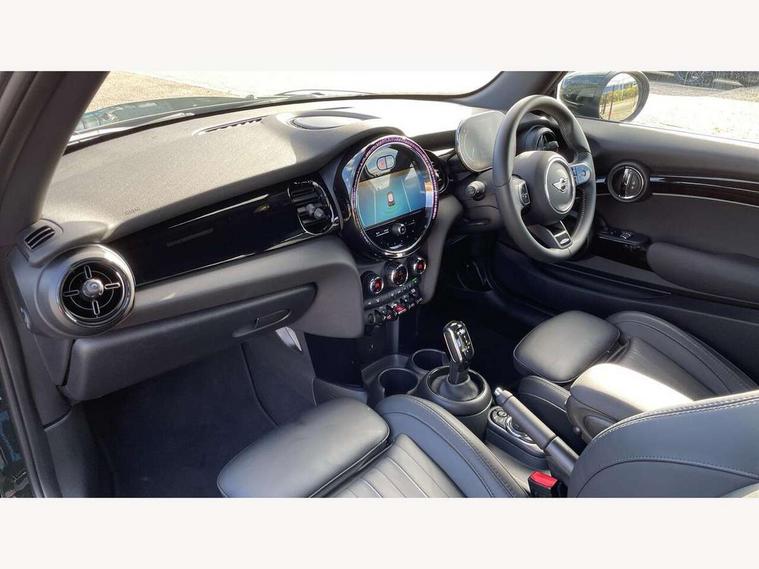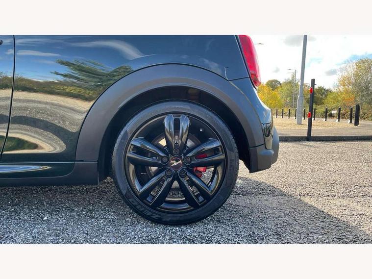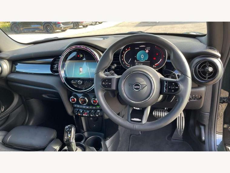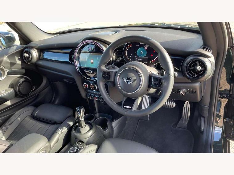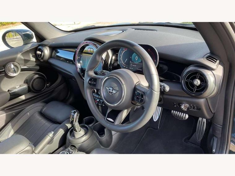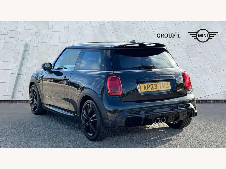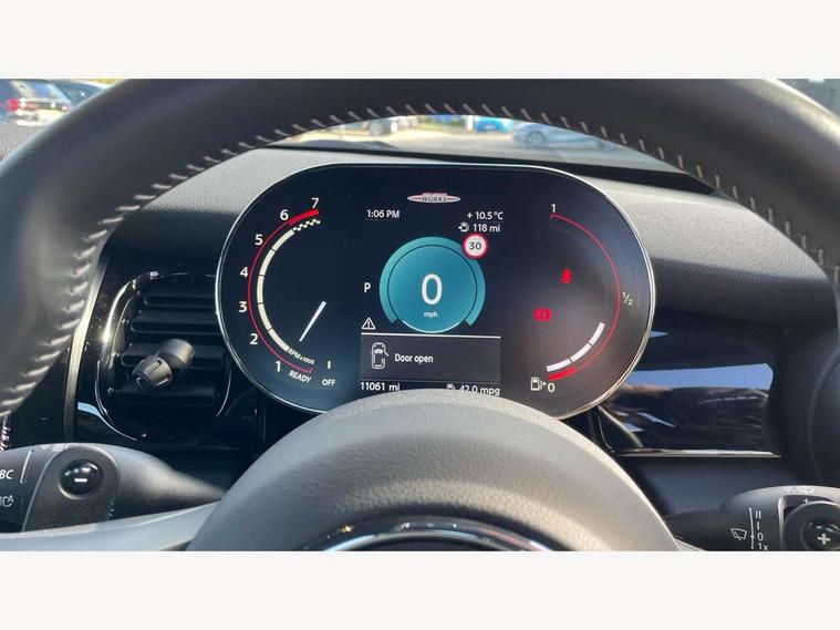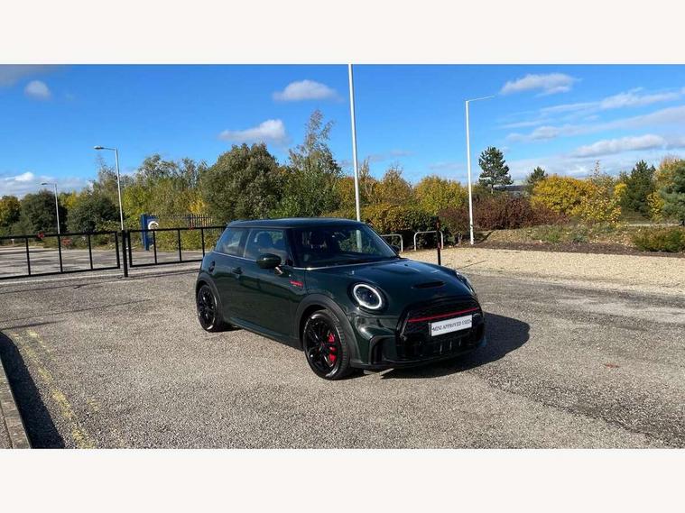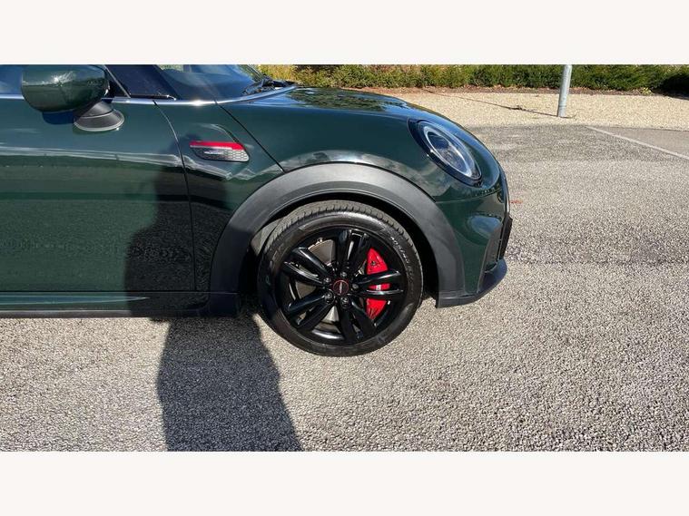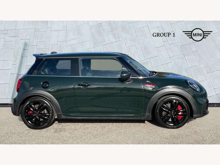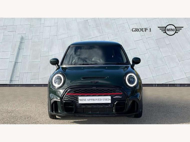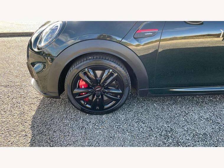 Apple CarPlay, Automatic start/stop function with brake energy recuperation, Compatible mobile phone bluetooth with audio streaming, Cruise control with brake assist, Electro-mechanical speed dependant steering assistance, Flexible car sharing preparation, Instrument cluster, MINI Driving Modes - centre toggle switch to control driving setting (sport, mid and green), Mini E-call, MINI TeleServices, On board computer, Rear park distance control, Service interval indicator, Double Vanos system, Eight speed steptronic sport transmission, with gearshift paddles, Fully variable valve control, High precision injection, Performance Control, 8.8" touchscreen with LED ring, FM tuner and DAB digital radio, 3rd brake light, Automatic headlight activation switch, Bonnet scoop, Dynamic brake lights, Electric front windows, Heated rear window, Heated windscreen washer jets, JCW Aerodynamic kit - Front and rear bumpers with sporty JCW styling and part-painted side sills with MINI John Cooper Works door sill finishers, John Cooper Works logo above an individual grille strut in Chilli Red, John Cooper Works rear spoiler, LED headlight with closed ring and daytime driving lights, Radiator grille piano black border with honeycomb structure in black matt, Rain sensor window wipers, Rear fog lights, Rear LED lights with union jack design, Rear window wiper, Side scuttle panel with integrated indicator, Side scuttle with MINI John Cooper Works logo in black high-gloss with red border, Sun/heat protection glass, Two central exhaust tailpipes with chrome finisher, White indicator lenses, 12V Accessory socket in centre console, 2 seat bench in 2nd row, 4 lashing eyes in luggage compartment, 60/40 split folding rear seat, Anthracite headliner including grab handles and clothes hooks, Carbon black colour line - Knee roll and door armrest, Chrome interior highlights, Cupholders, Front and rear isofix with front passenger airbag deactivation, Front floor mats in velour, Glove compartment, Height and length steering column adjustment, Interior lighting with 12 different colours across the dashboard, underneath door bezel with illuminated laser-engraved design on central display, JCW Sport seats with integrated headrests, adjustable thigh support and John Cooper Works logo, Leatherette gearshift lever and handbrake gaiters, LED reading lights, vanity mirror lights, front foot well light and spotlight on front seats, Manual air conditioning, Mechanical seat adjustment - forward/back & backrest for front seats and driver seat height adjust, Multifunction steering wheel, Passenger seat height adjuster, Rubberised stainless steel pedals, Single front passenger seat, Storage compartments in doors, Storage pocket on back of front seats, Sunvisors with vanity mirrors, Walknappa leather steering wheel with grey seam and John Cooper Works badge on Piano Black lower steering wheel spoke, Navigation pack without Apple Carplay - Mini Hatchback, Piano black exterior pack - JCW, 3 point seatbelts on all four seats, 4-piston fixed-calliper brakes front, 6 Airbags - front, side, head and seat belt tensioners, Anti-lock braking system (ABS), DSC - Dynamic Stability Control, Front and rear disc brakes, Red brake callipers with John Cooper Works logo, Single tone fanfare horn, Tyre pressure monitoring system, Alarm system with tilt sensor, monitoring doors, bonnet interior and tailgate, Electronic vehicle immobiliser, Start/stop toggle with keyless go, Tool kit,