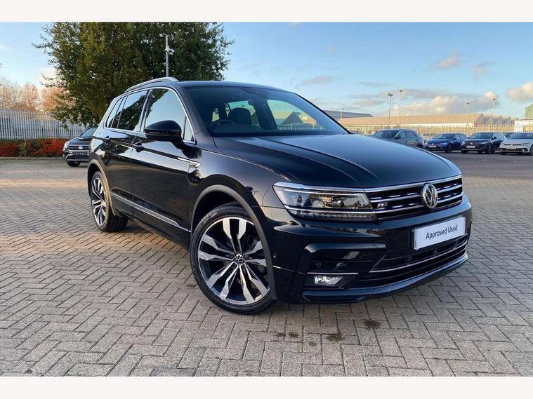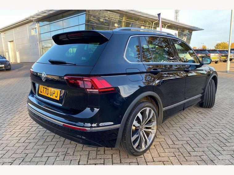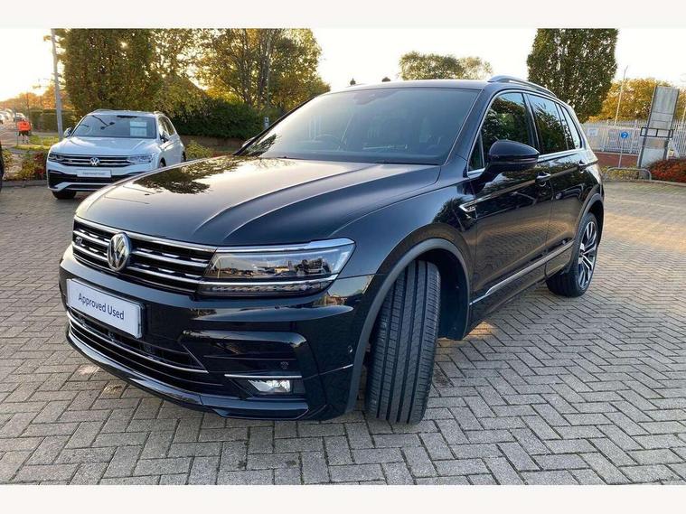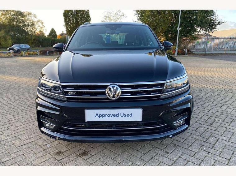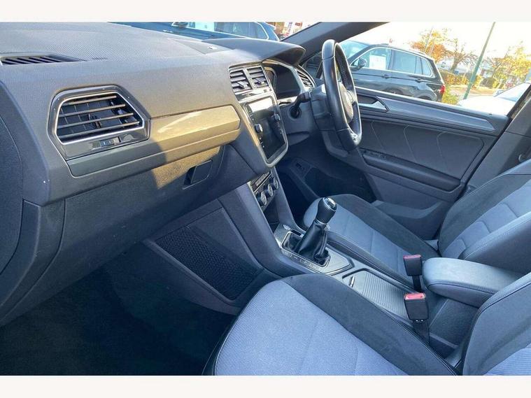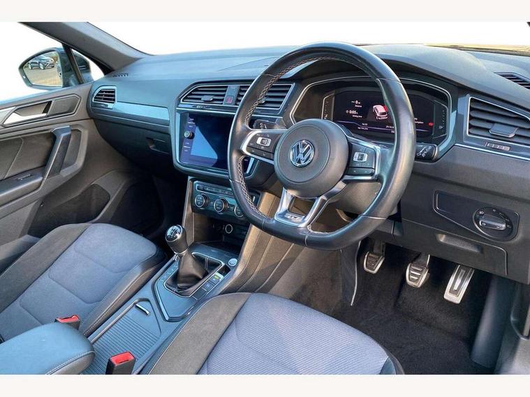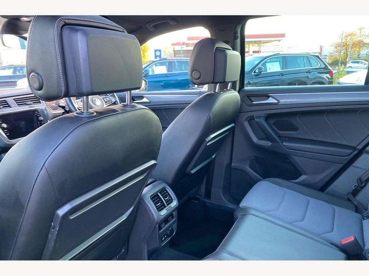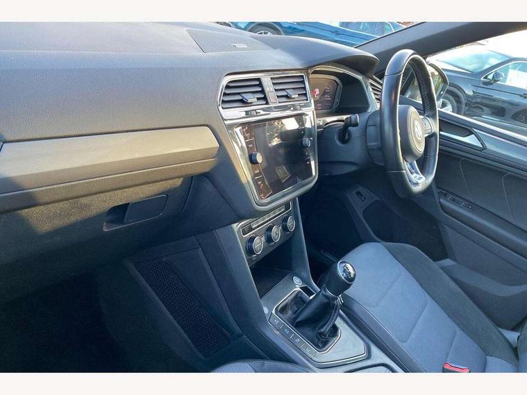 2D/3D map view, Active information display, Adaptive cruise control, App-Connect, Area view with park assist steering and front and rear parking sensors, Bluetooth phone integration system, Car information display, Distance control assist, Driver alert system with fatigue detection, Driver profile selection, Front assist, radar sensor controlled distance monitor, city emergency braking + predictive pedestrian protection, Fully electric tailgate + keyless entry and start, Instrument cluster, Lane assist, Lights on warning, Multifunction computer with visual gear change recommendation for fuel consumption, Outside temperature display, Progressive power assisted steering, Service interval indicator, Speed limiter, Start/Stop function, Warning sound and light for doors and tailgate open, Battery regeneration during braking, Diesel particulate filter, Misfuel prevention device for diesel engine, XDS electronic differential lock for improved traction and handling, 2 x USB connection + USB charging socket, 4 X 20 watt output, DAB Digital radio, SD card slot, Simultaneous pairing of 2 compatible mobile devices, SMS functionality - read, compose and send SMS messages using touch-screen display, Title and cover art display, 3D effect cherry red LED rear tail lights, Aluminium decorative inserts in dash and door panels, Auto dimming interior mirror, Automatic activation of hazard warning lights, Body colour door handles, Body colour door mirrors, Body colour rear spoiler, Body colour side skirt, Body coloured bumpers, Chrome side window surrounds, Chrome trimmed radiator grille, Coming/leaving home lighting function, Dusk sensor + auto driving lights, Electric panoramic sunroof with sunblind, Electrically heated and foldable door mirrors, door mirror puddle lights and reverse activated kerb view adjustment on passenger's door mirror, Front and rear electric windows, Heated rear window, High level 3rd brake light, LED headlights with dynamic light assist daytime running lights and cornering front fog lights, LED rear number plate lights, Piano black front air intake and rear diffuser, R Line body kit, R Line side sills, Rain sensor windscreen wipers, Rear tinted glass from B-pillar backwards approx 65% tinted, Rear windscreen washer and wiper with interval delay, Side skirts and rear bumper with chrome insert, Silver front underbody protection and rear diffuser, Silver roof rails, Trailer Stability Programme, Unique R Line badging, Windscreen wipers/ intermittent wipe + 4 position delay, 12V socket in centre console storage area, 2 cup holders in front, 3 rear headrests, 3 spoke multi-function leather steering wheel and gearknob, 3 zone climate control, 4 load lashing points, 40:20:40 split folding rear seats, Bag hook in luggage compartment, Black headlining, Foldable front passenger seat backrest, Front + rear carpet mats, Front centre armrest with 12v socket, Front centre armrest with storage + rear 2 air vents, Front seat back storage pockets, Front seat R Line logo with rear seat backrest, Front seatback folding tables, Height/reach adjust steering wheel, Illuminated driver/passenger vanity mirrors, Illuminated scuff plates, Instrument lighting white adjustable panel illumination, Interior light with delay, Isofix Preparation 2 Rear child seats, Leather gear knob, Load through provision with 2 cupholders when folded, Lockable cooled glovebox, Luggage compartment lighting, Map pockets on front seats, Passenger seat height adjuster, Removable luggage cover, Sliding/reclining rear seats, Stainless steel pedals, Storage compartment in driver's door, Storage compartment in passenger's door, Storage compartment in rear doors, Storage compartments in luggage area left and right, Storage tray on dashboard, Sunglasses storage, Unique R Line door sill protectors, Variable boot floor, height adjustable and removable, Ambient lighting pack - Tiguan, R Line styling pack - Tiguan, 3 rear 3 point seatbelts, ABS+EBD+Brake assist, Active bonnet, Active pedestrian safety system, Curtain airbags, Driver/Front Passenger airbags, Driver/Passenger whiplash optimised head restraints, Drivers knee airbag, DTC - Drag torque control, Electronic parking brake with auto hold, ESC with EDL, ASR, EDTC and trailer stabilisation function, First aid kit, Front seat side impact airbags, Front side airbags, Front ventilated disc brakes and rear disc brakes, Head airbag system, Height adjustable front 3 point seatbelts + pretensioners, Hill hold control, Passenger airbag deactivate switch, Passenger knee airbag, Pre crash preventive occupant protection, Rear side airbags, Rigid safety cell with front and rear crumple zones, Two tone horn, Warning sound and light for front seat belts if unfastened, Warning triangle, Alarm with interior protection, Electronic engine immobiliser, Remote central locking with 2 remote folding keys, Chrome door trim inserts, Dark grey decorative inserts in dash and door panel, Piano black decorative inserts in centre console, 20" Suzuka alloy wheels with mobility self sealing tyres + anti theft wheel bolts, Steel space saver spare wheel,